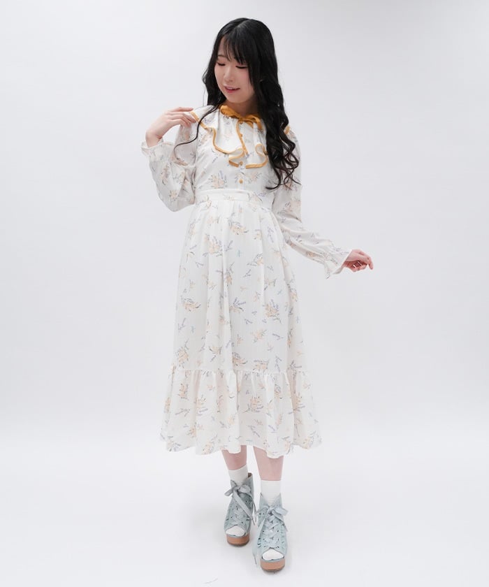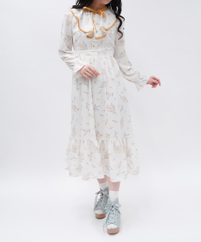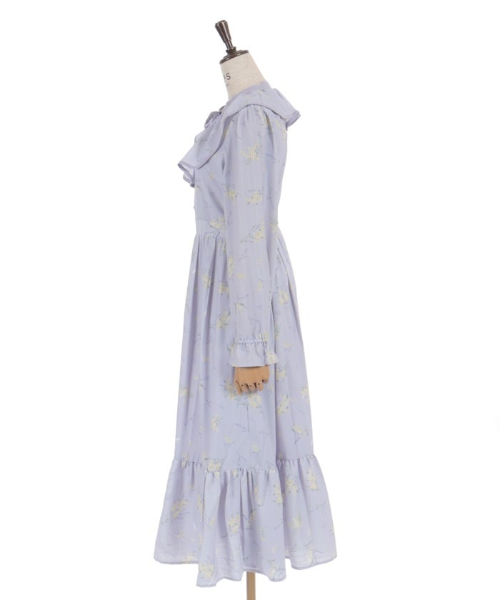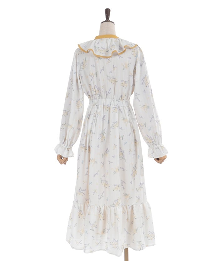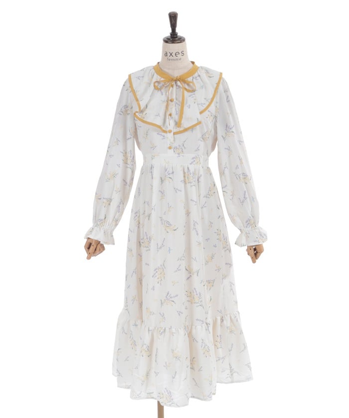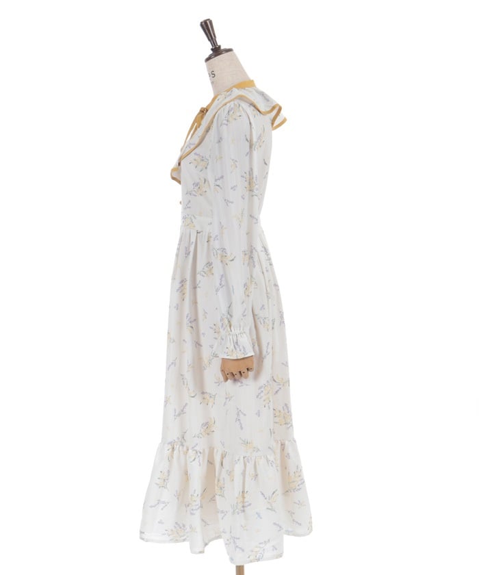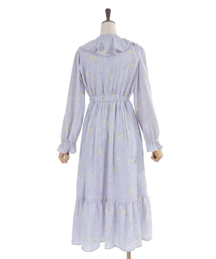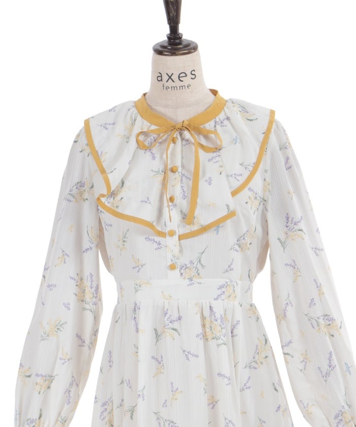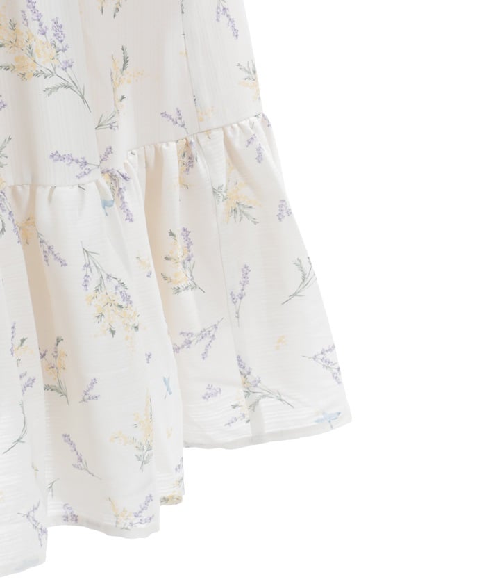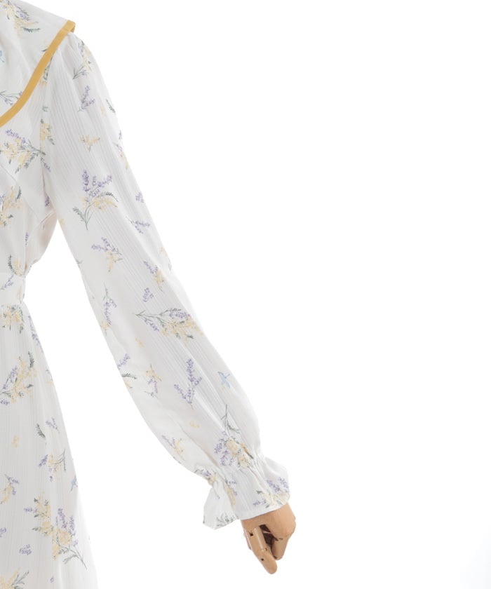 This dress features a gorgeous mimosa and lavender pattern that catches your eye.