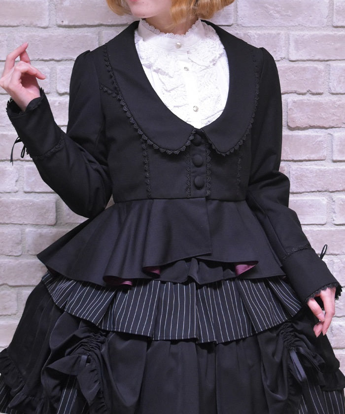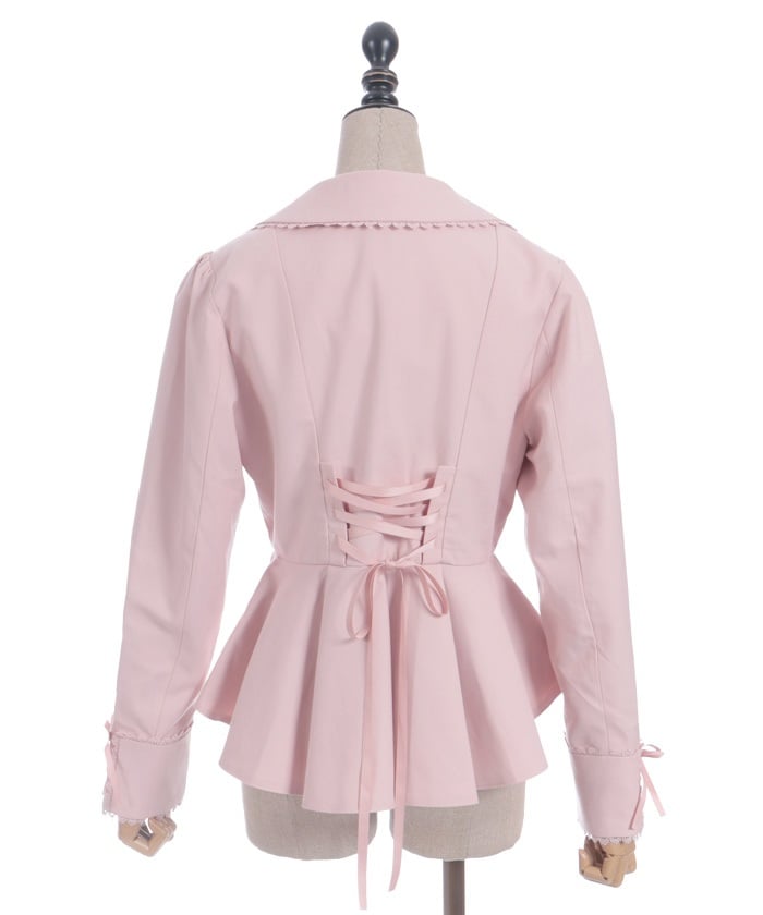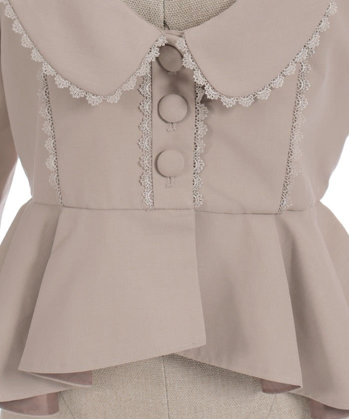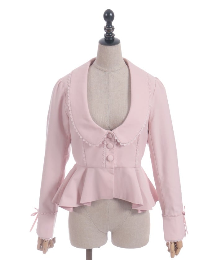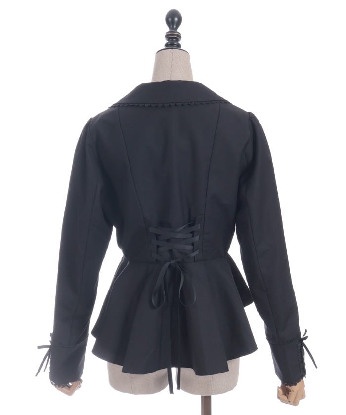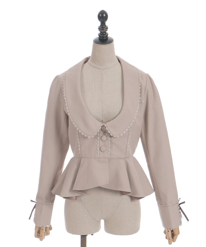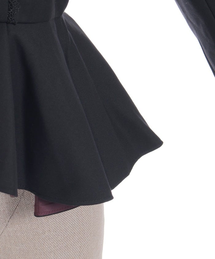 This classical jacket features a peplum that gently flares out from the waist, creating a slimming effect.