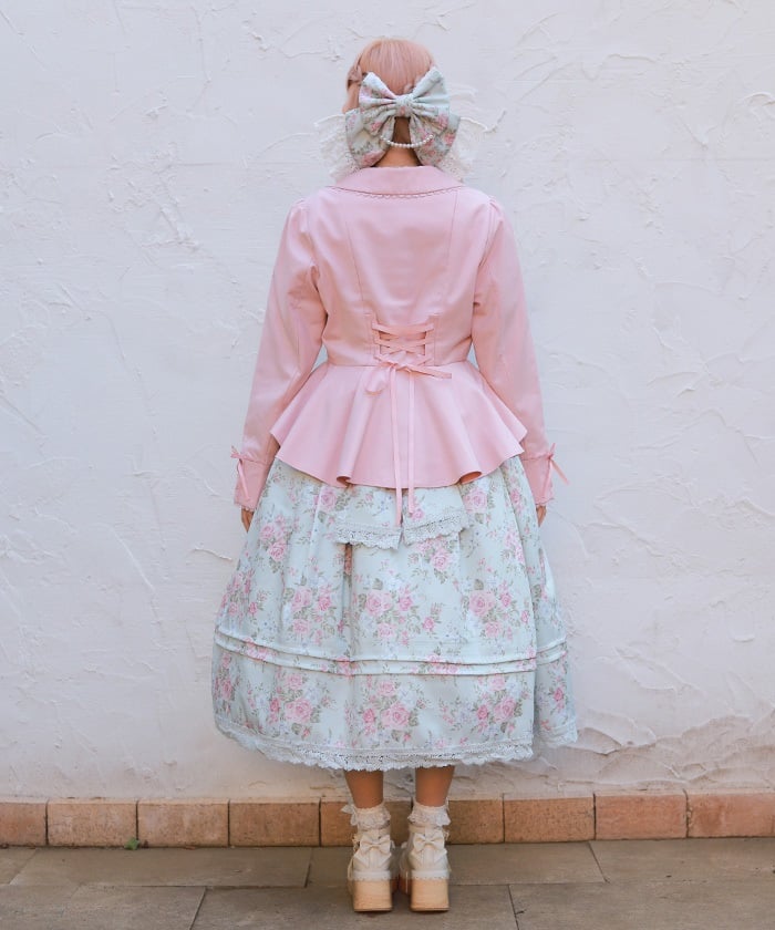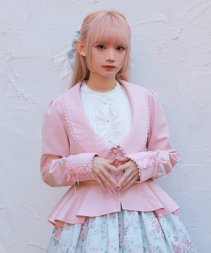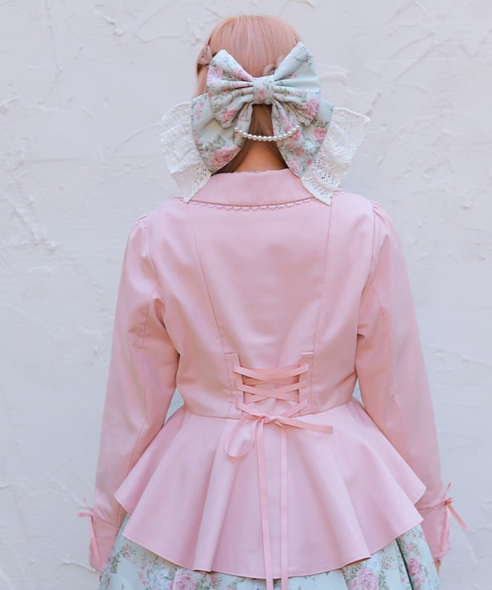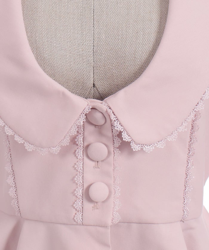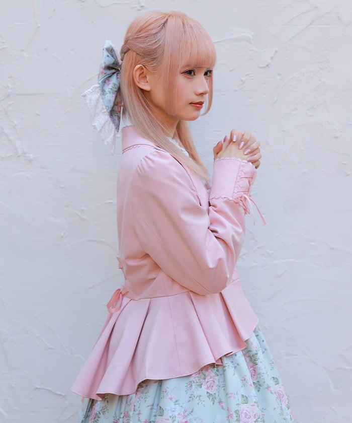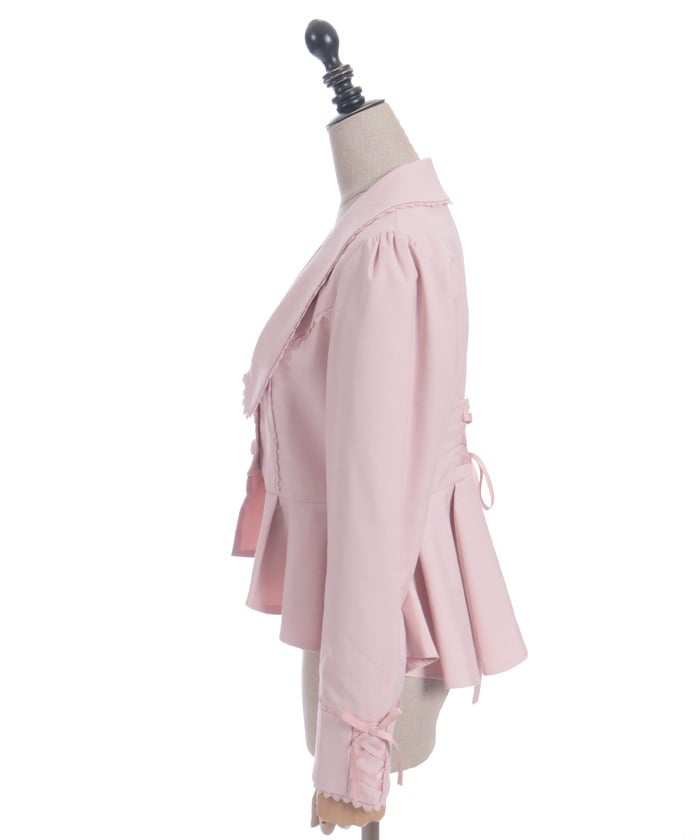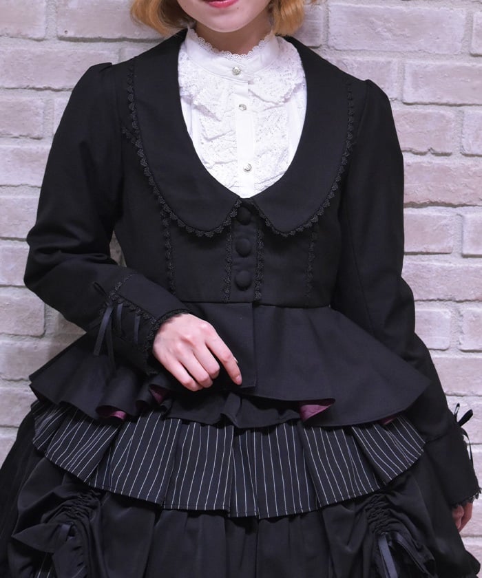 This classical jacket features a peplum that gently flares out from the waist, creating a slimming effect.