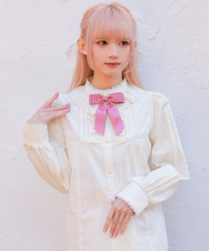 Remove the ribbon brooch to create a solid color, making this a versatile piece. Available in two colors: versatile white and off-white, for a more classic look.