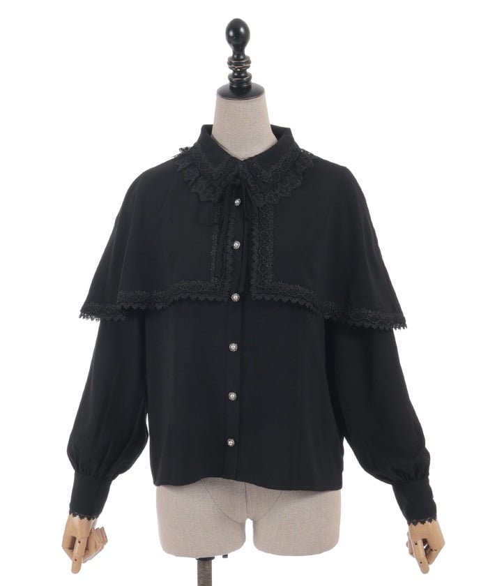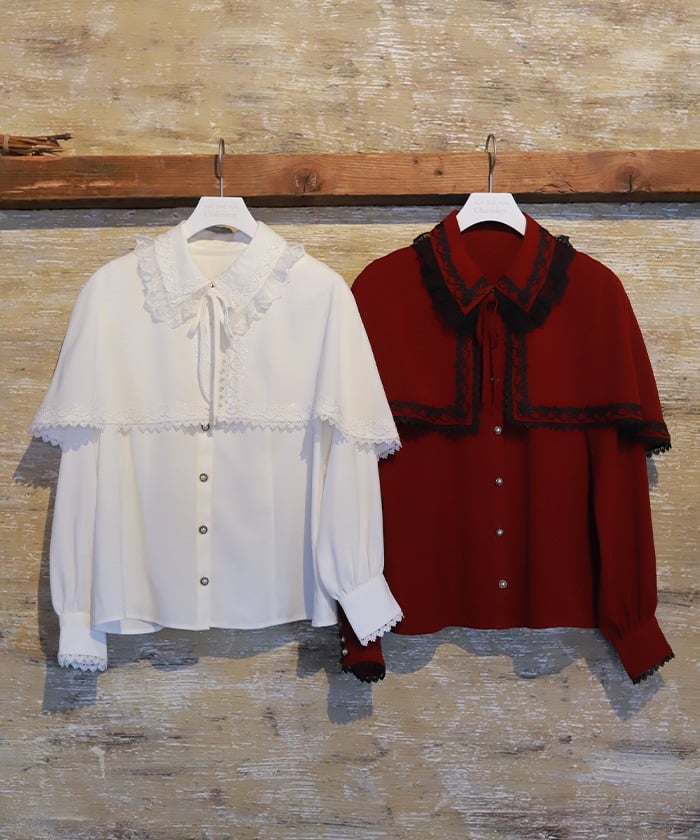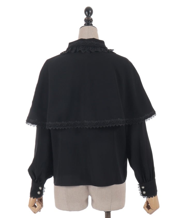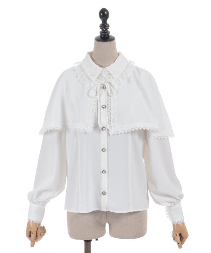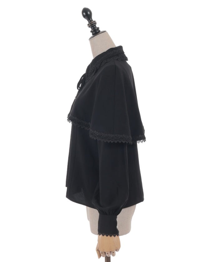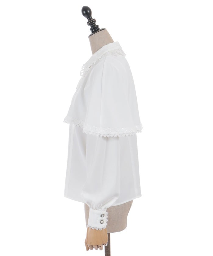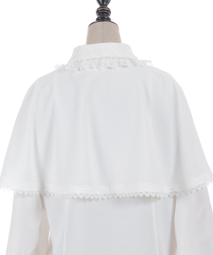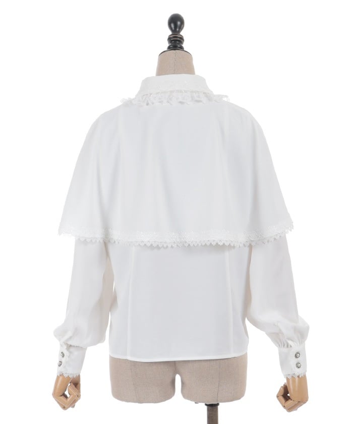 When wearing this blouse with jumper skirts, try detaching the cape first and drape it on top afterwards for an even more stylish look.