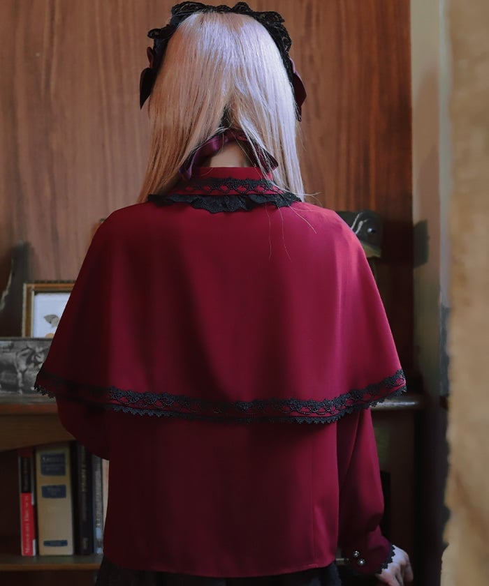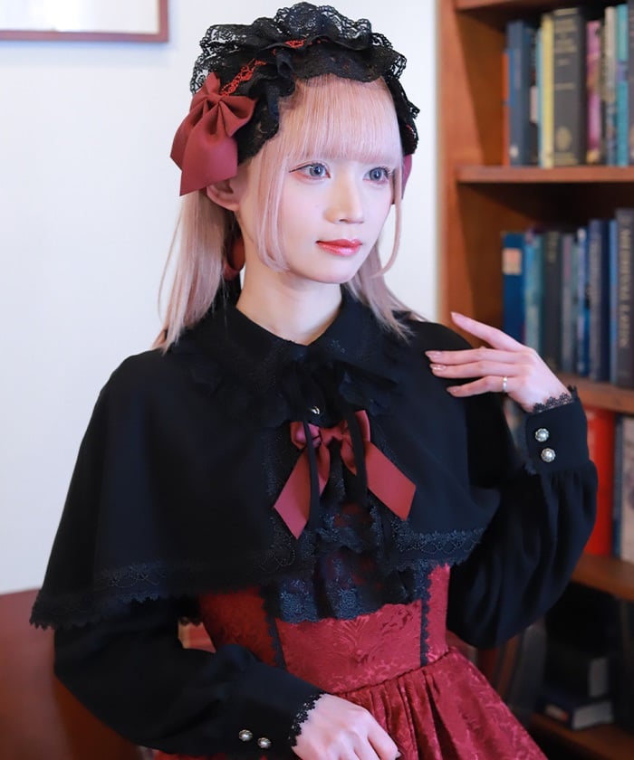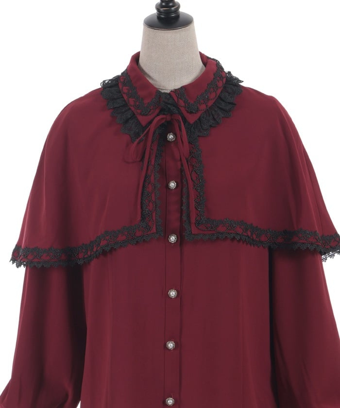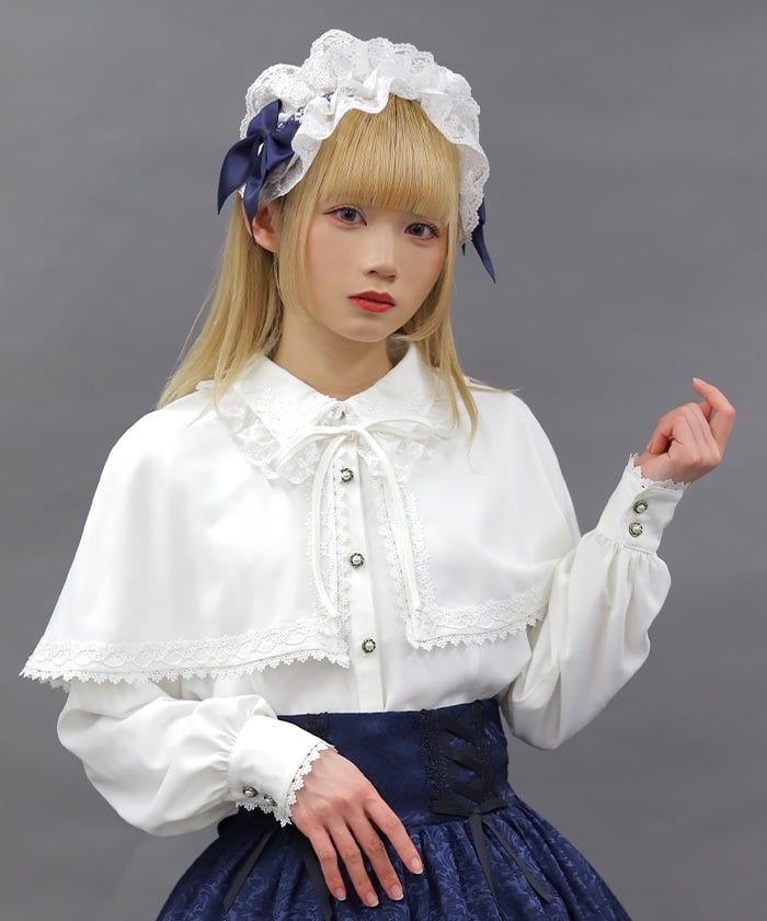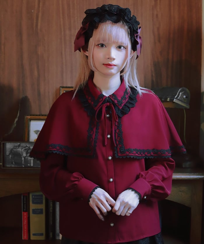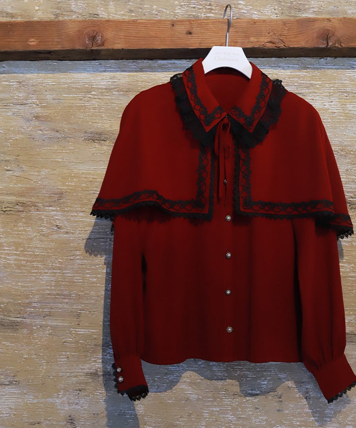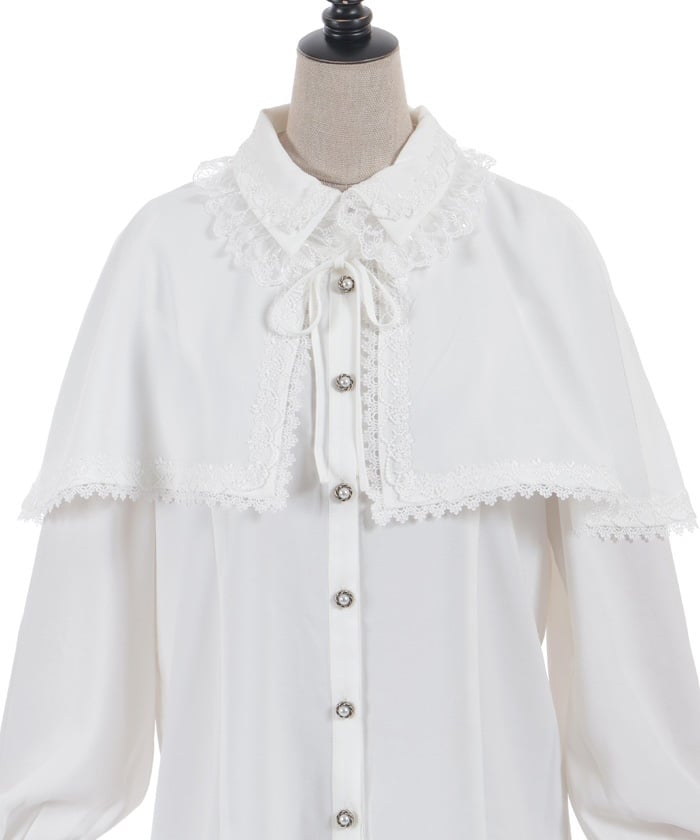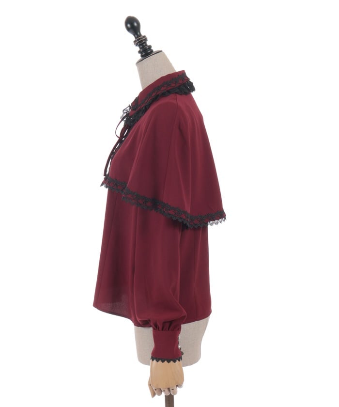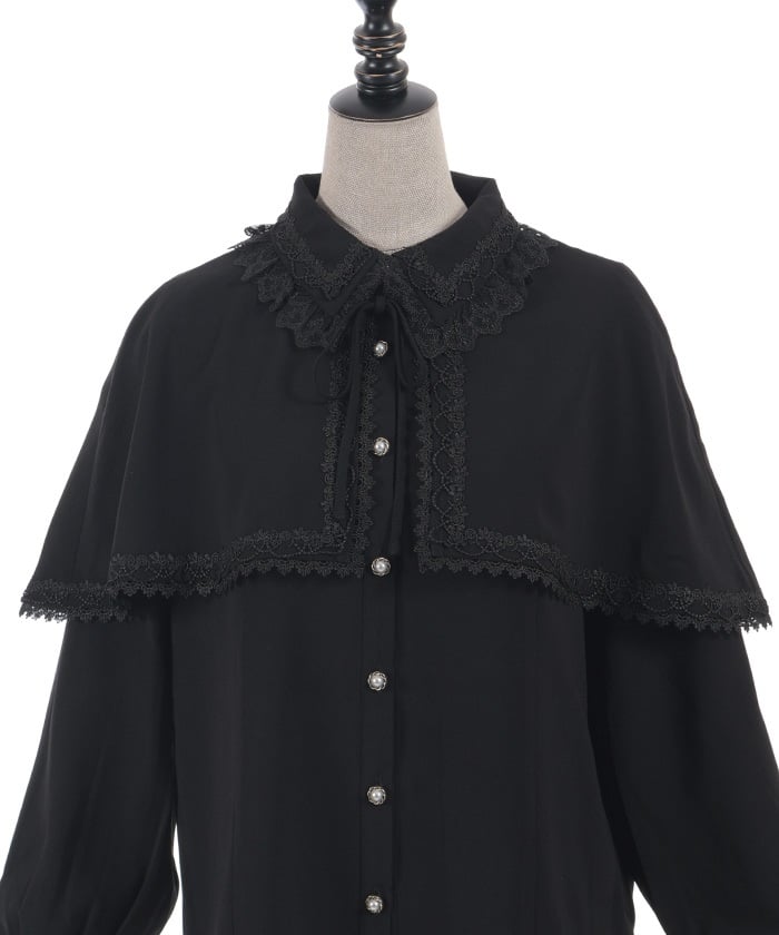 When wearing this blouse with jumper skirts, try detaching the cape first and drape it on top afterwards for an even more stylish look.
