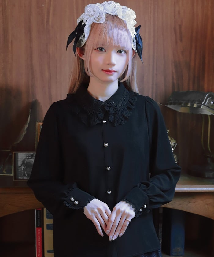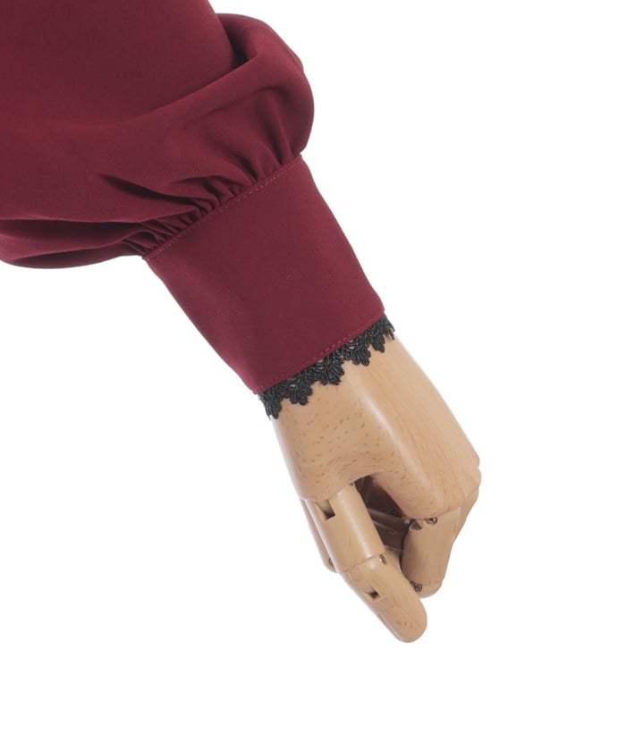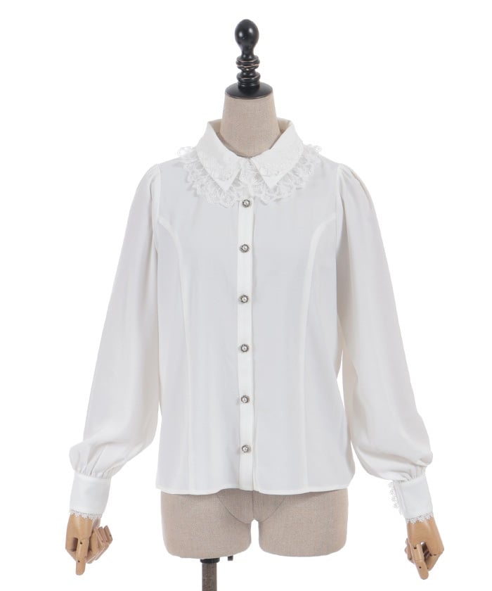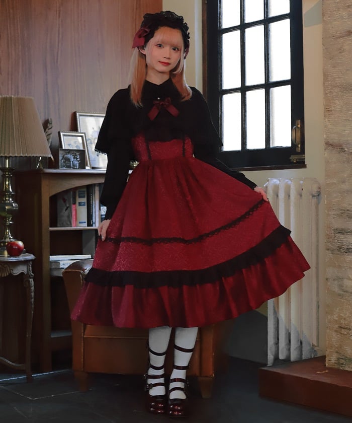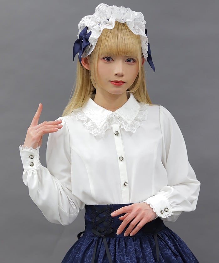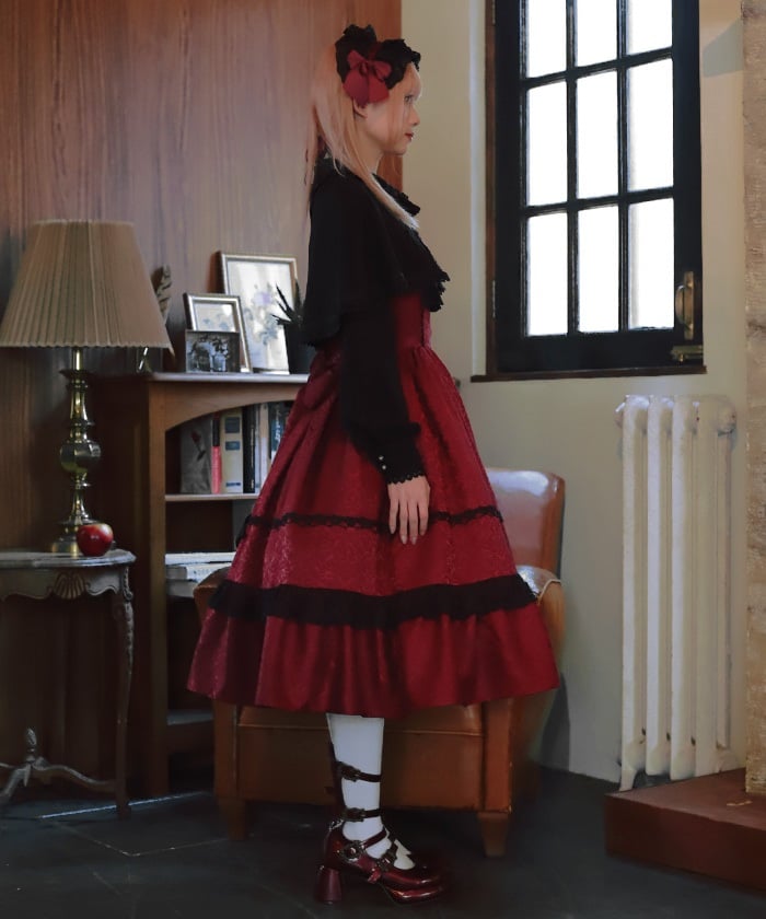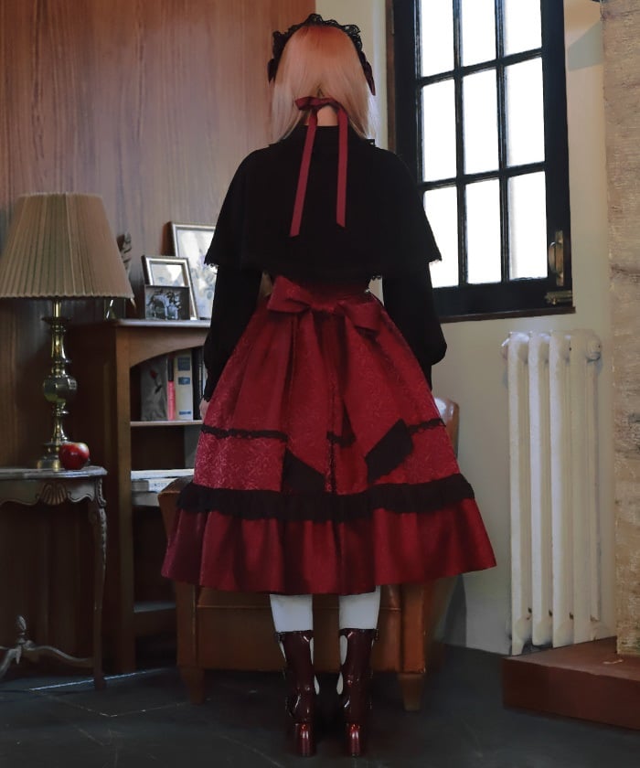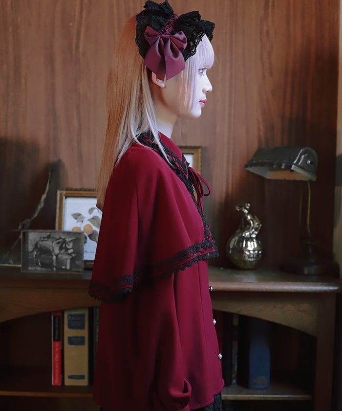 When wearing this blouse with jumper skirts, try detaching the cape first and drape it on top afterwards for an even more stylish look.