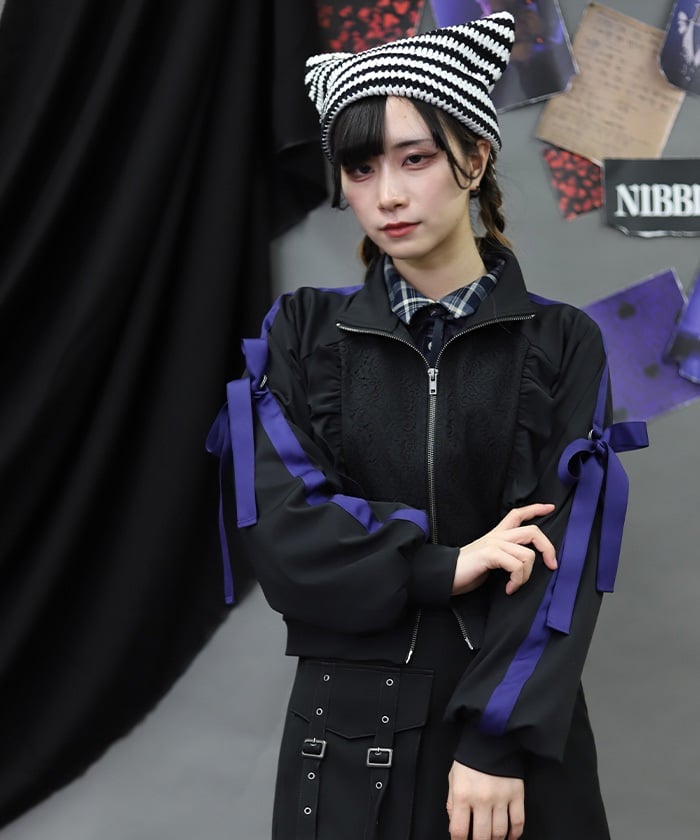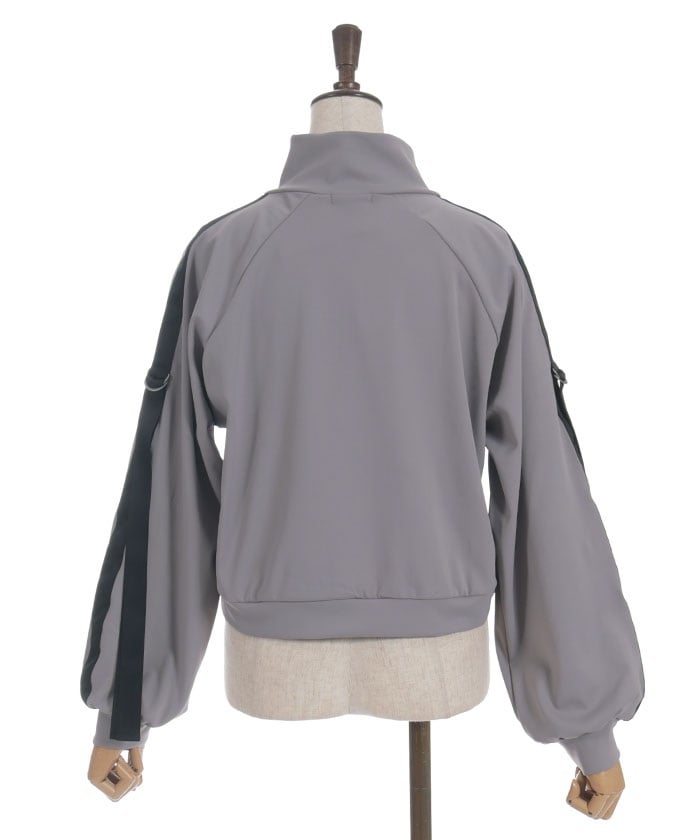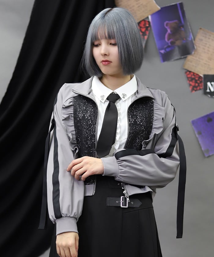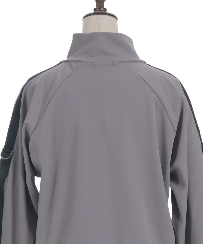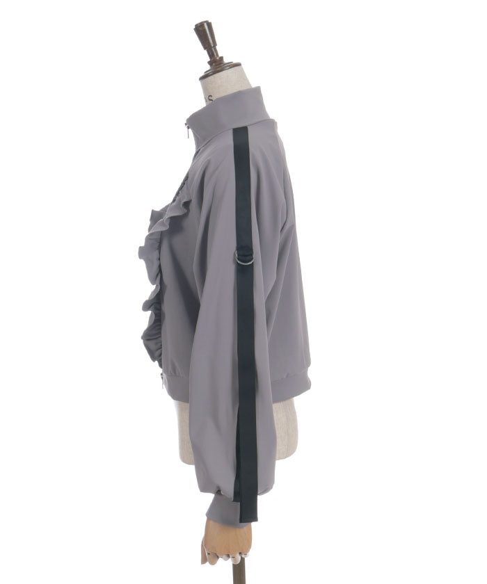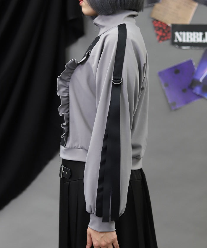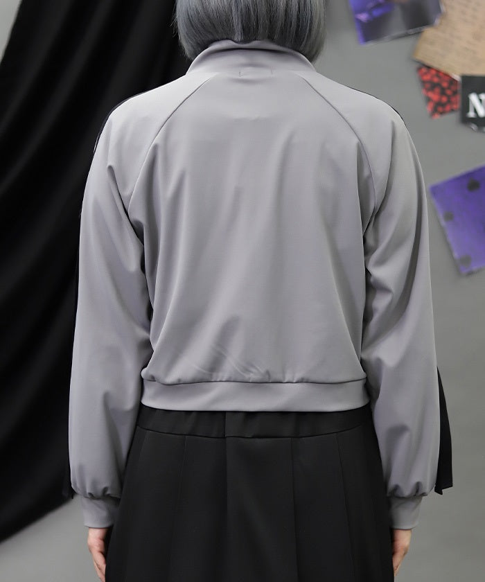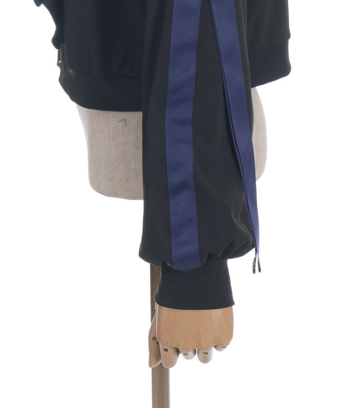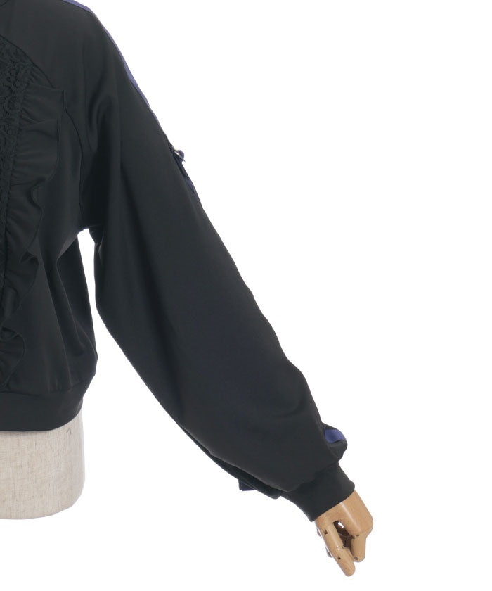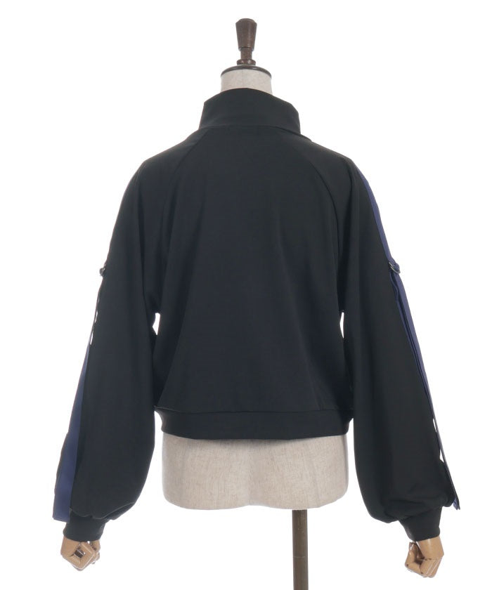 This track jacket features a sophisticated design with lace and contrasting tape.