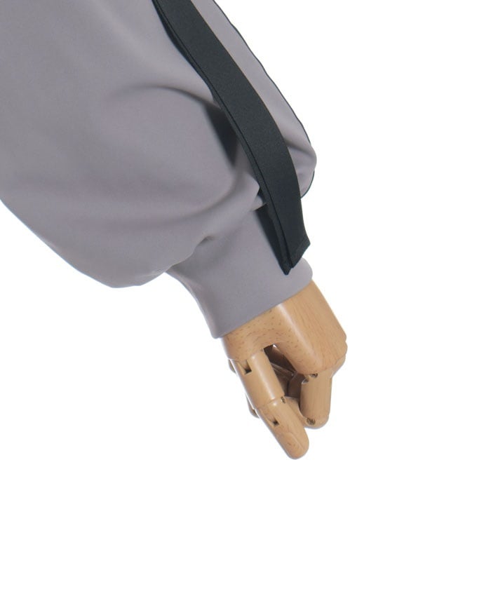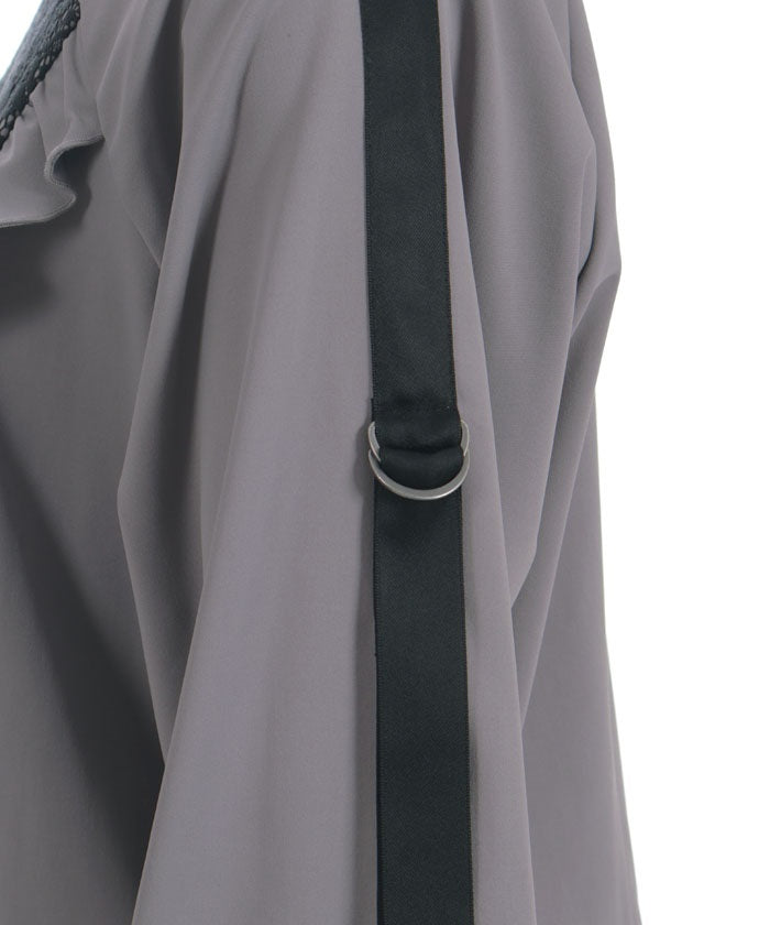 The contrasting tape on the sleeves can be tied into a bow or left loose.