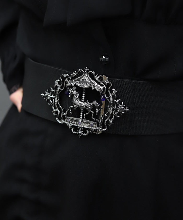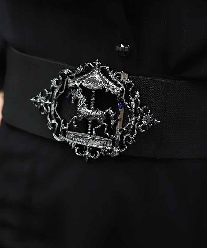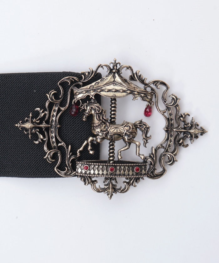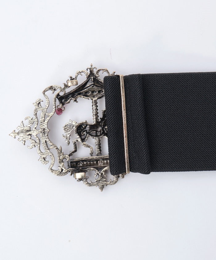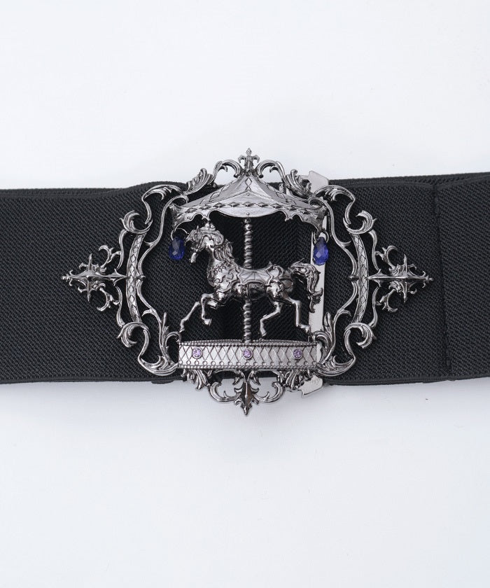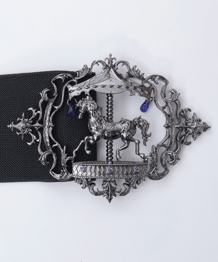 This elastic belt features a carousel motif, which creates different impressions during the day and at night.