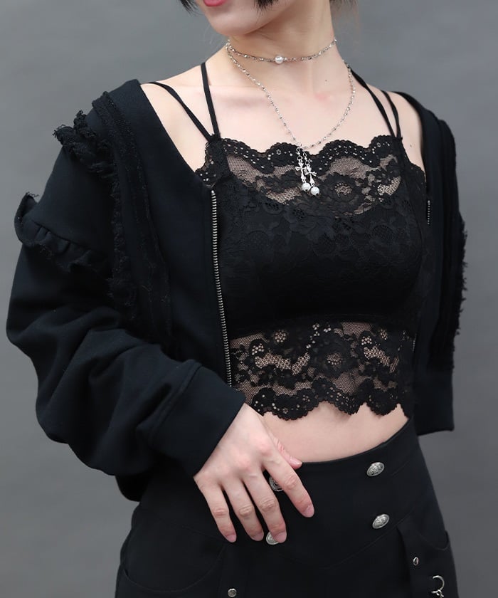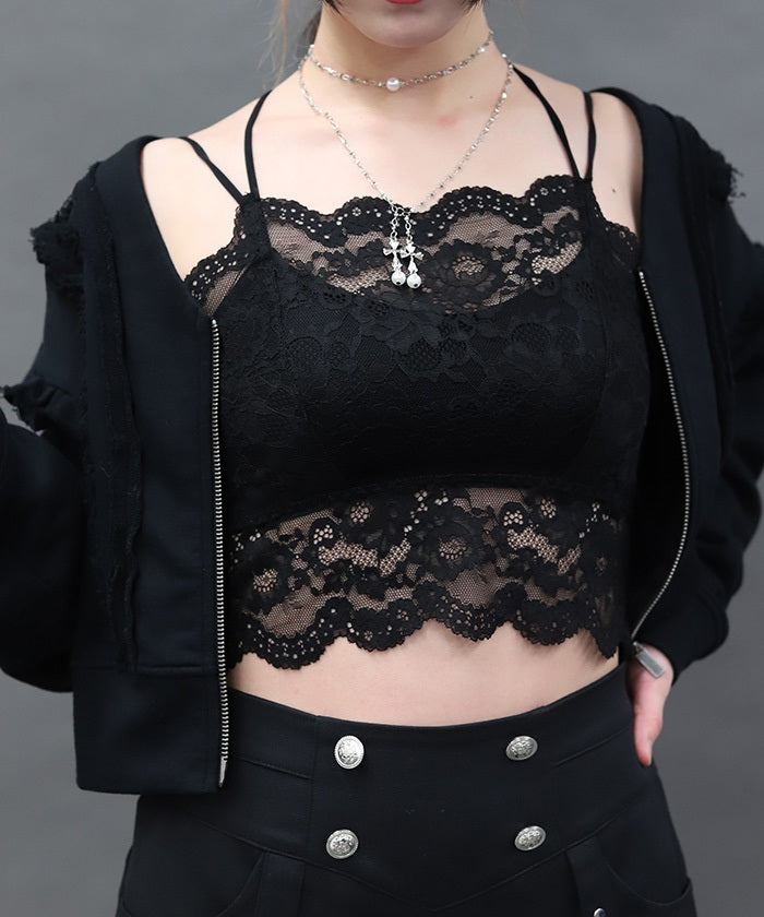 A healthy skin-showing coord combining a sheer top and a lace inner♪