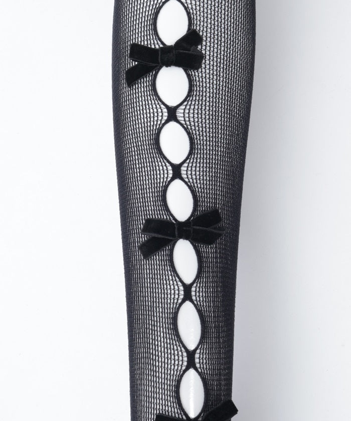 These tights feature a velvet ribbon accent.