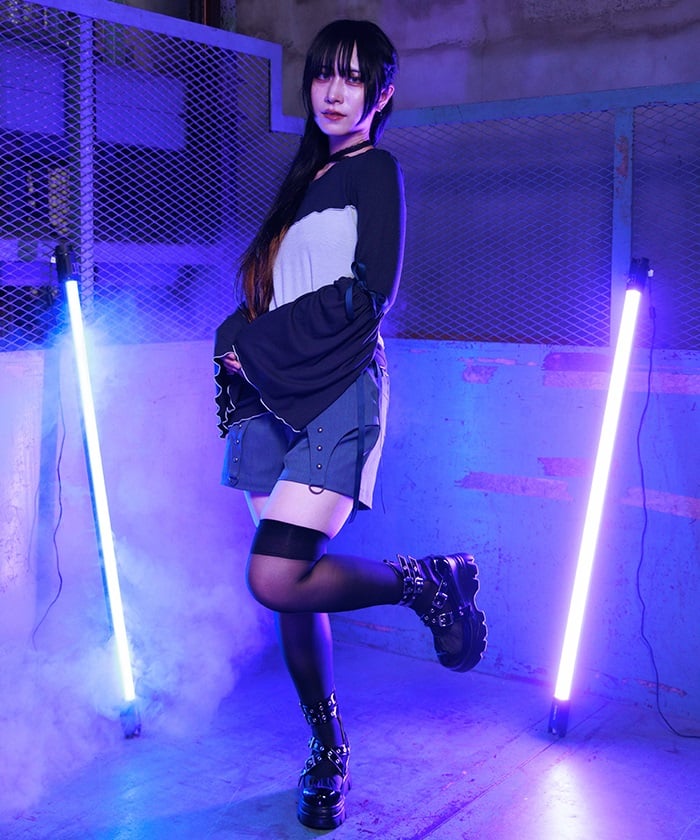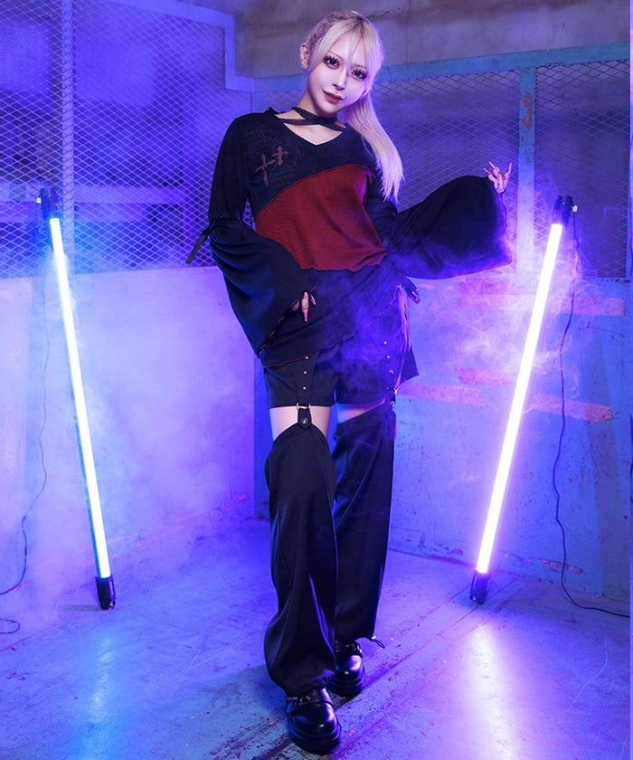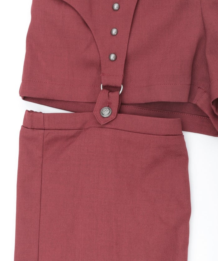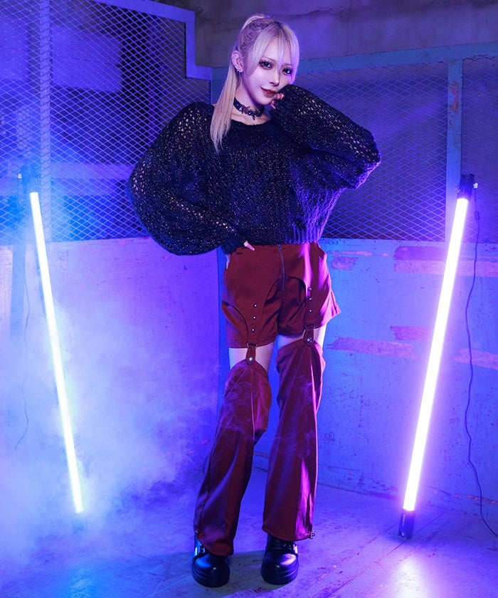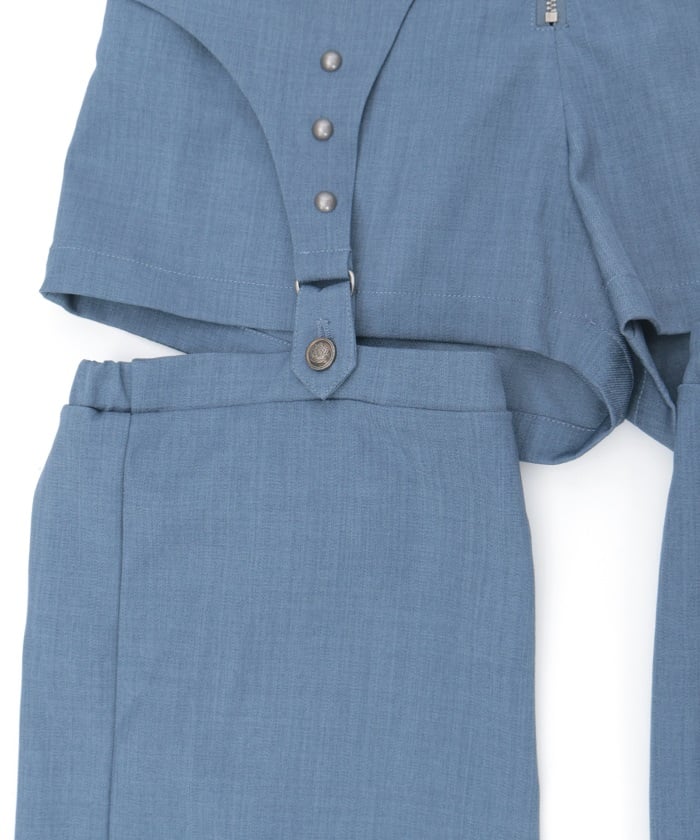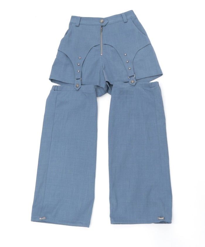 The leg cover parts are attached by garter straps, which you can easily detach to wear as simple shorts.