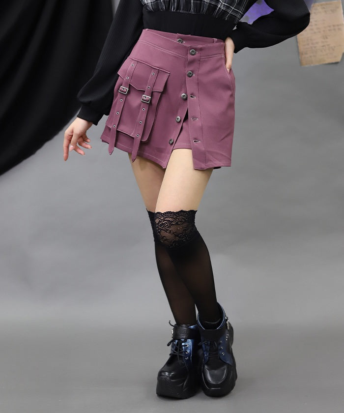 These skirt-like pants feature a layered design with an overskirt.