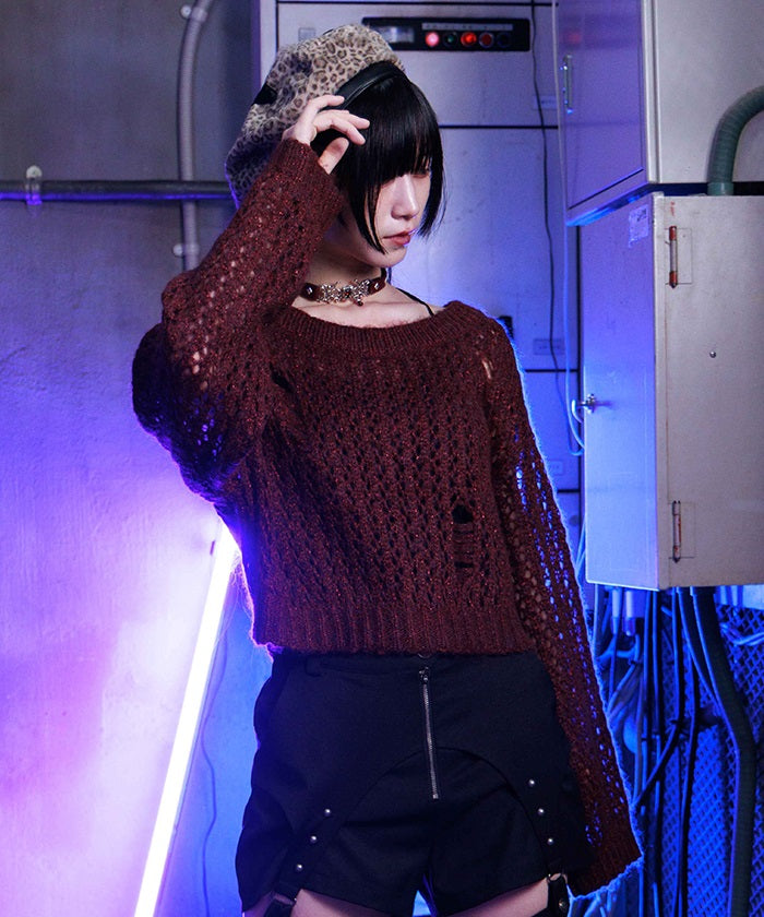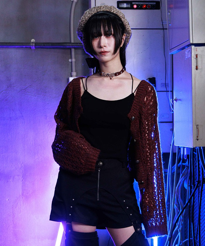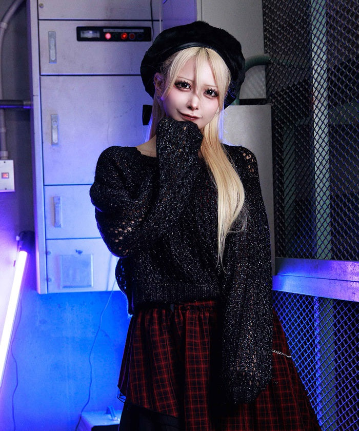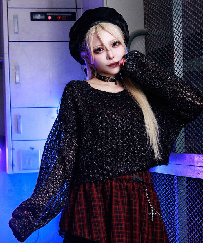 Paired with the dress with frills and lace-ups, this item adds an effortless touch to create a casual gothic look.