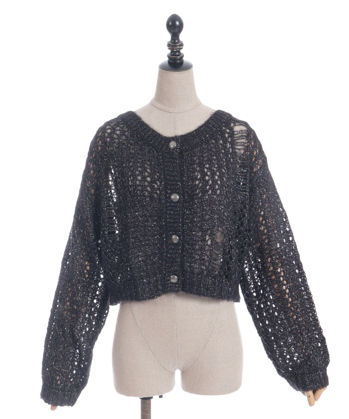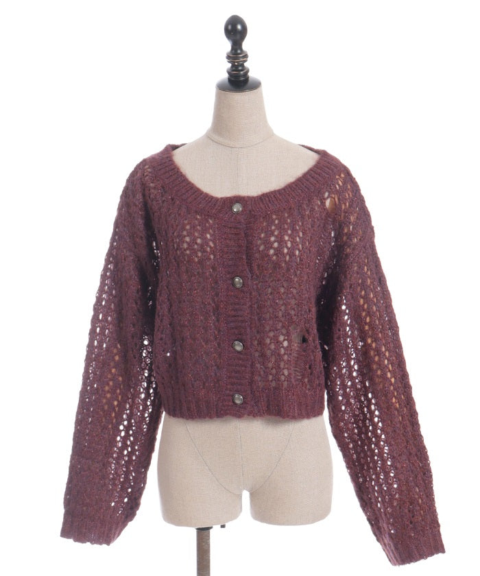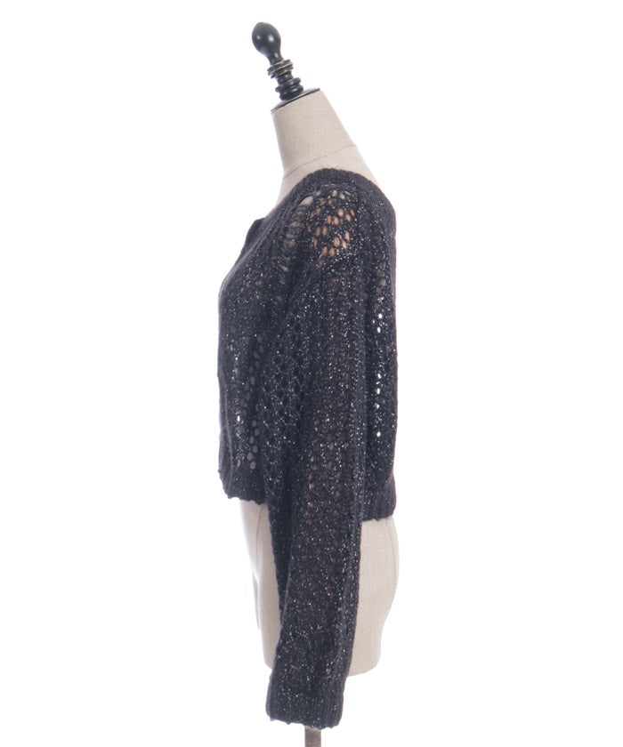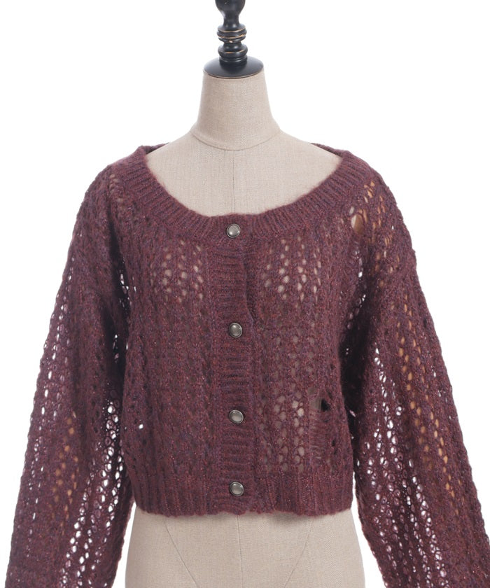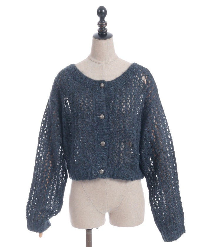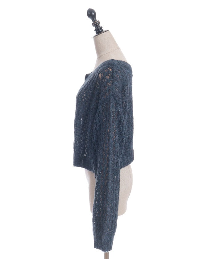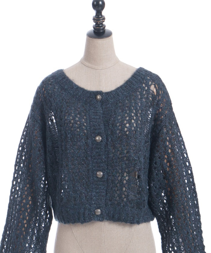 A mohair-like knit cardigan with an added subtle touch of dull glitter.