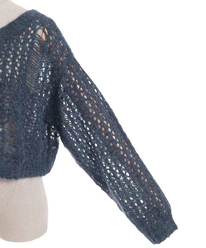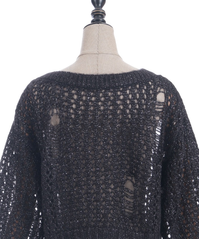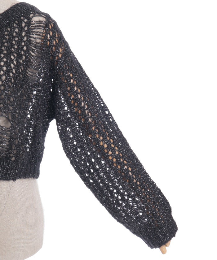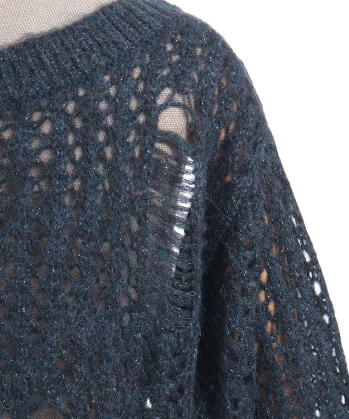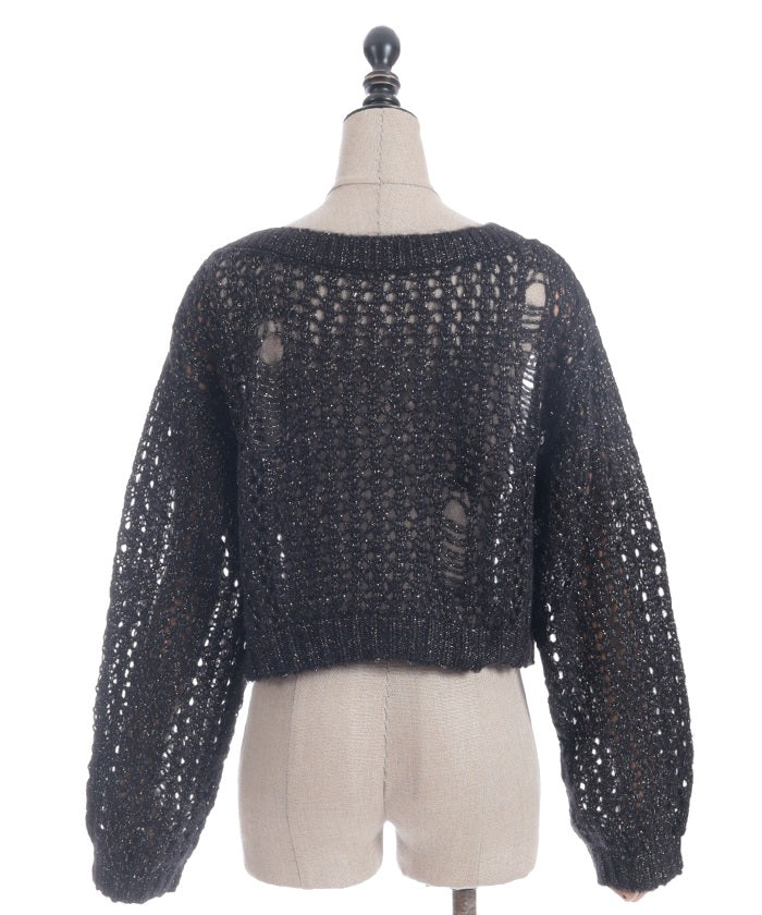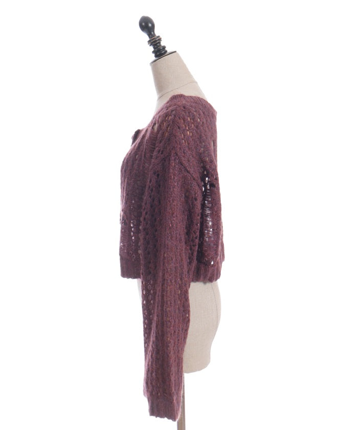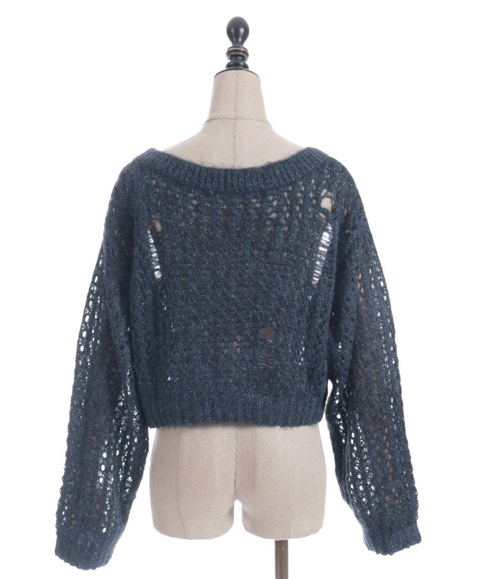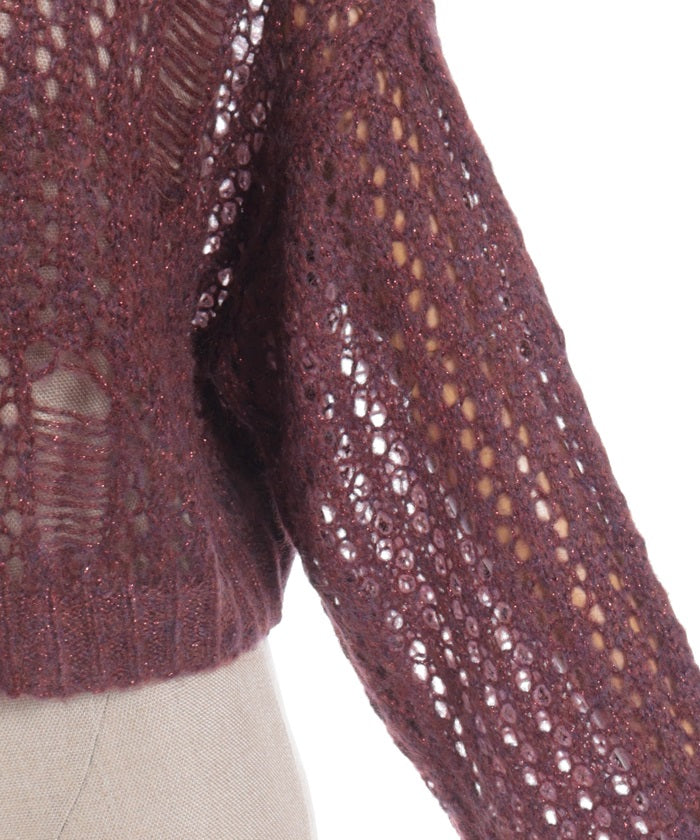 A mohair-like knit cardigan with an added subtle touch of dull glitter.