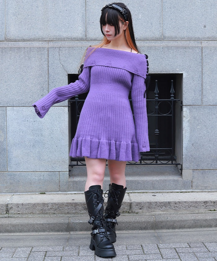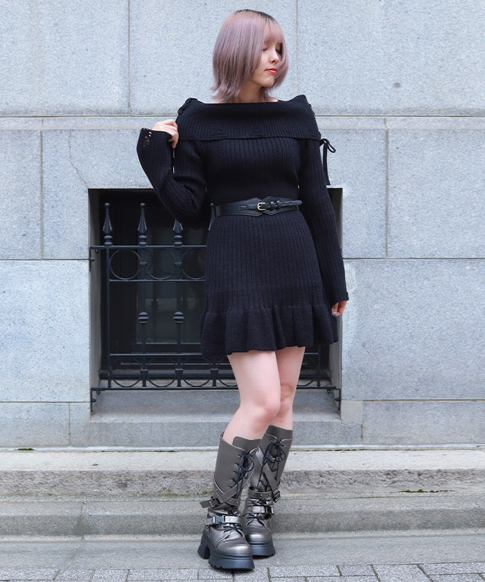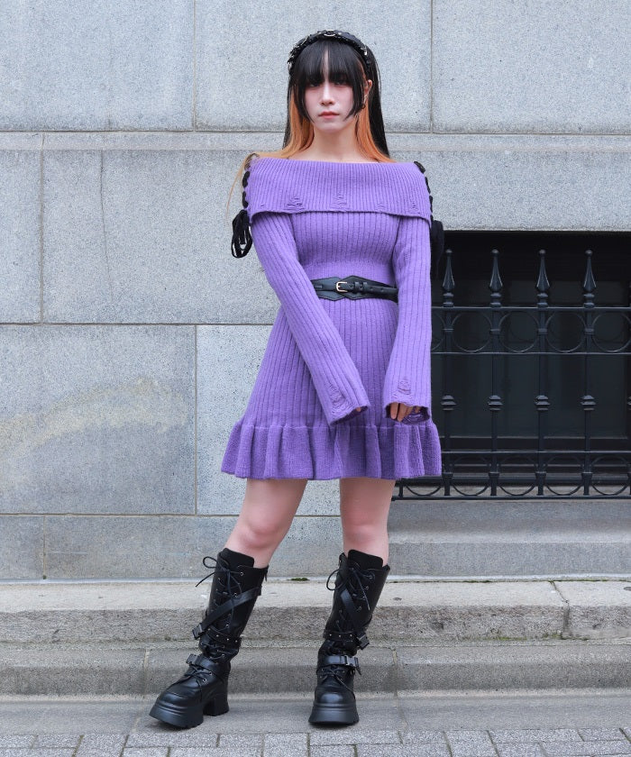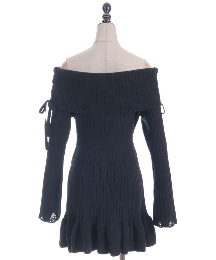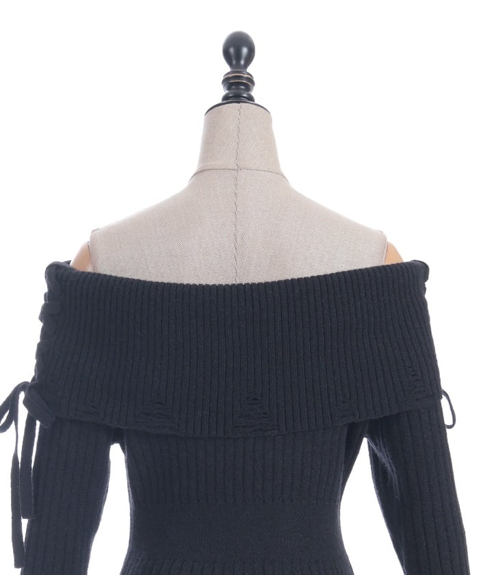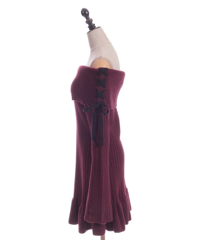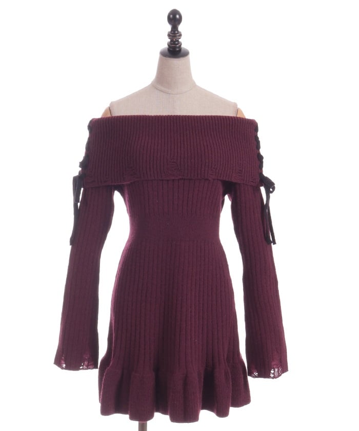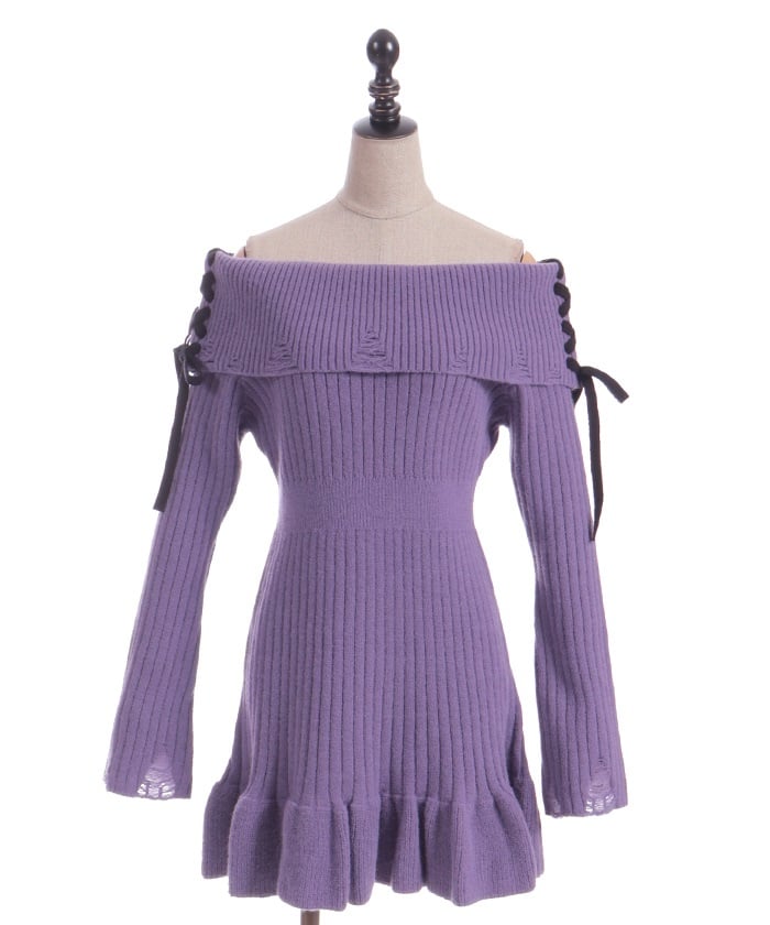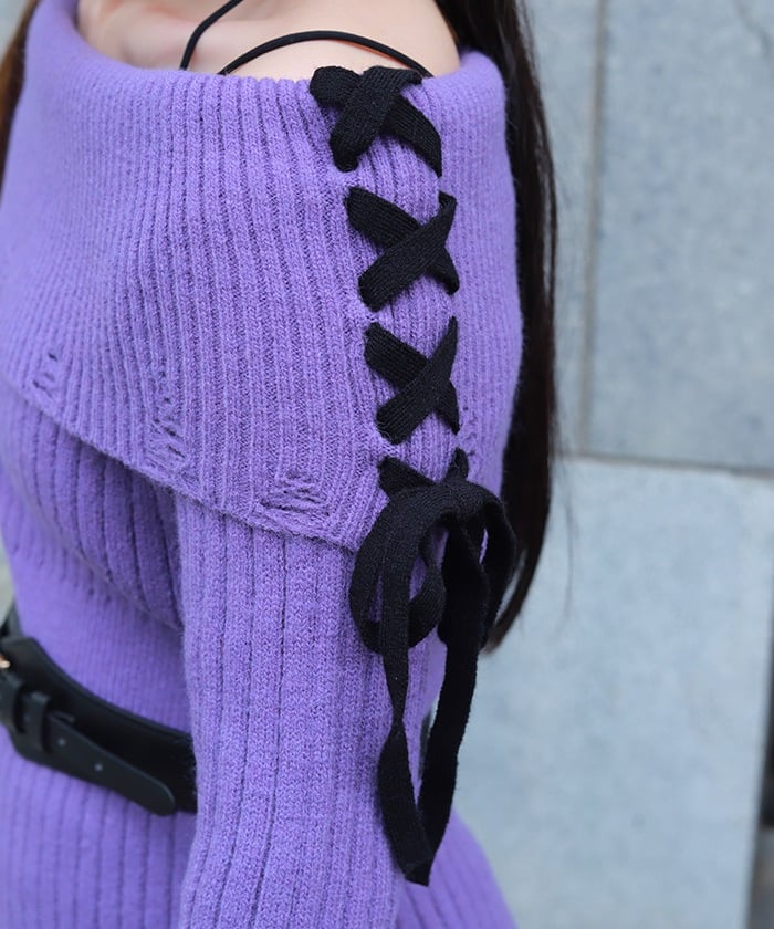 A knit tunic that creates a mature, effortless look with its off-shoulder design.
