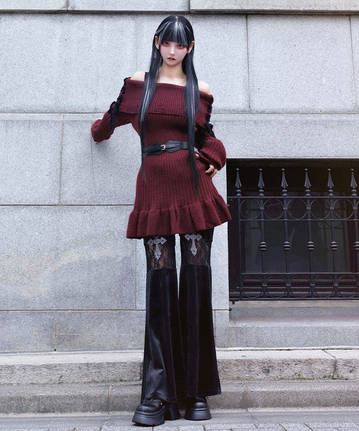 Try pairing this with our Lace Panel Velour Flare Pants.