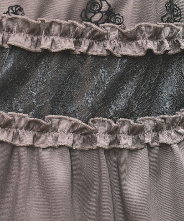 The neckline flatters the décolleté, and the front ribbon adds a accent. The delicate lace and frills create a feminine, classical feel. The charming silhouette flows softly with every movement.