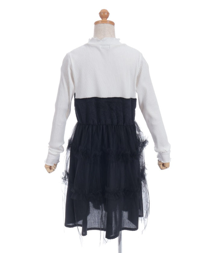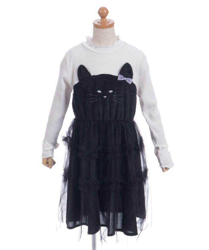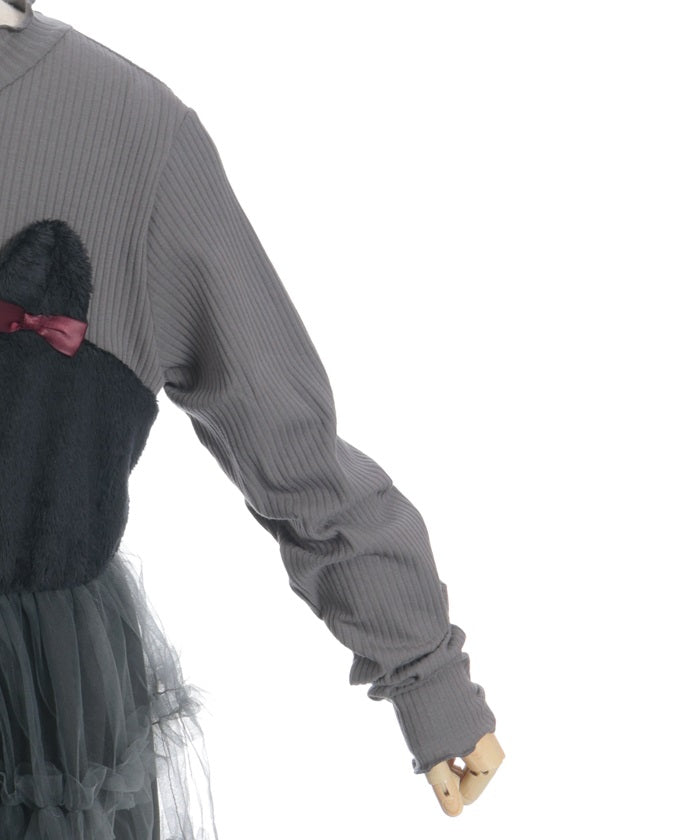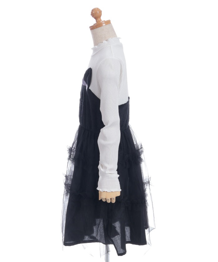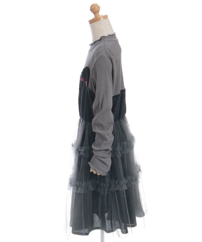 This pullover dress is crafted from a soft, comfortable knit fabric. It features a large heart motif on the front, and lace and ribbon detailing create a super cute look.