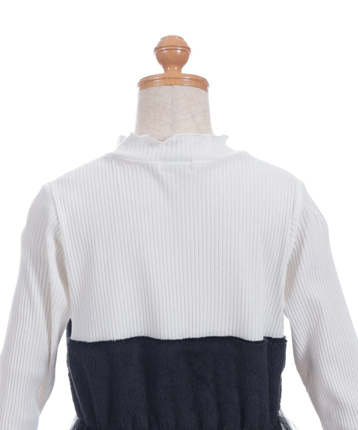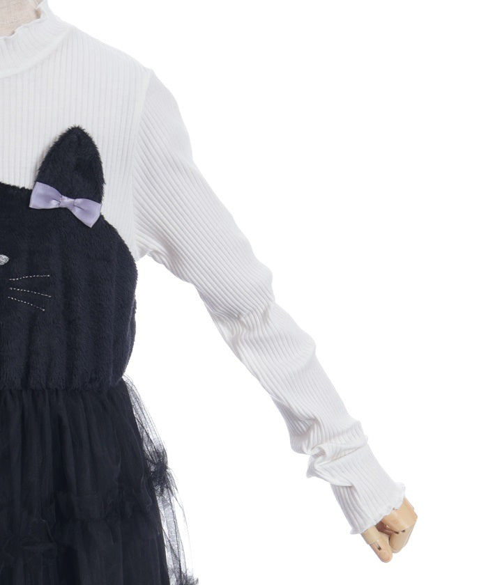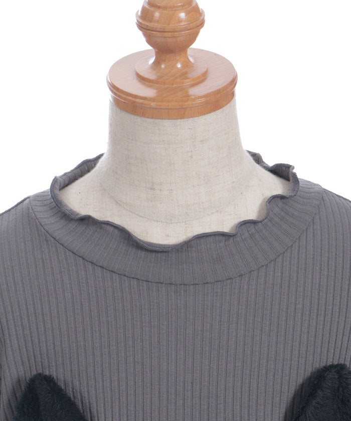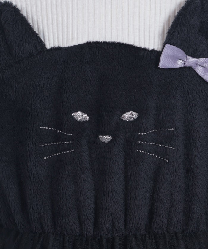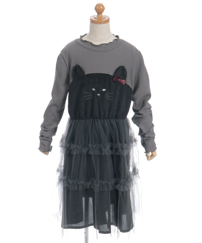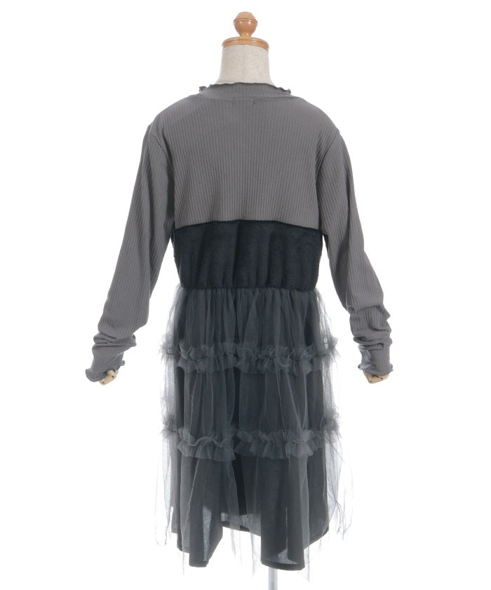 This pullover dress is crafted from a soft, comfortable knit fabric. It features a large heart motif on the front, and lace and ribbon detailing create a super cute look.