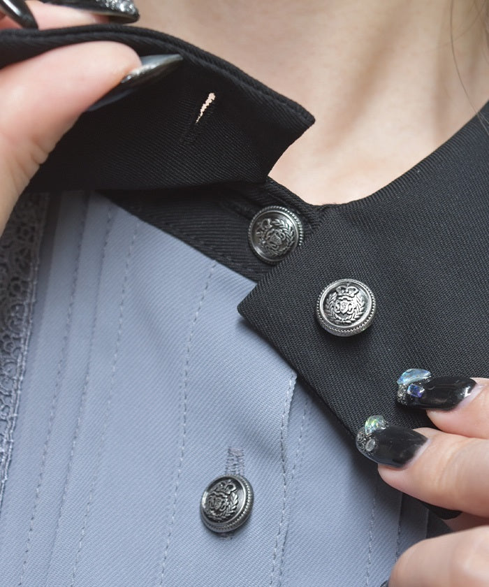 The emblem-style buttons add a touch of military flair, creating a refined impression.
