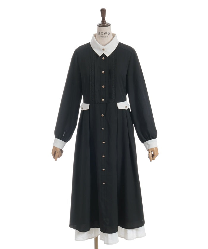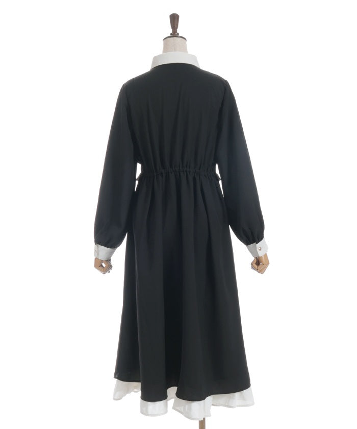 The elastic back cinchs the waist, while the tucks create a slim fit. The silhouette then flows naturally toward the hem.