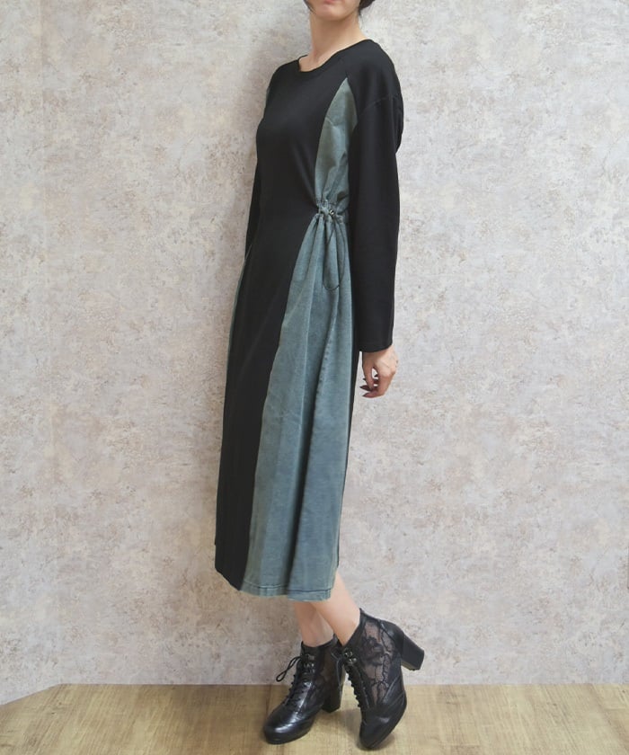This dress is crafted from soft knit fabric. It's comfortable against the skin and perfect for everyday wear. Its simple yet draped silhouette allows for a relaxed yet sophisticated look.