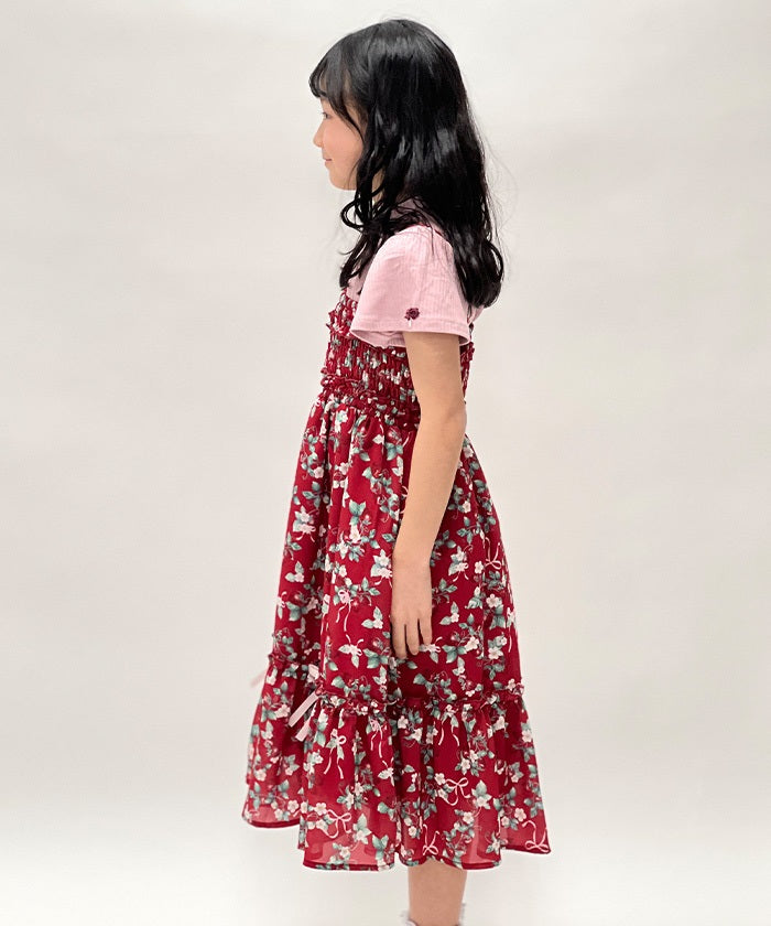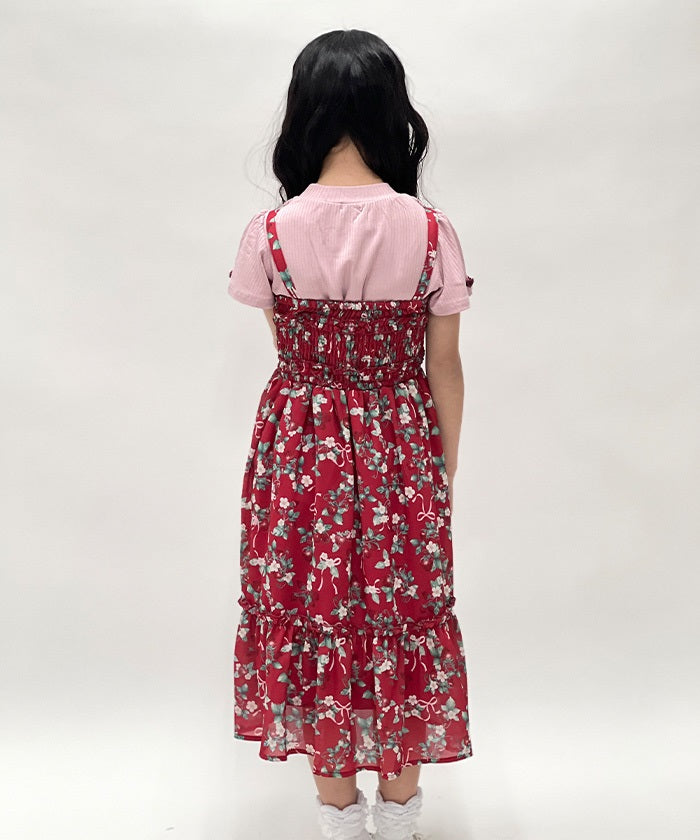 It can be worn as both a cami dress and a long skirt, allowing for versatile styling as your child grows. The soft, flowing silhouette offers both ease of movement and cuteness.