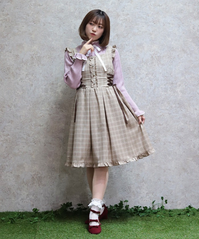 We recommend pairing it with a blouse or inner knit.