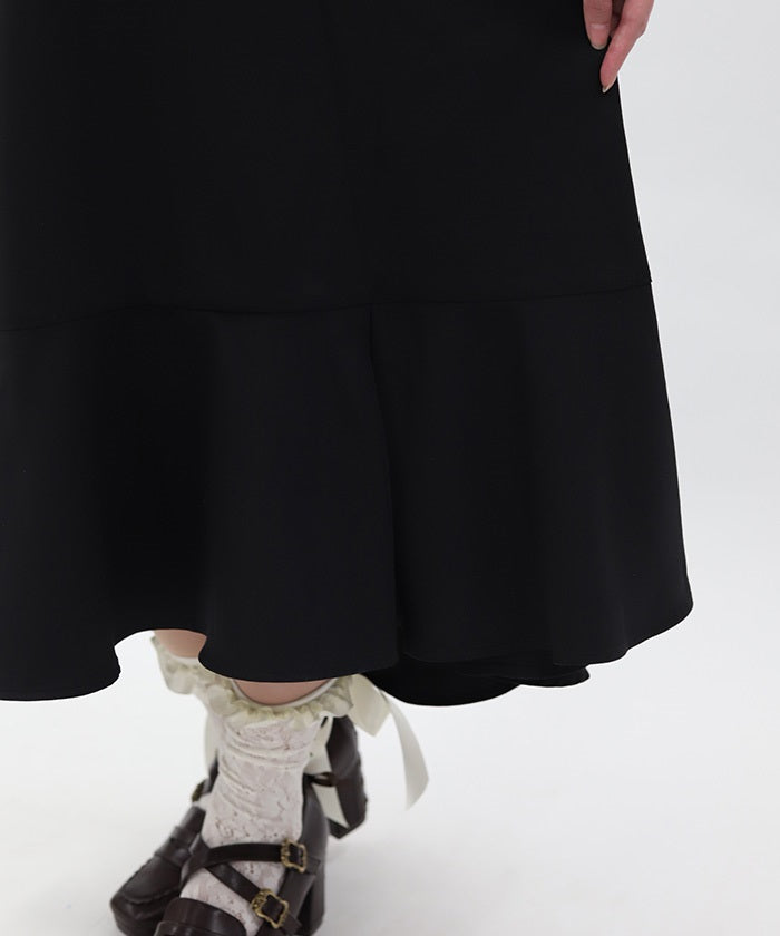 The skirt features a mermaid-inspired silhouette, adding a trendy touch.