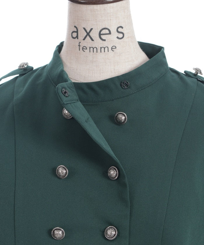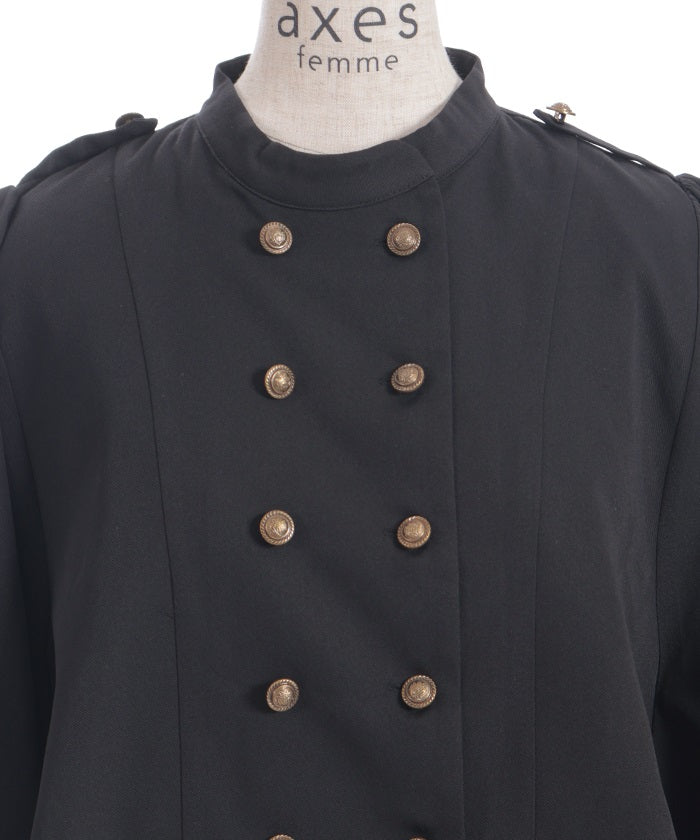 The three-dimensional emblem buttons create contrast with their plated metal colors.