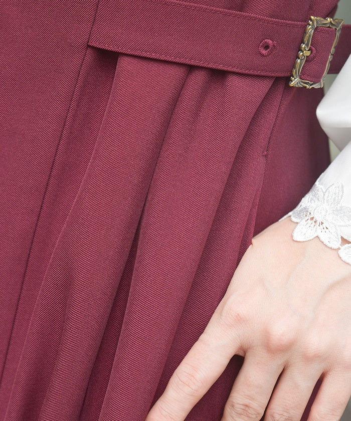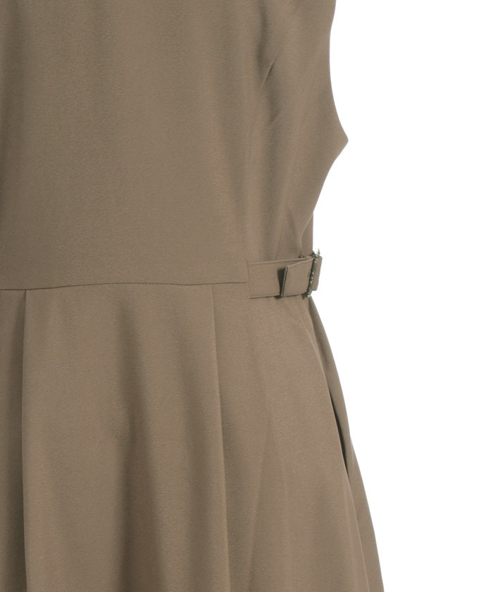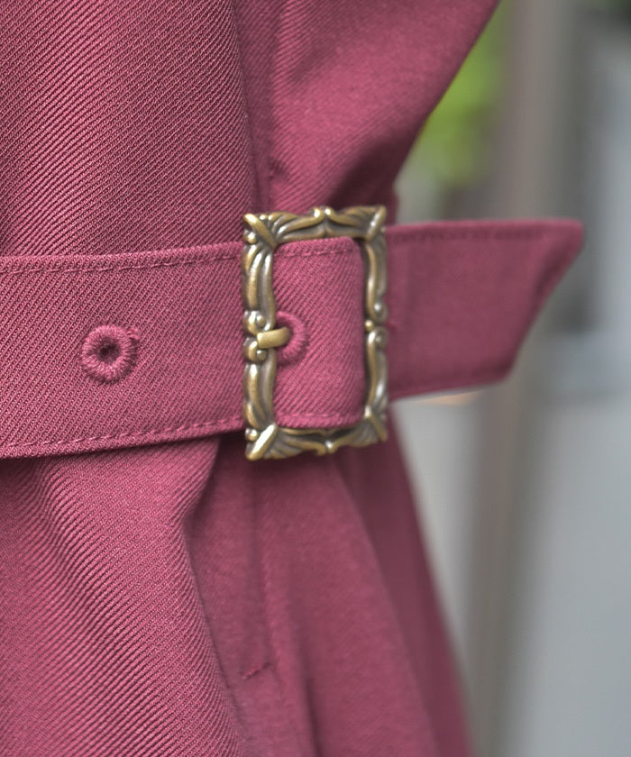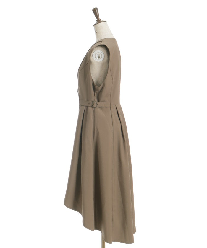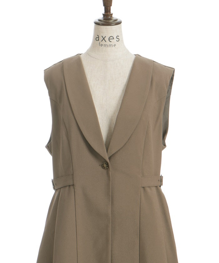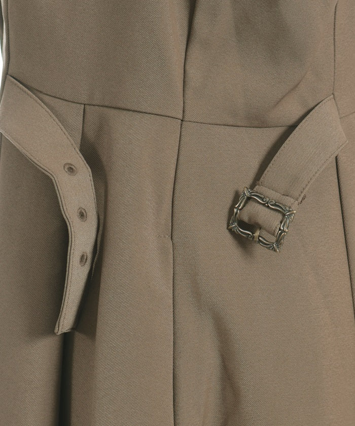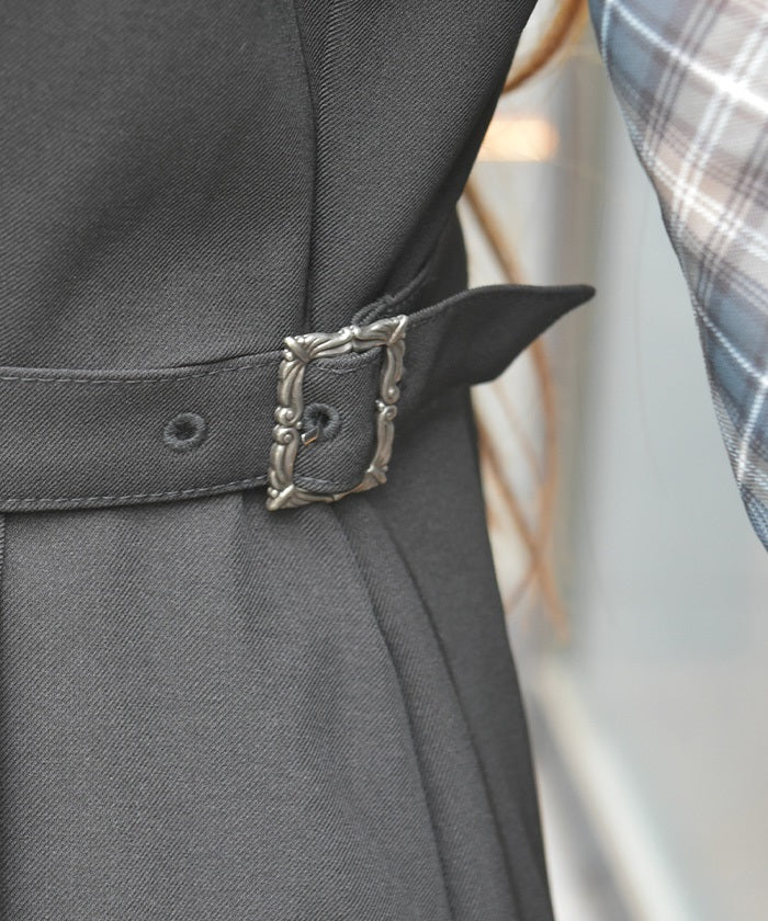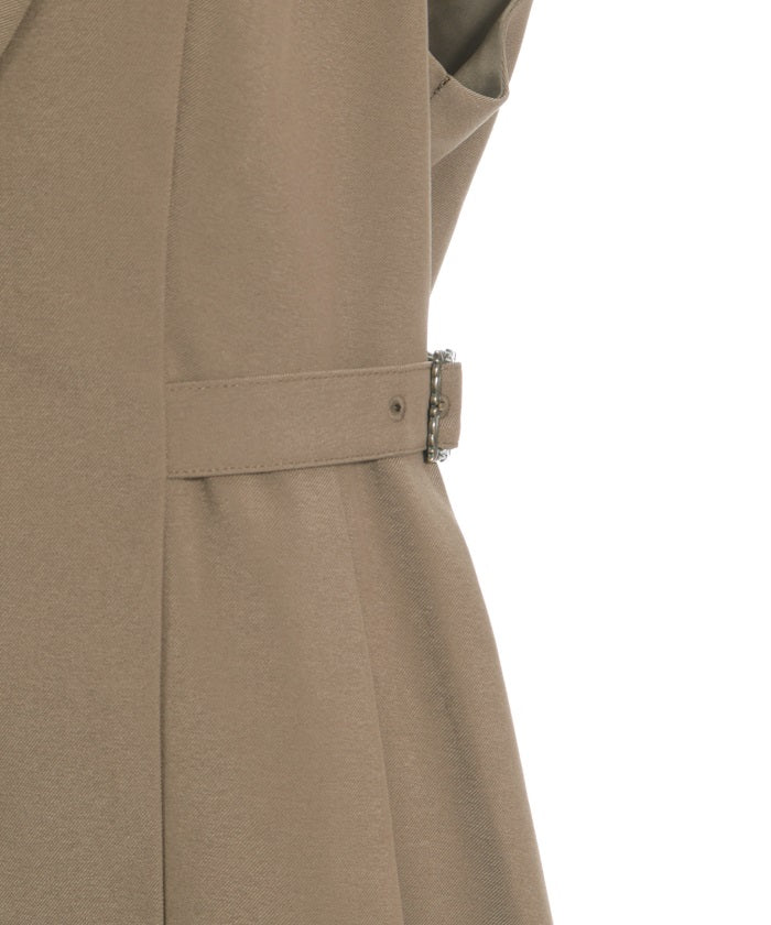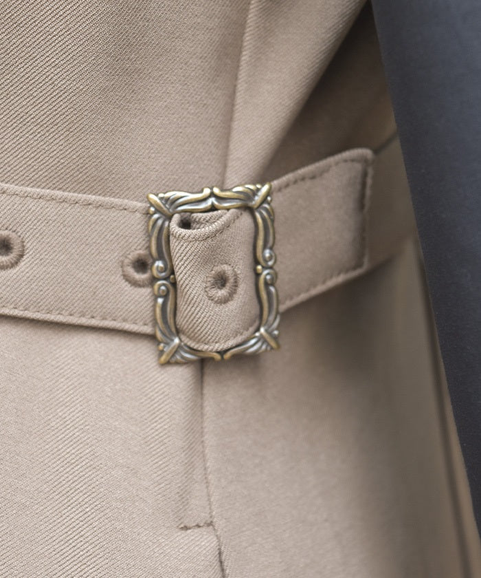 The tucked waist and side belts create a streamlined look.
