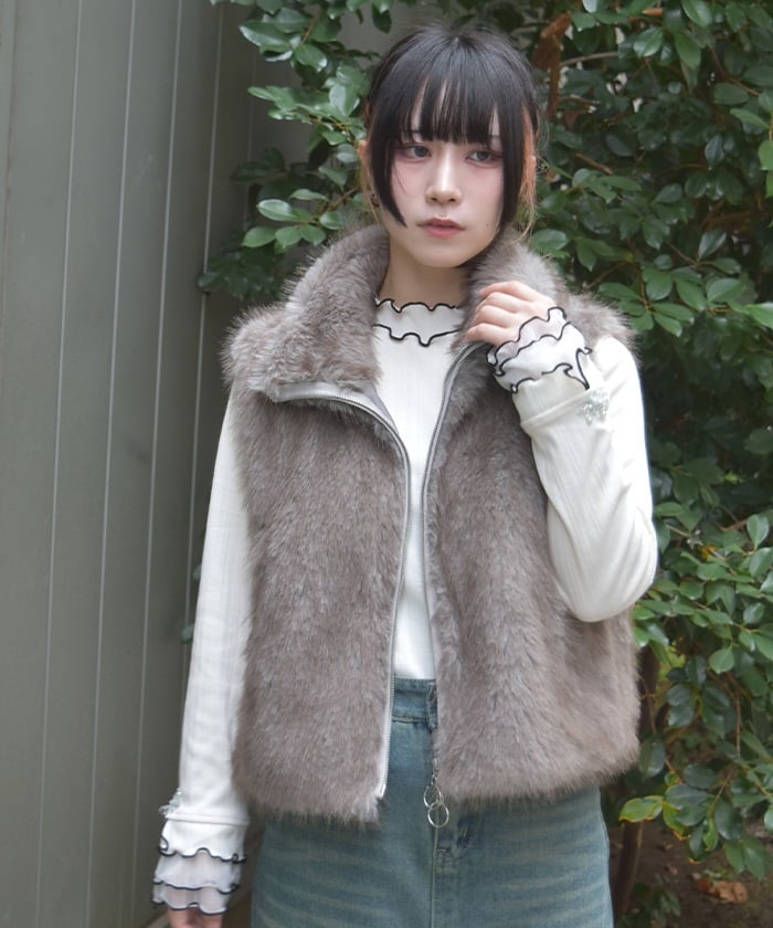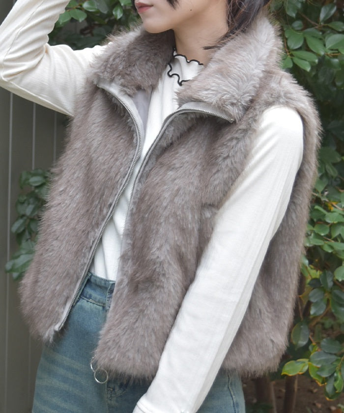 This fur vest is a must-have this season, offering a balance of sweetness and modern style.