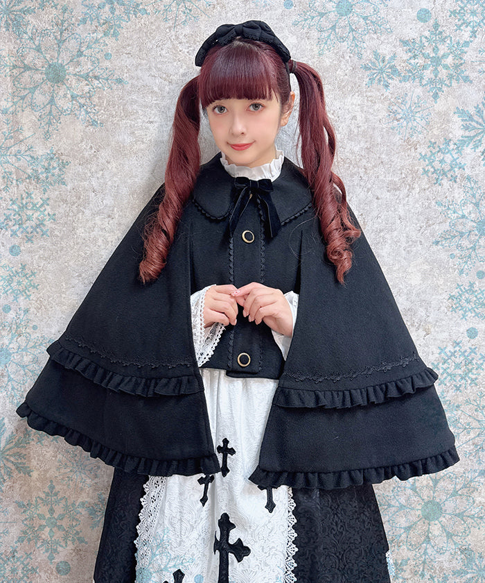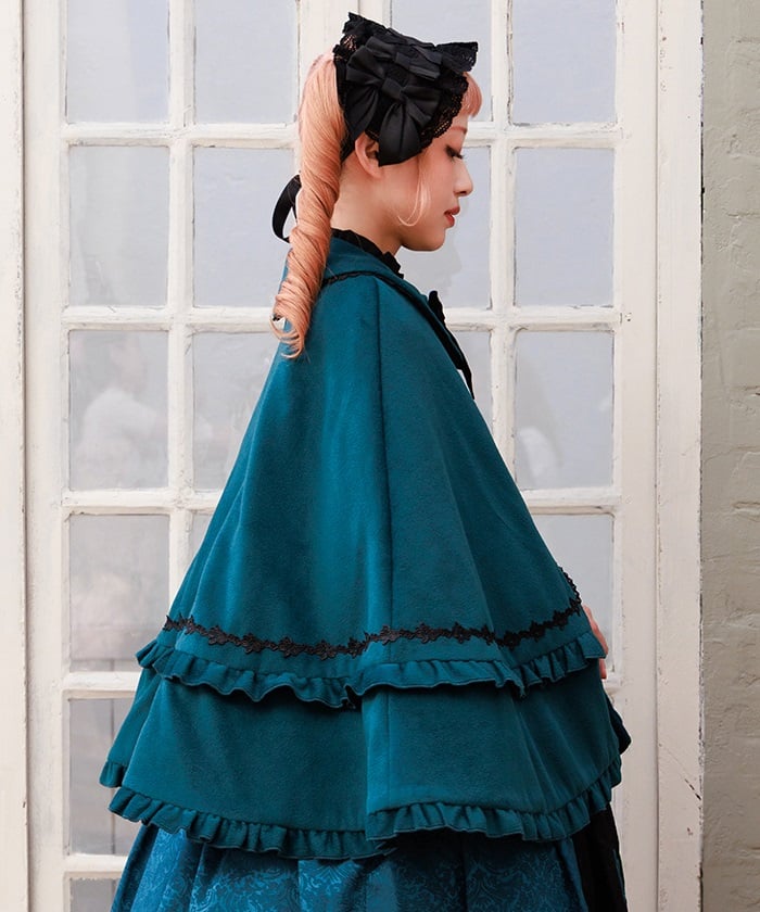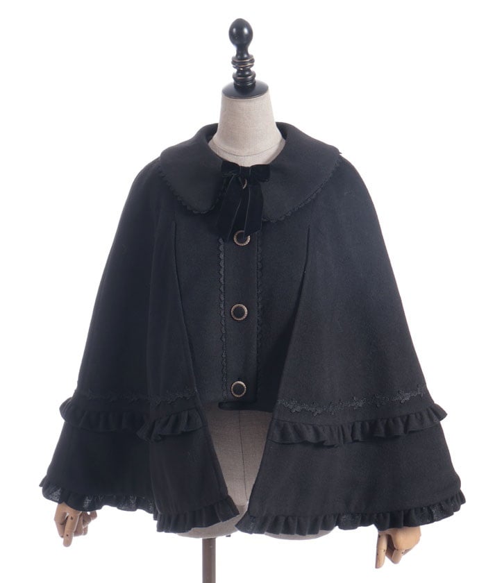 This cape coat is easy to coordinate with styles ranging from gothic to classical. The length is tailored to match Chalmiere's outfits.