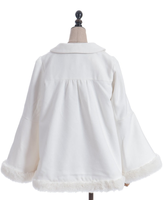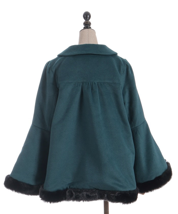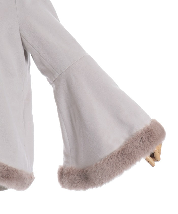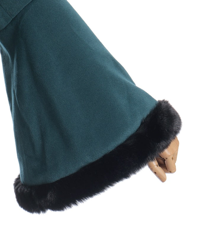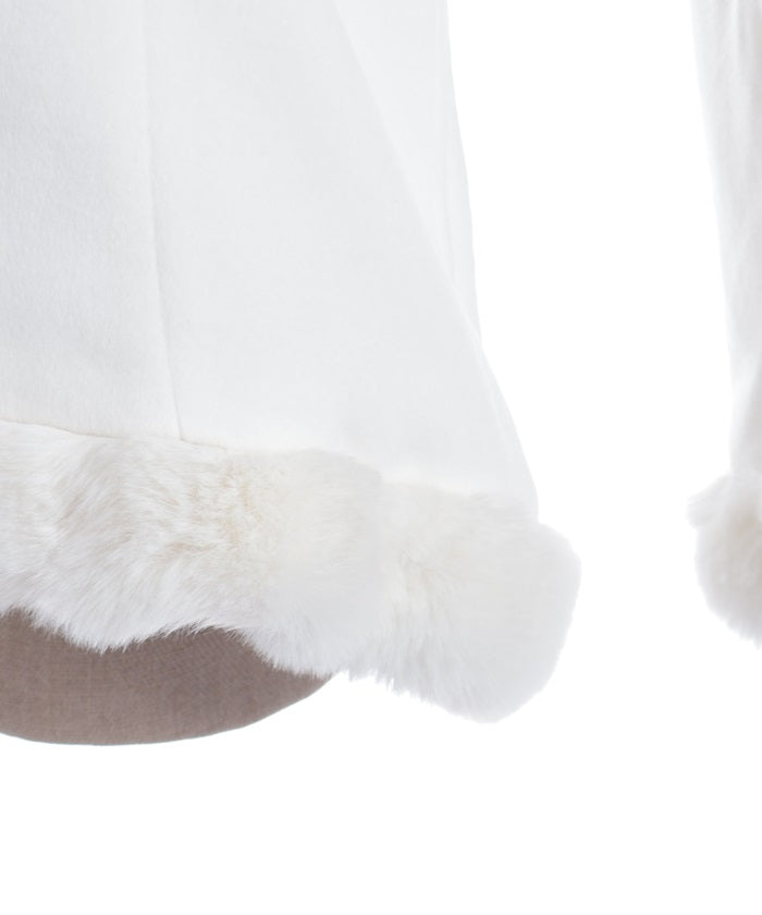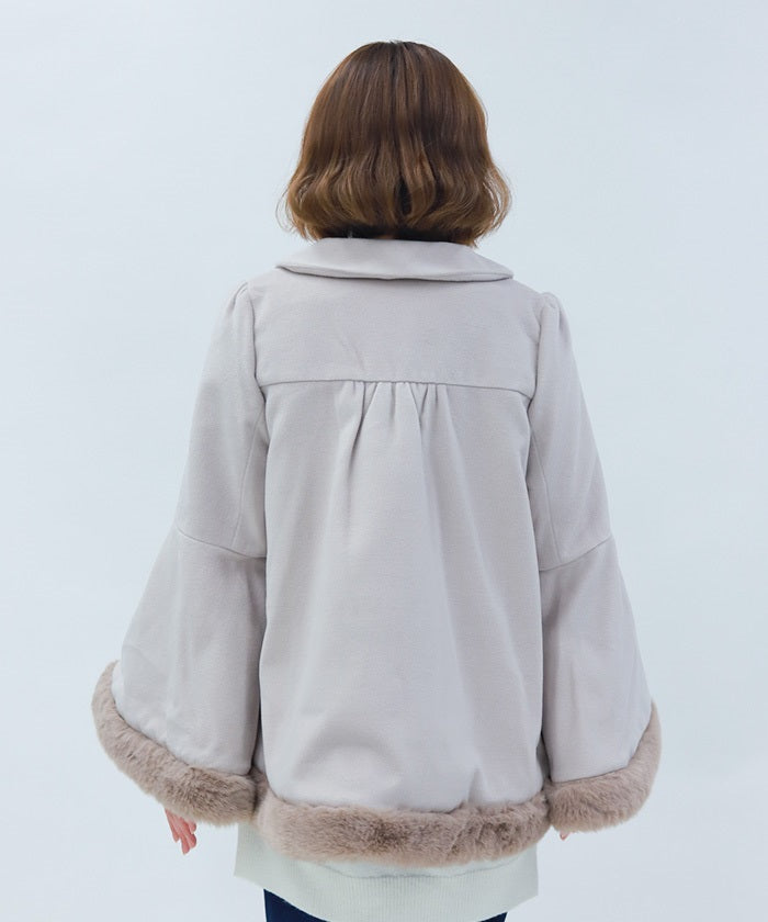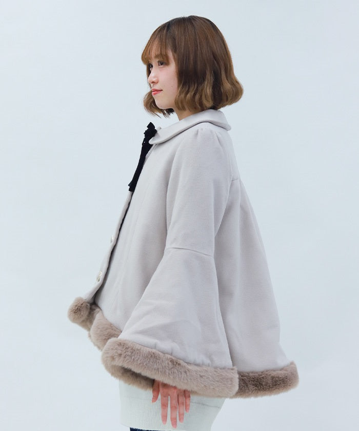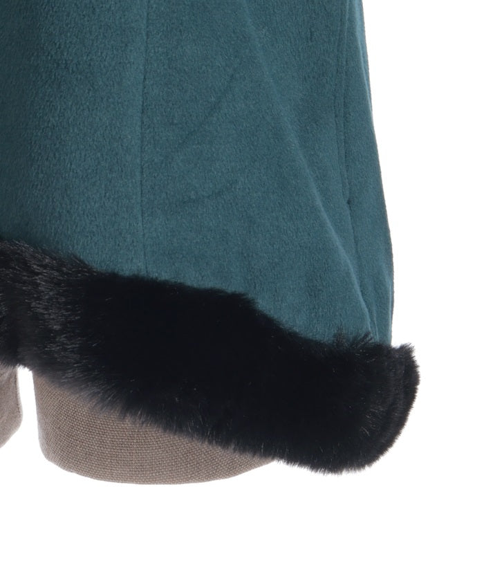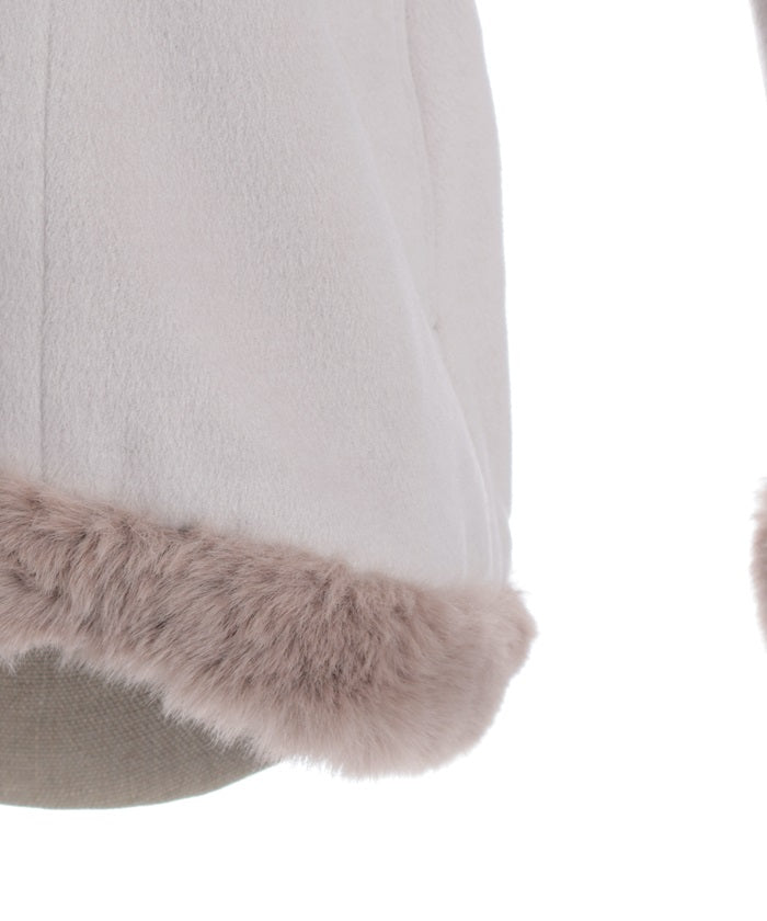 Faux fur accents the hemline and cuffs for a soft finish.