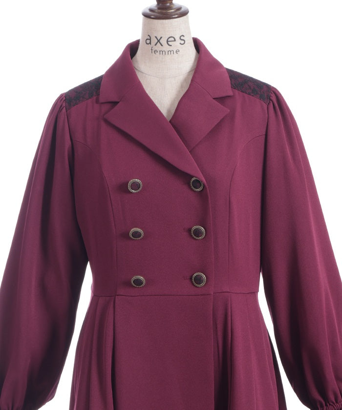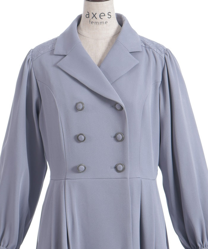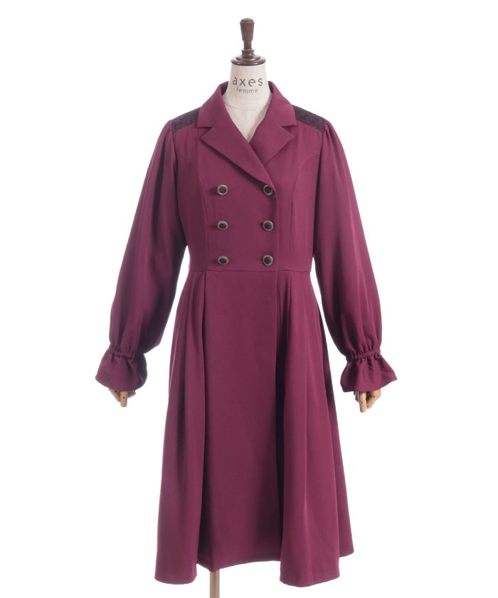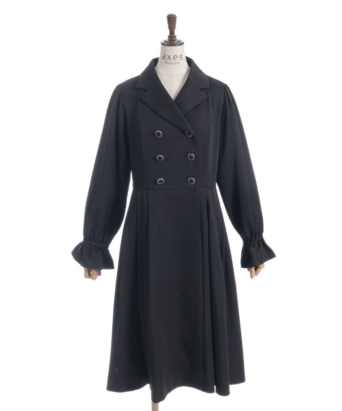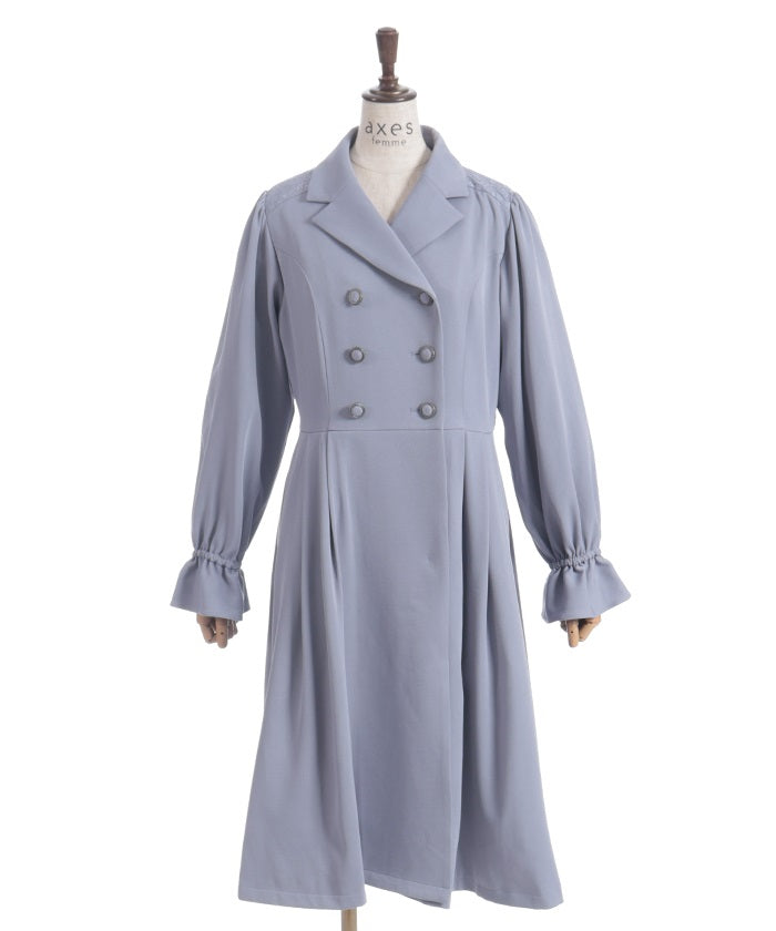 The double-breasted design is perfect for fall and winter.