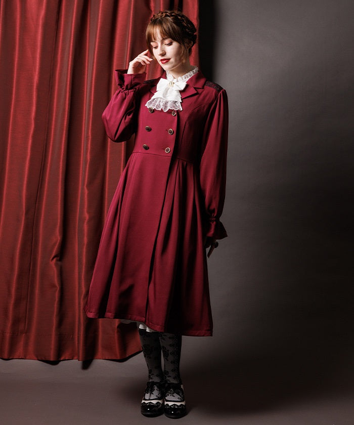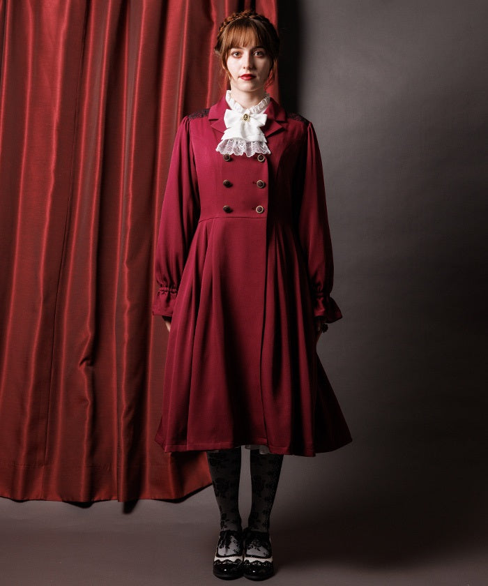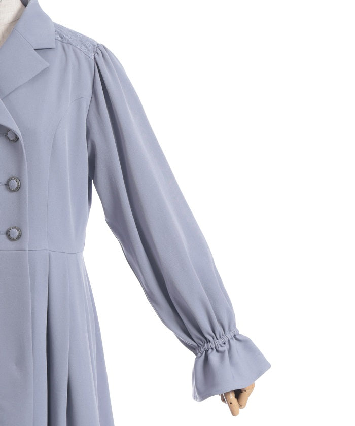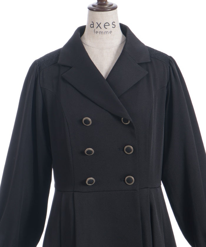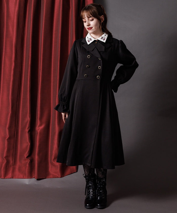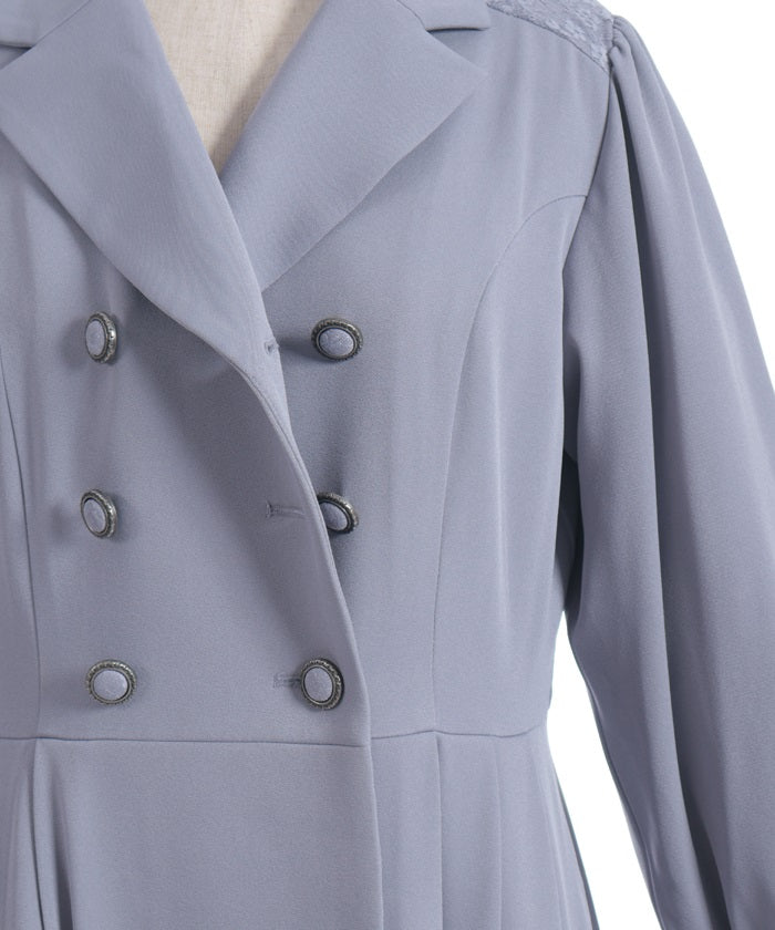 The double-breasted design is perfect for fall and winter.