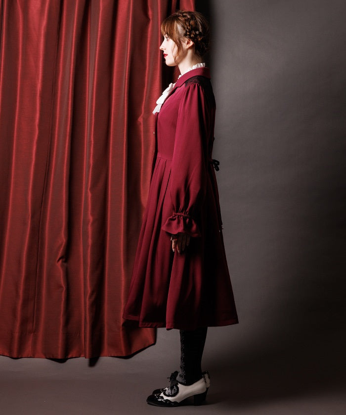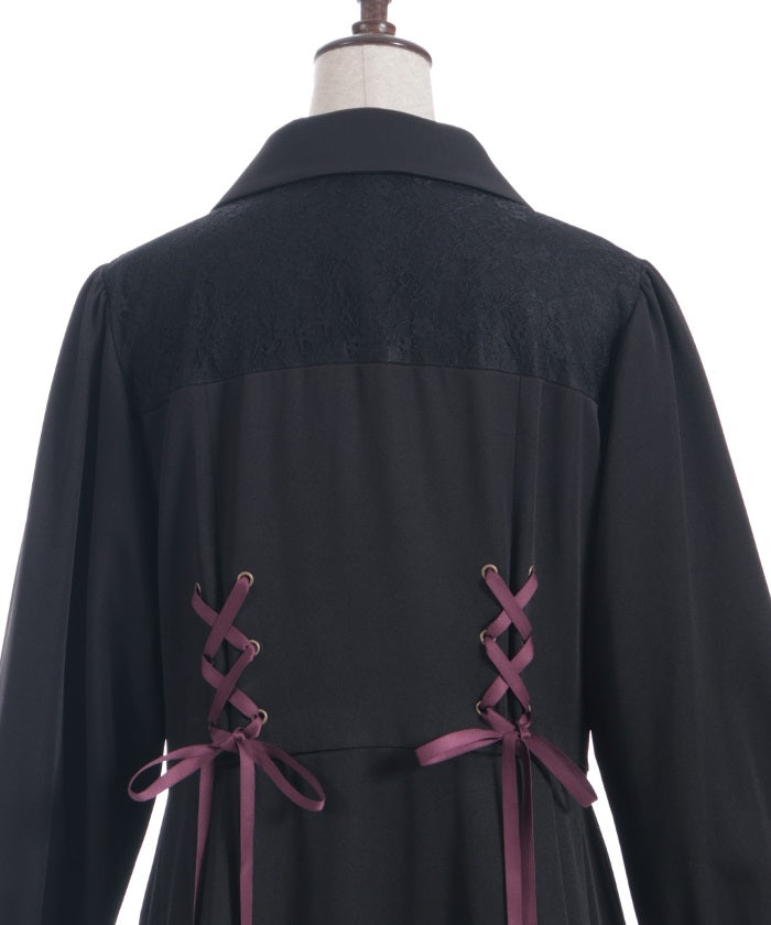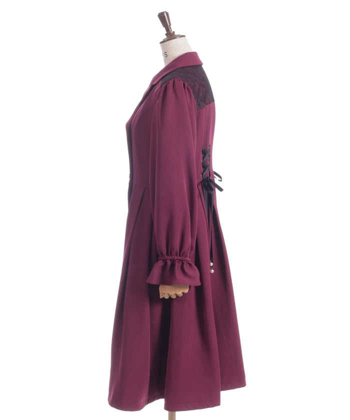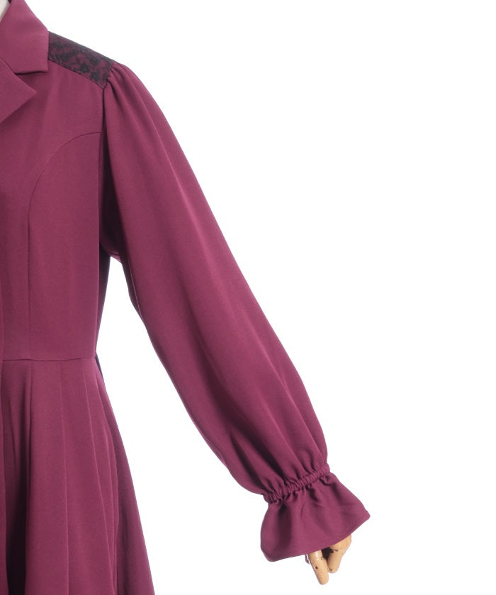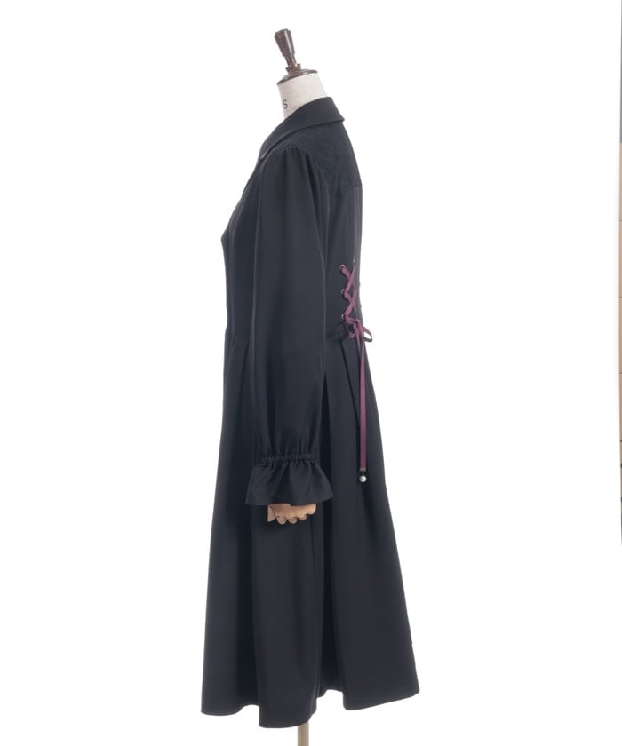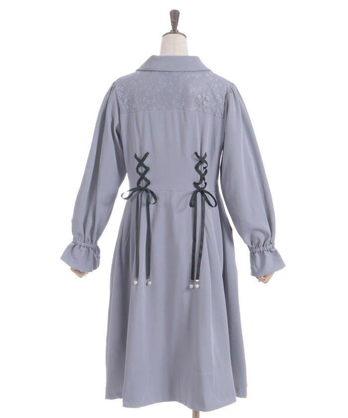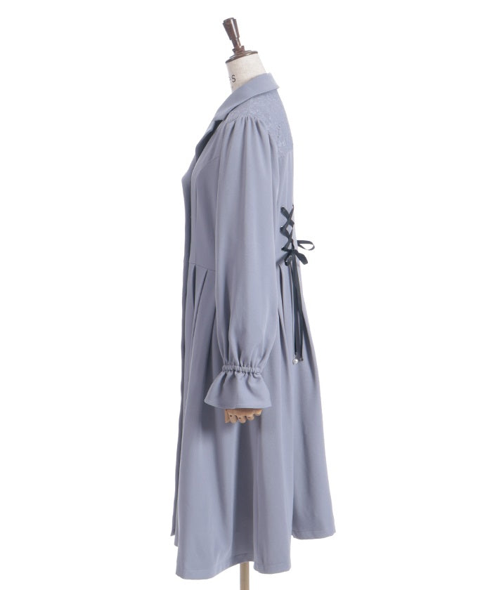 The yoke is layered with delicate lace featuring a small floral pattern.