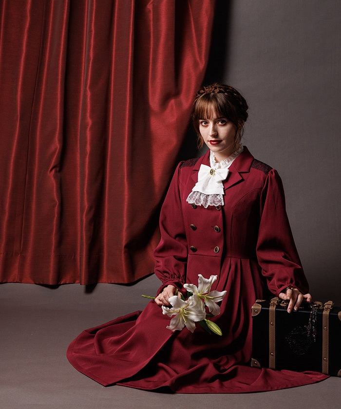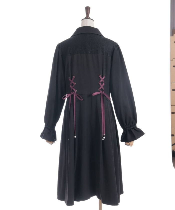 A trench coat featuring a beautiful pleated silhouette that resembles a dress.