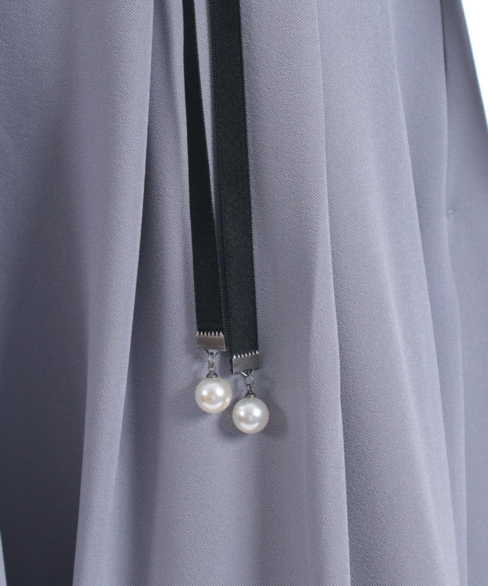 The matte satin ribbon with a subdued sheen is adorned with pearls that sway with movement, adding a touch of femininity.