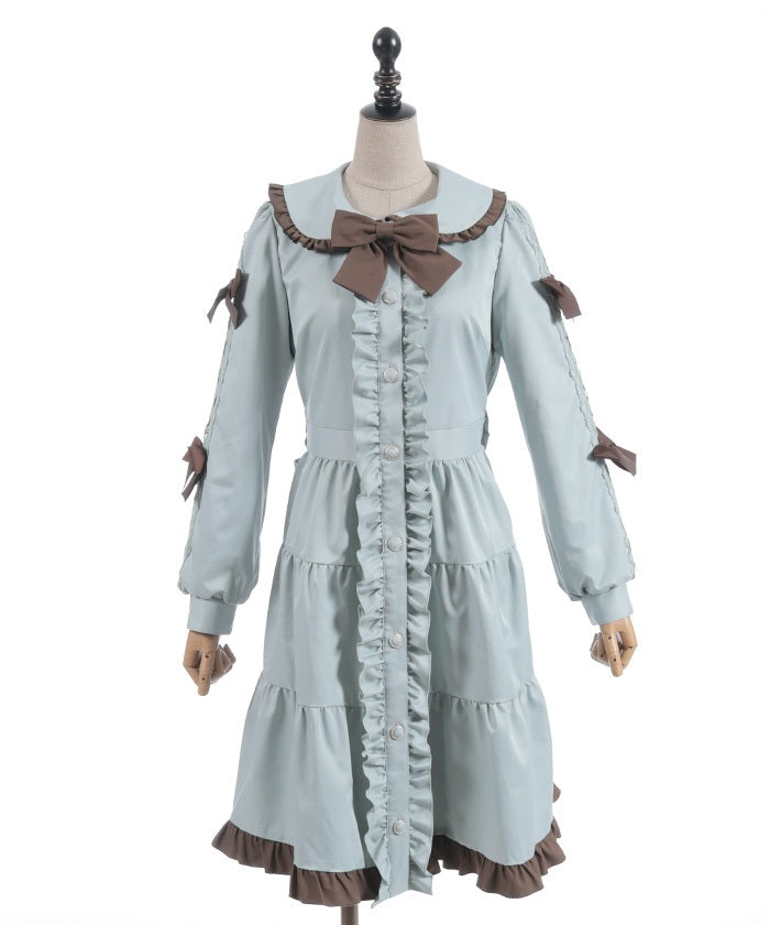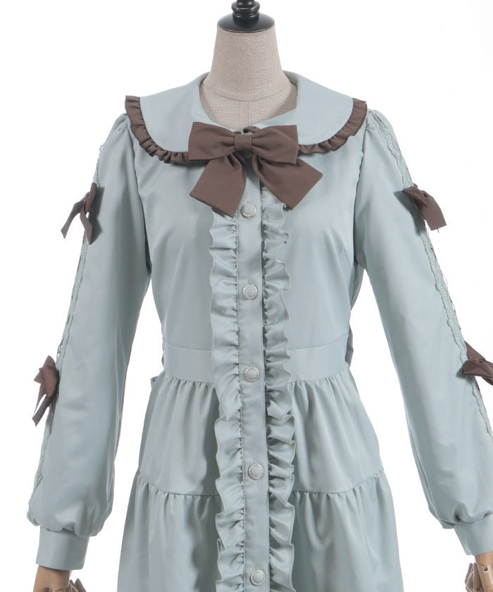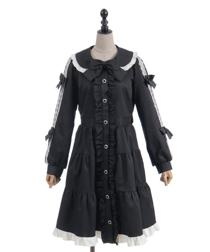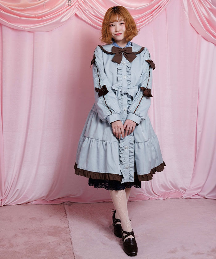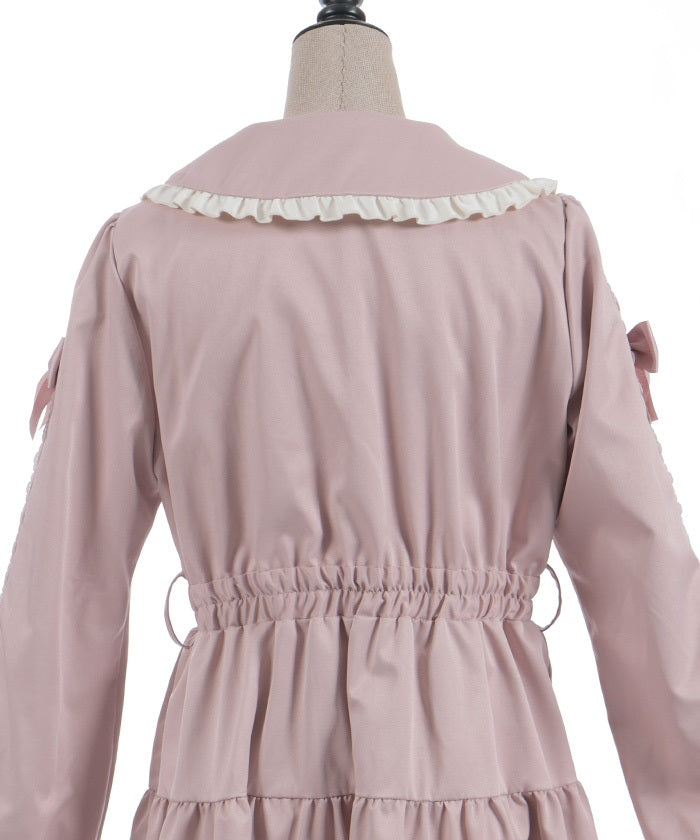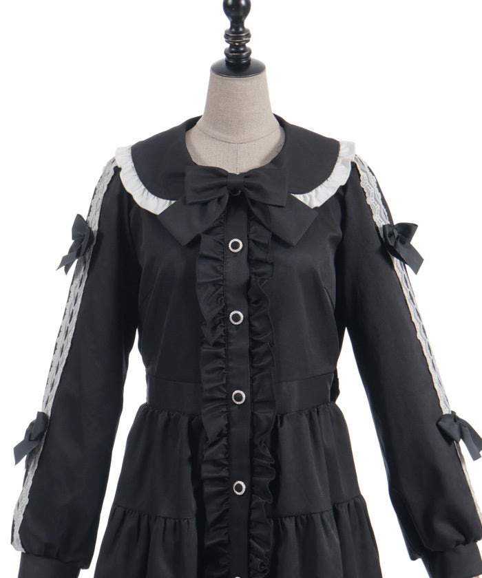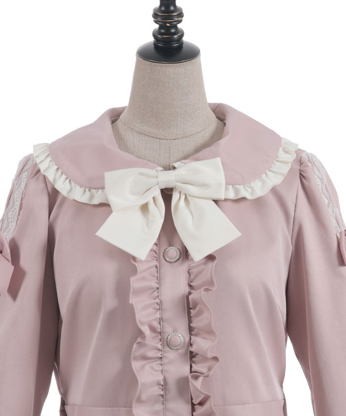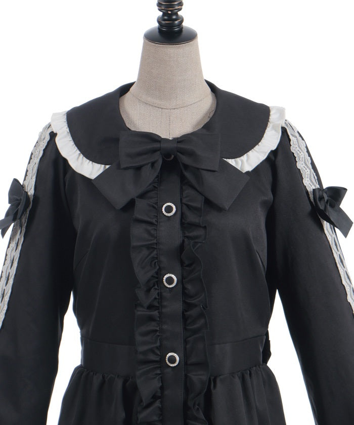 The ladder lace and ribbon on the sleeves create a girly design.