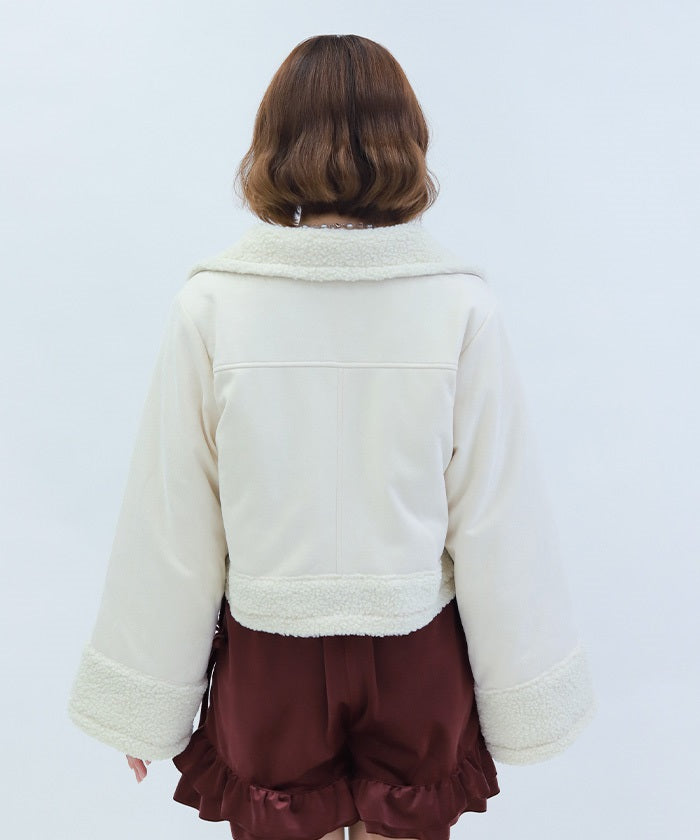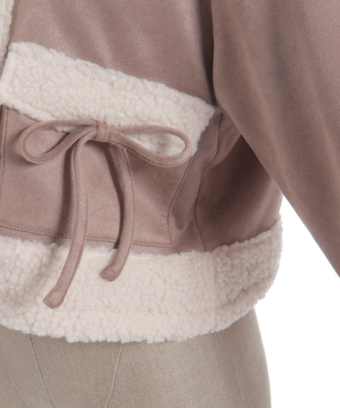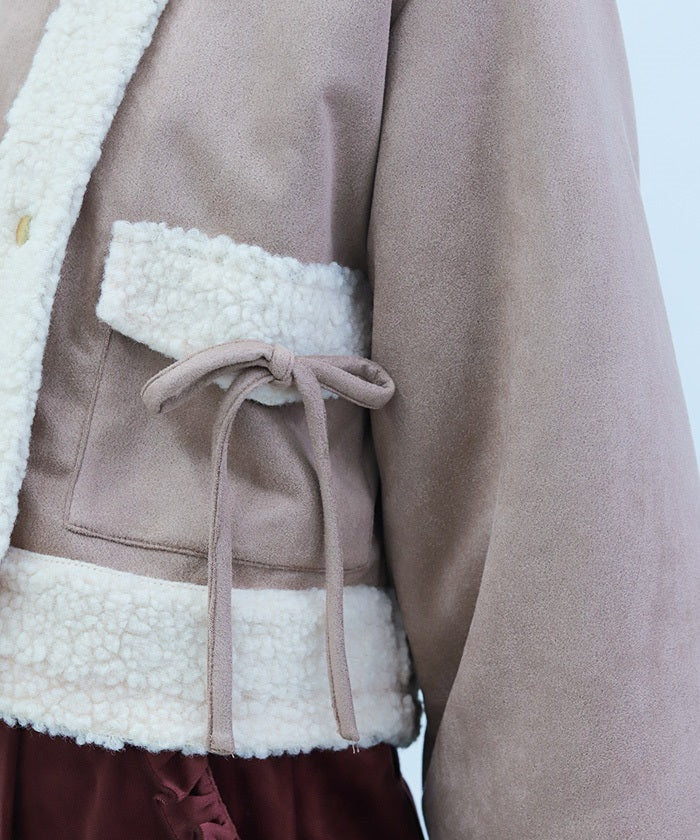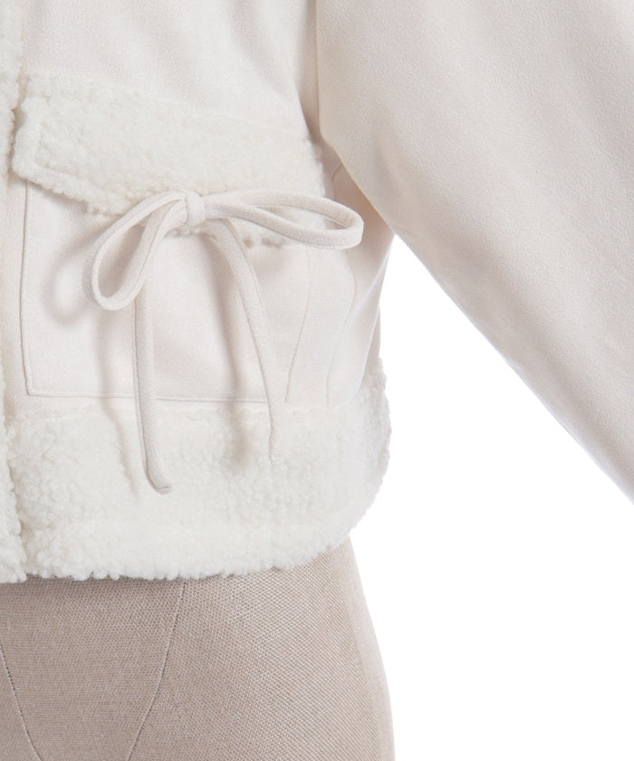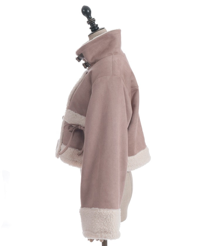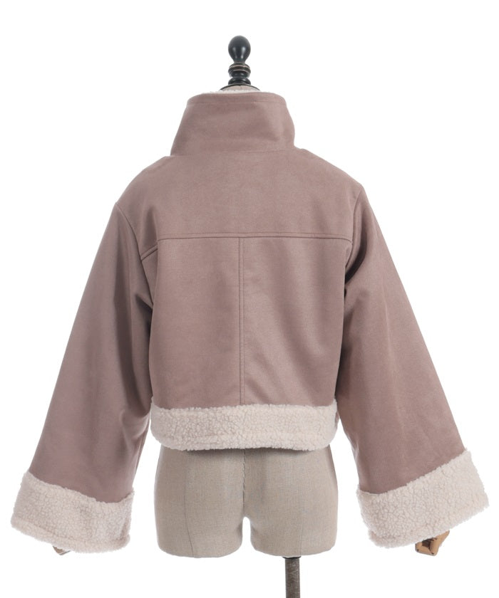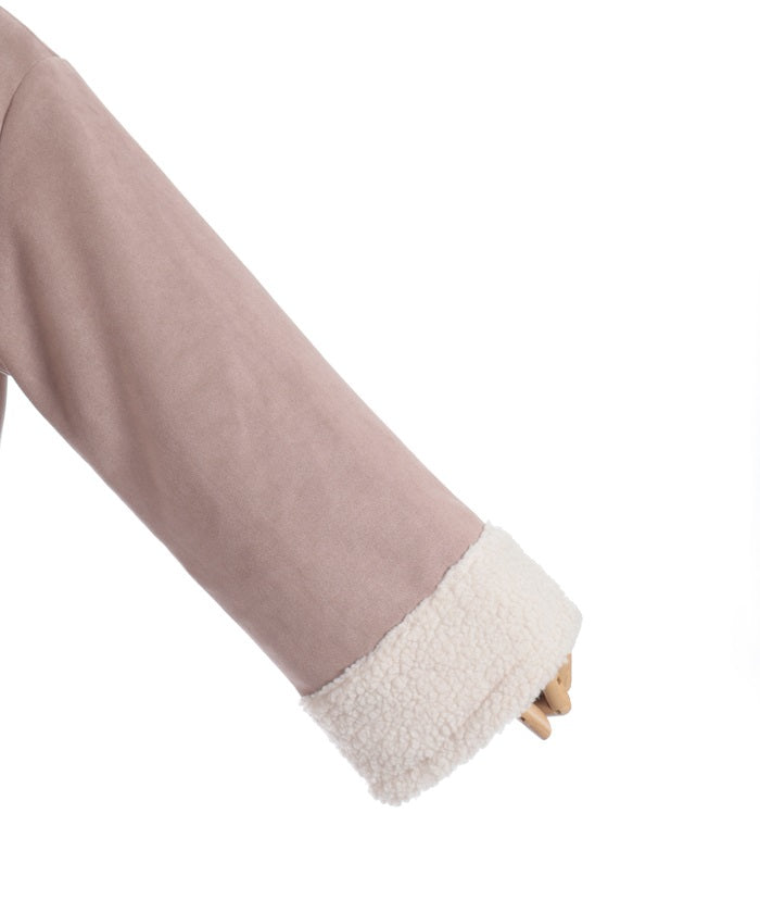 A trendy short coat combining suede and fleece.