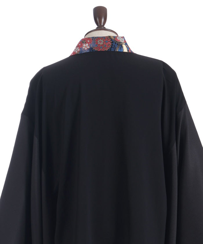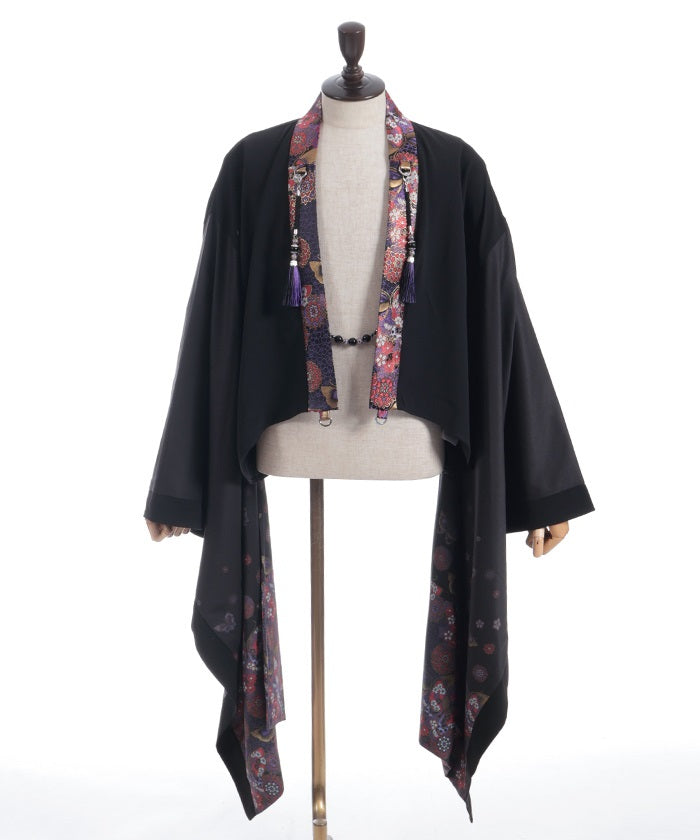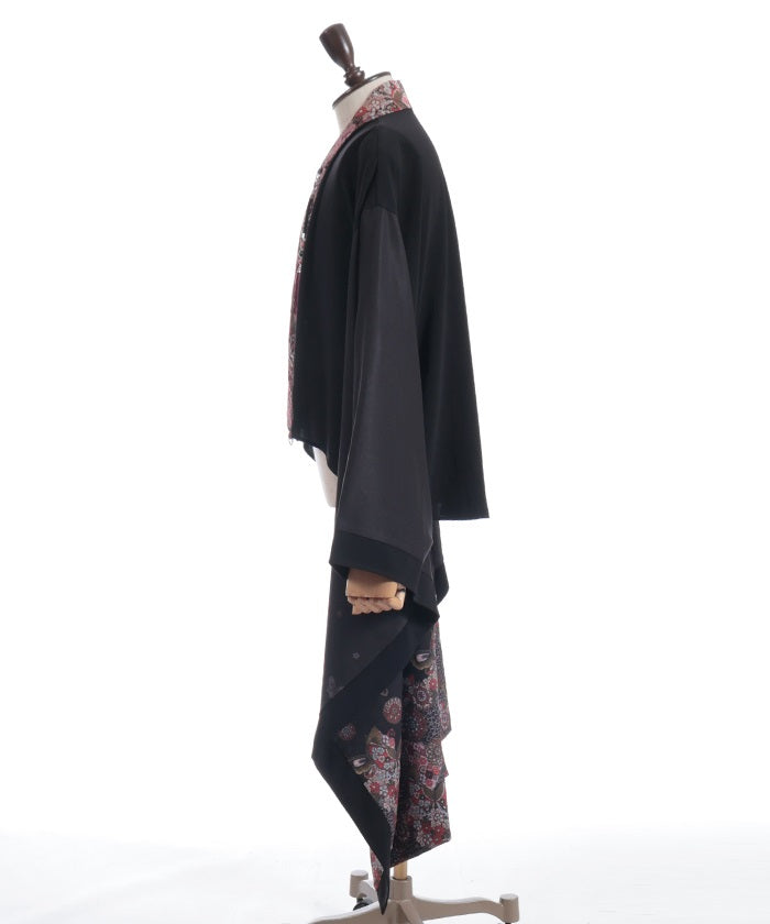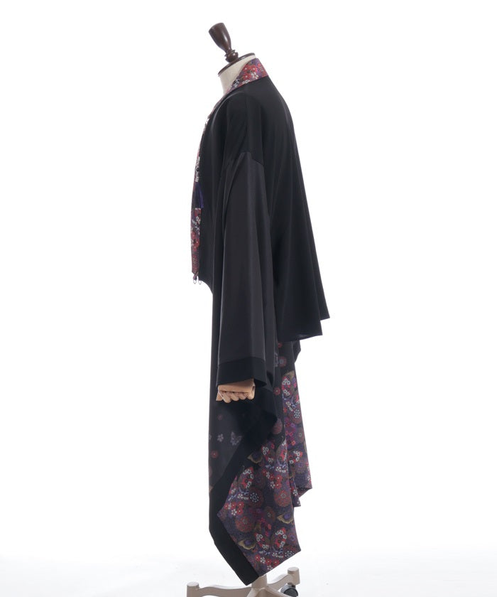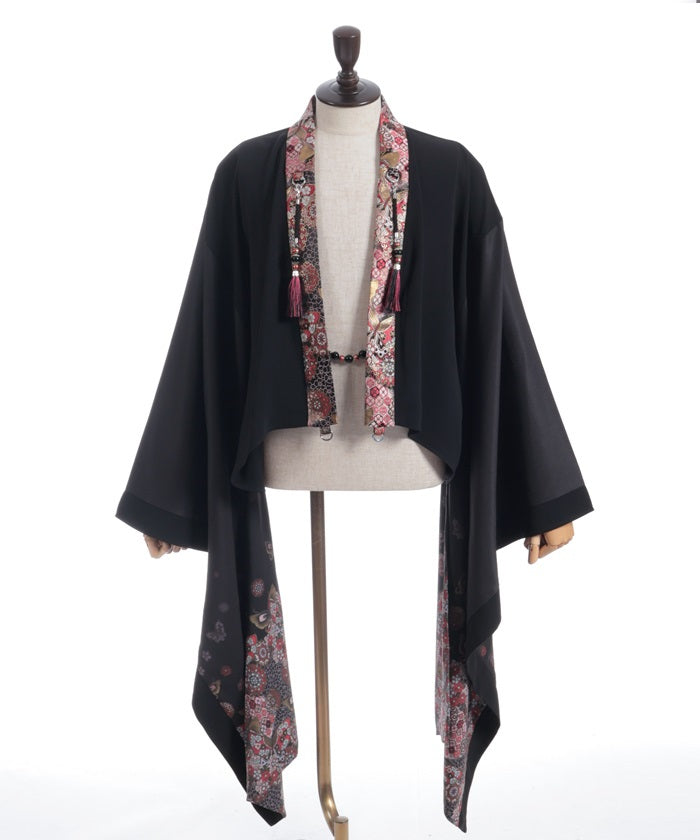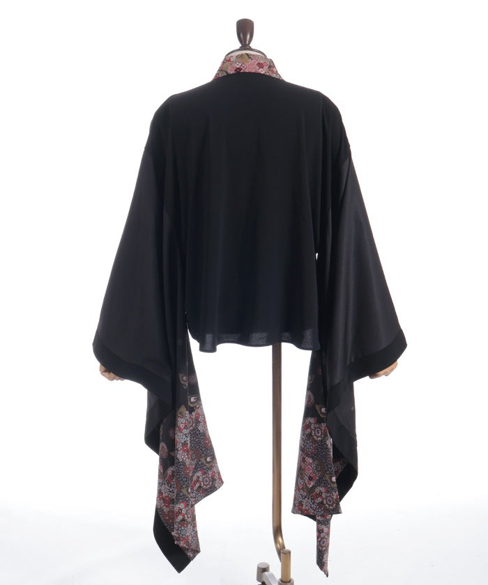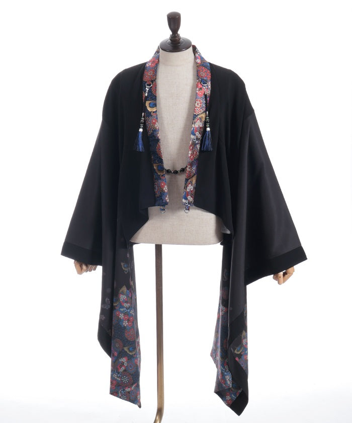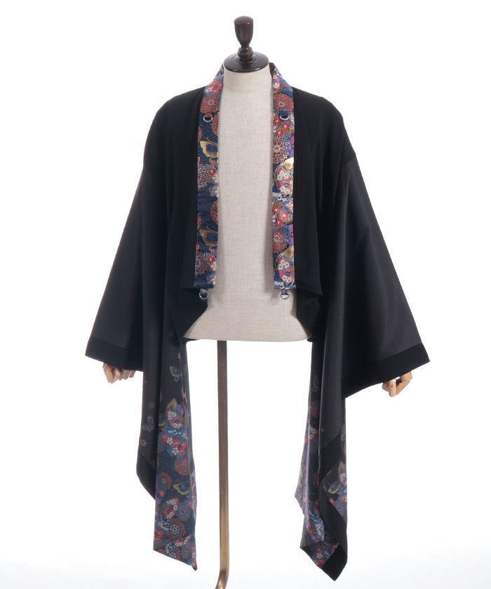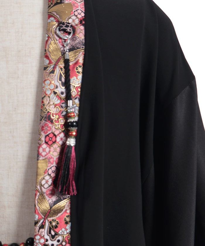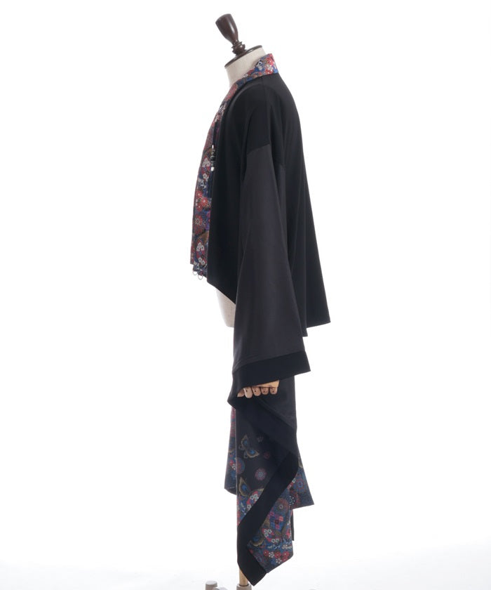 The vibrantly colored jacquard fabric, depicting blooming flowers and dancing butterflies, creates a striking presence.