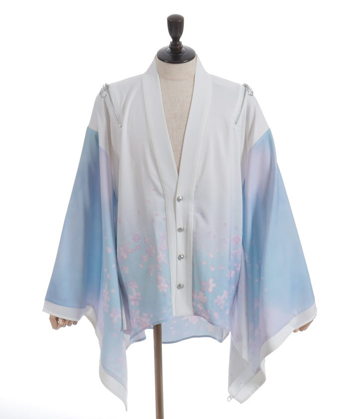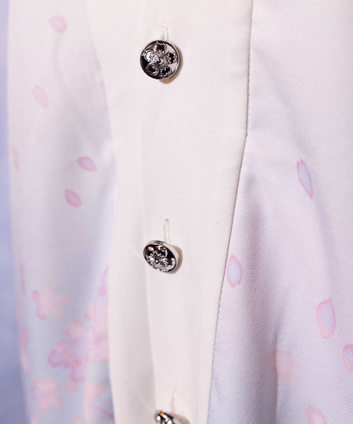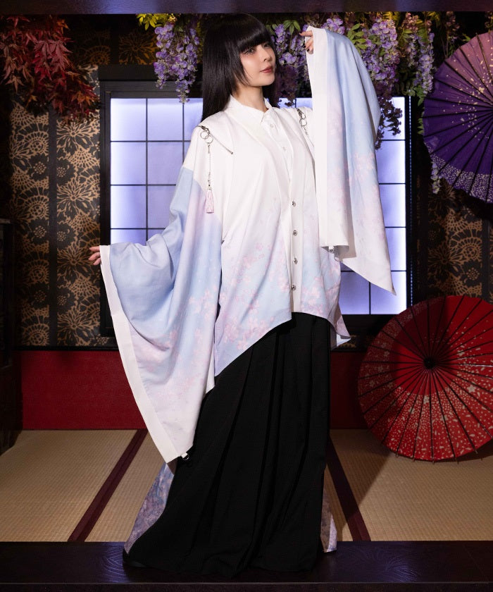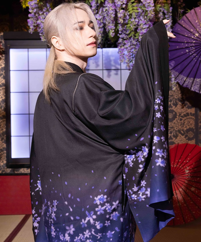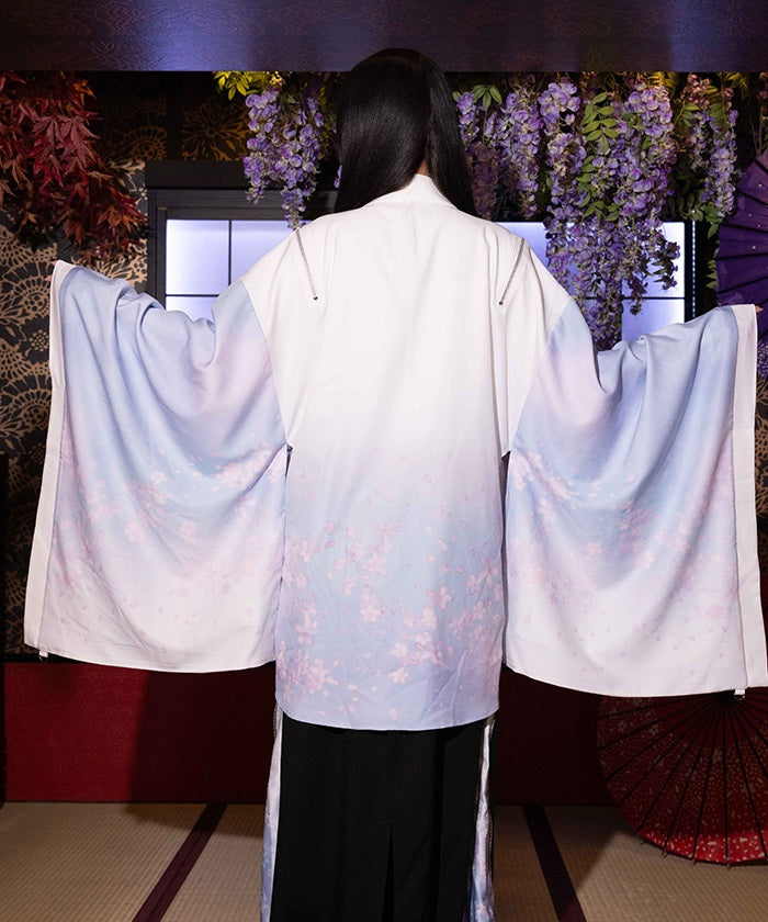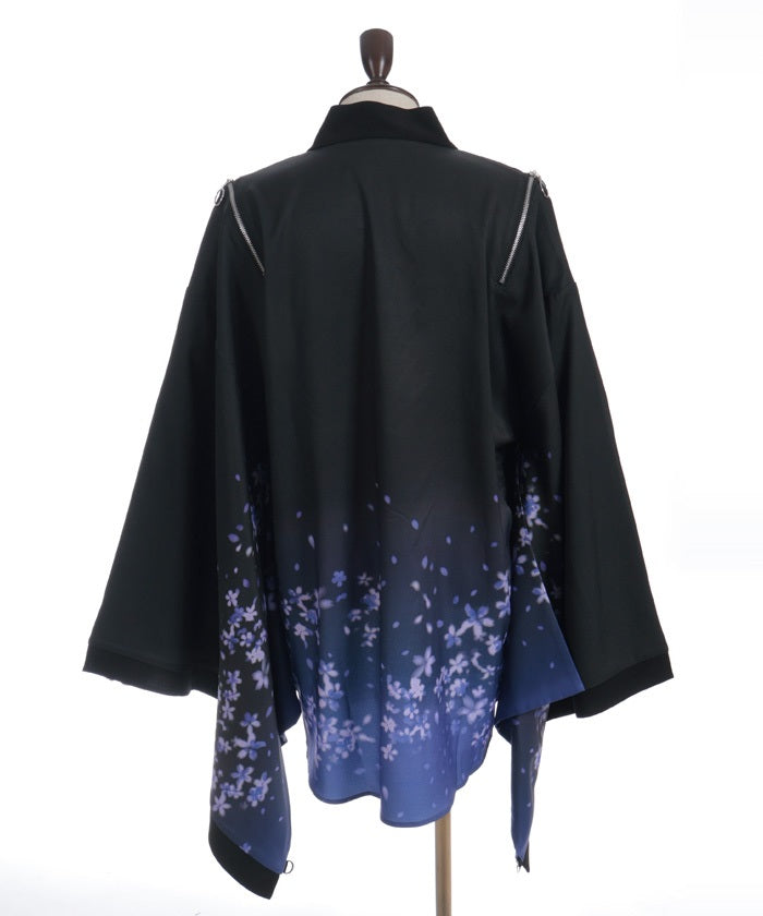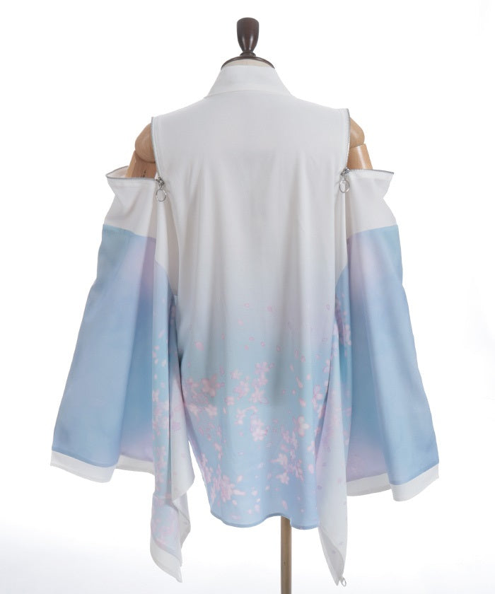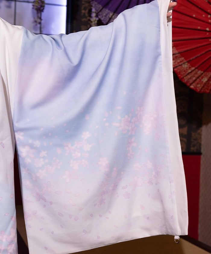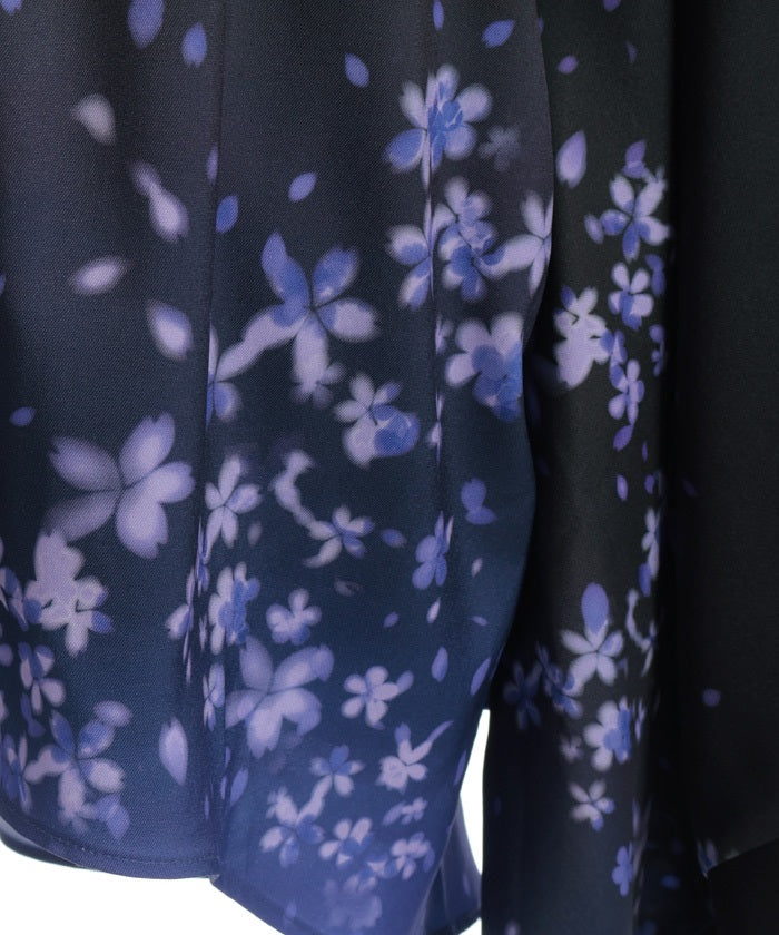 The translucent print combined with gradation creates a dreamlike scene of blossoms in full bloom.