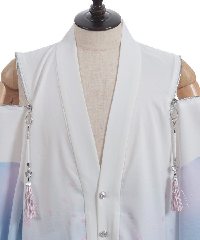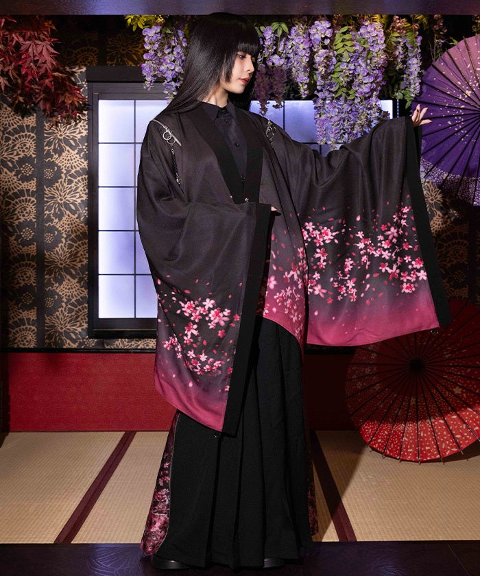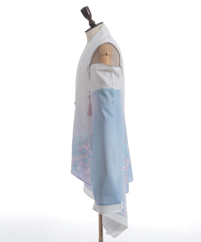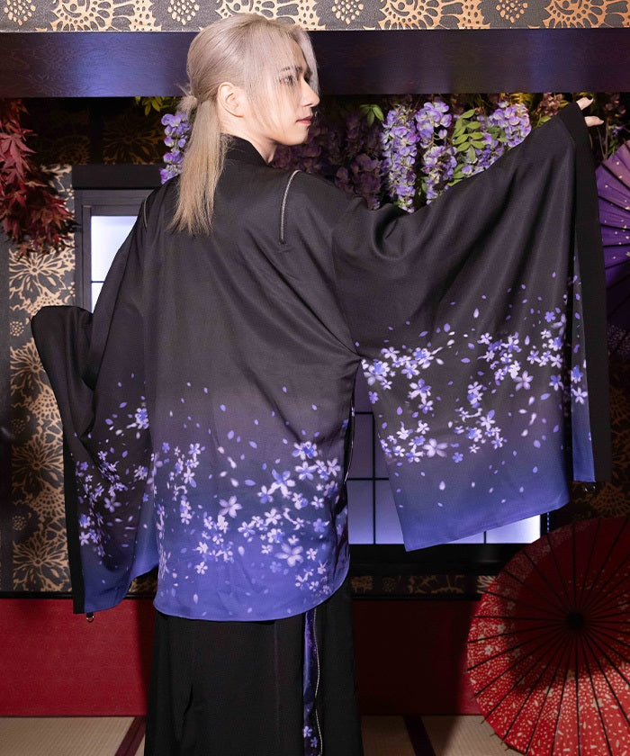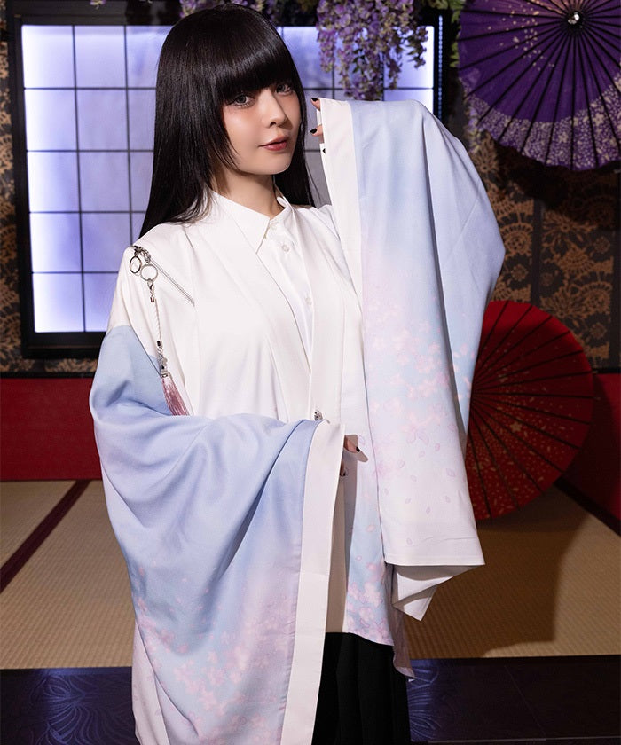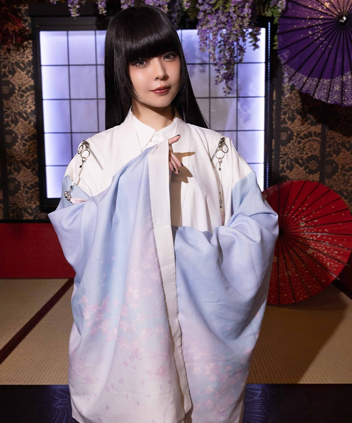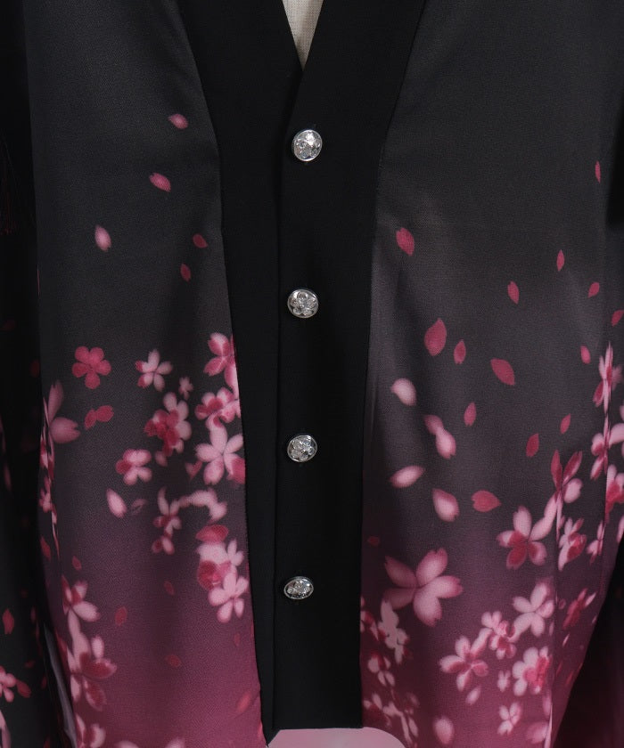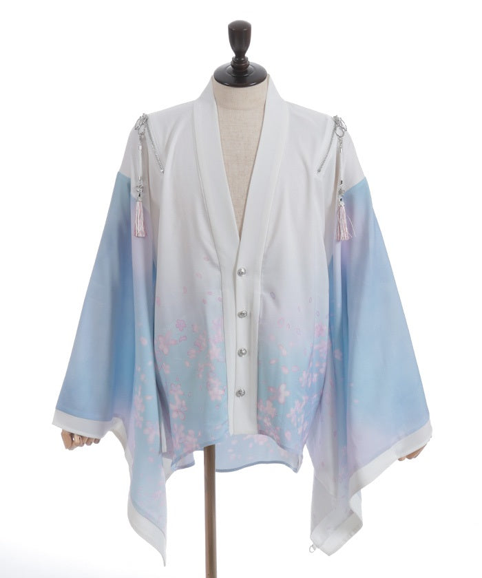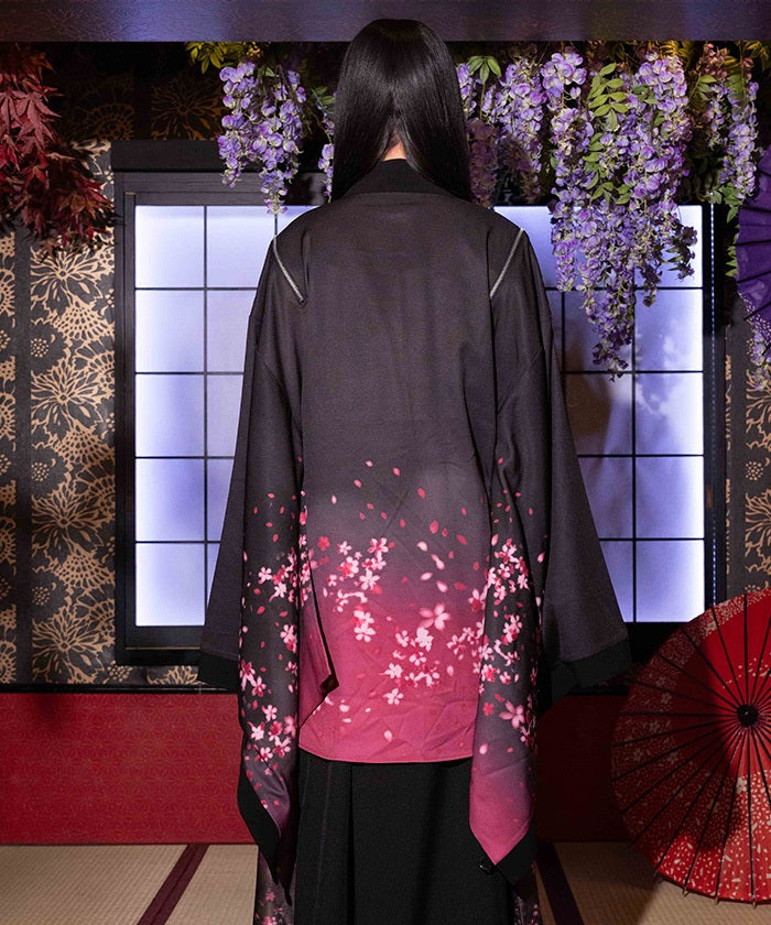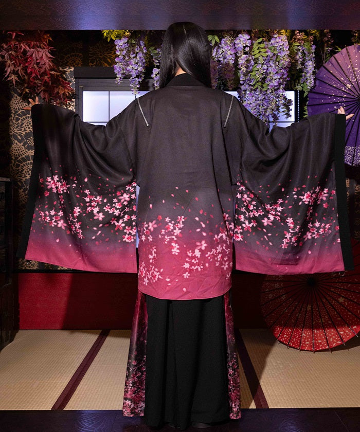 The translucent print combined with gradation creates a dreamlike scene of blossoms in full bloom.