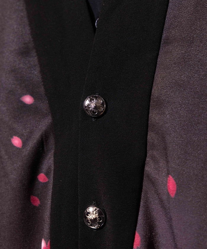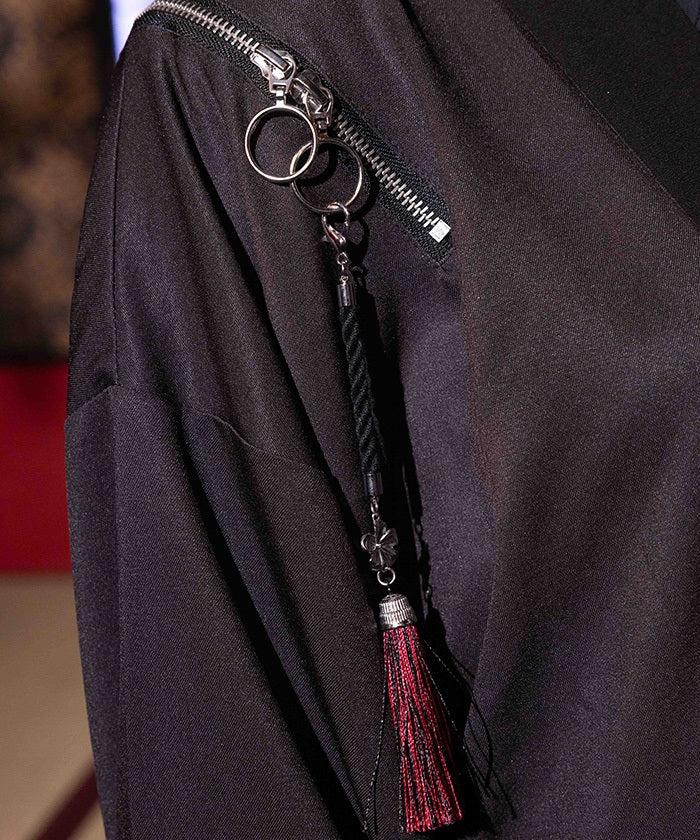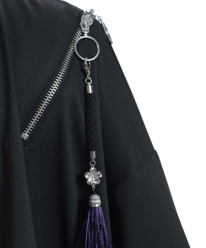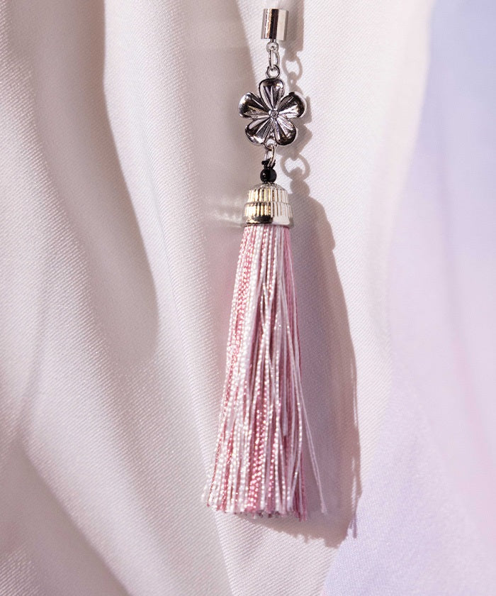 The charms and metal buttons on the top of the tassels feature cherry blossom motifs, creating a unique look down to the smallest detail.