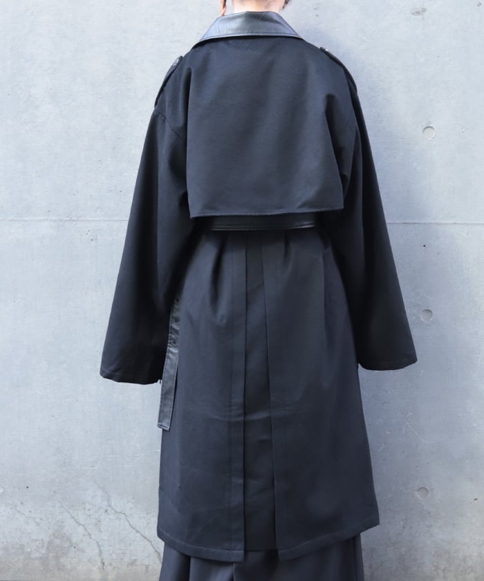 The leather panels and epaulettes create a high-fashion look.