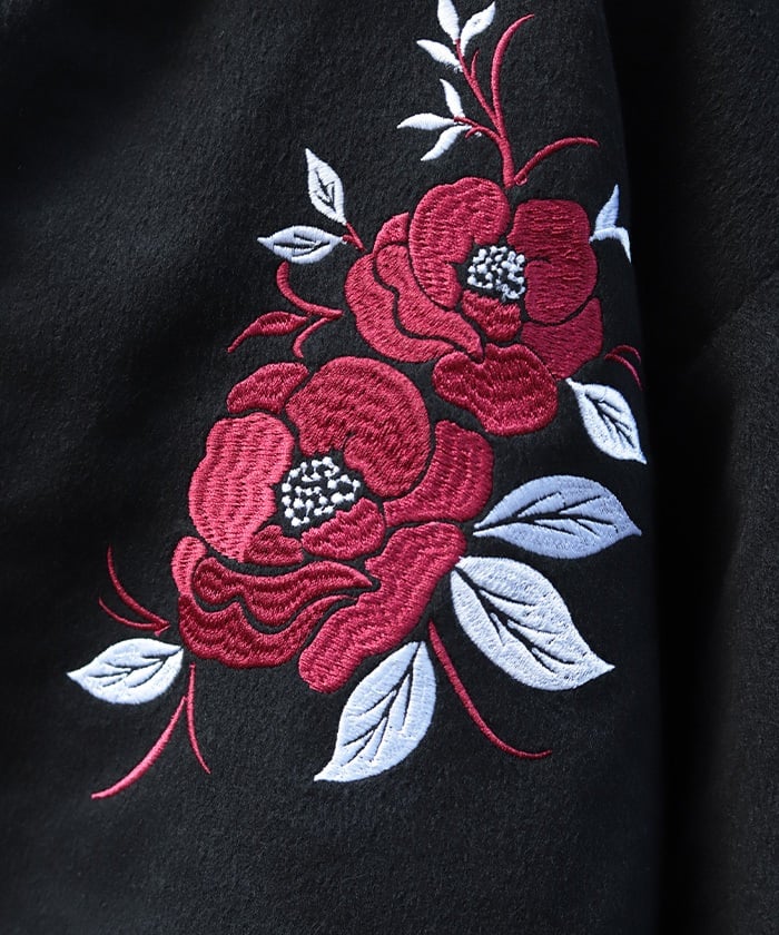 Radiating an aura of elegant Japanese high-fashion, the two-tone embroidery on the chest creates a striking, overwhelming presence.