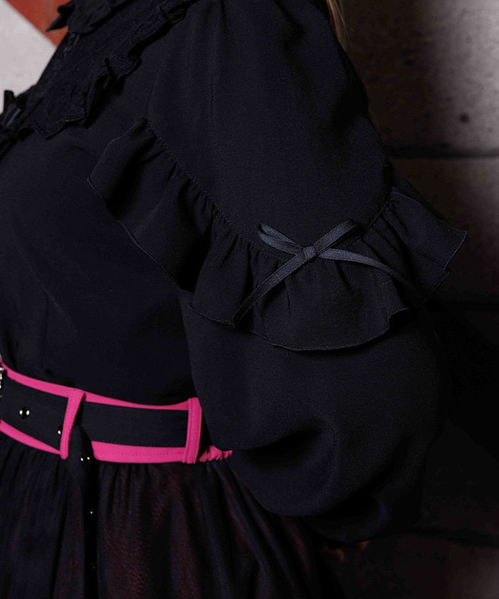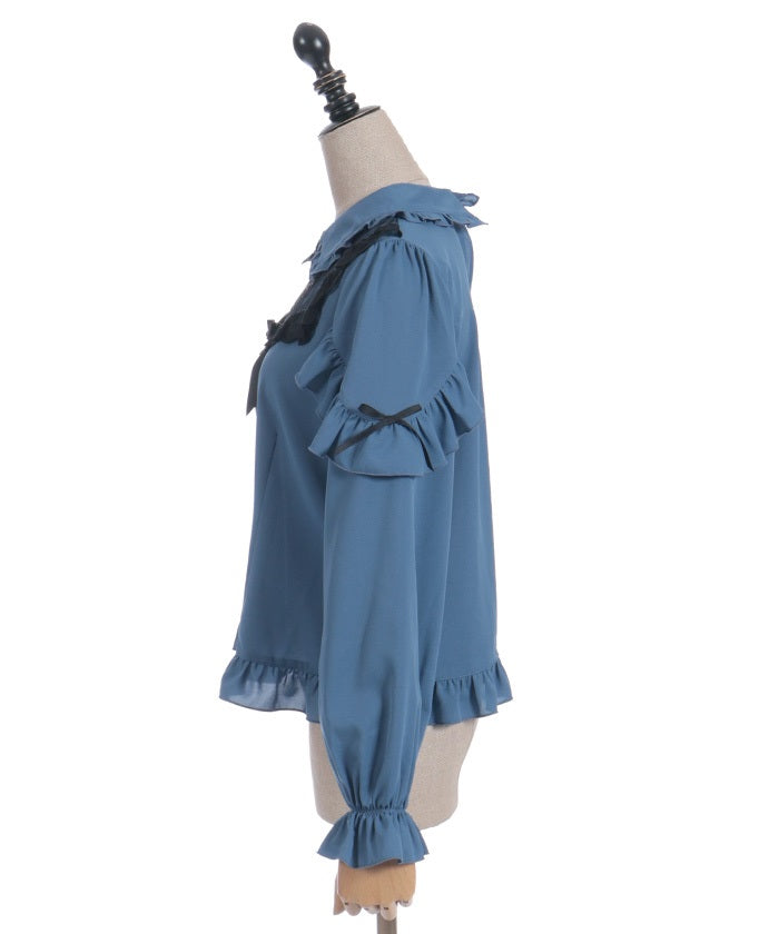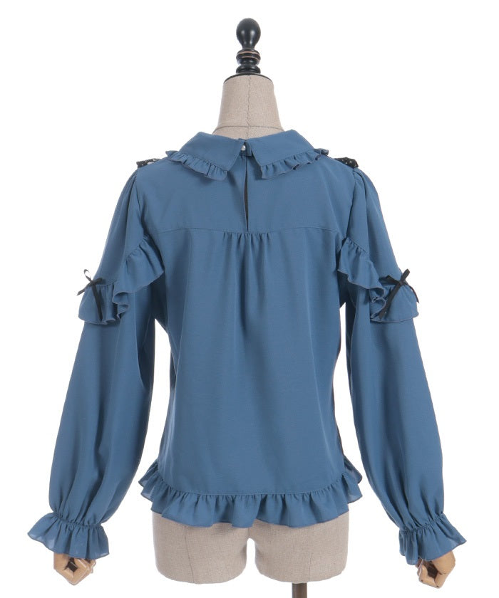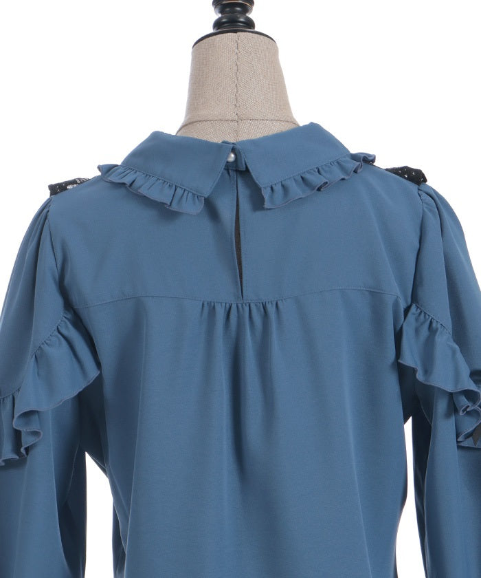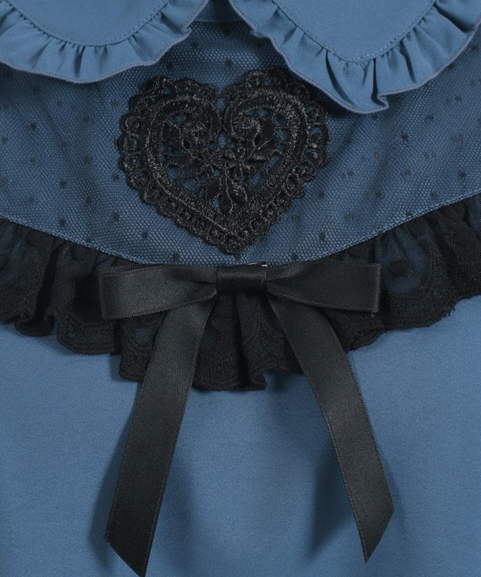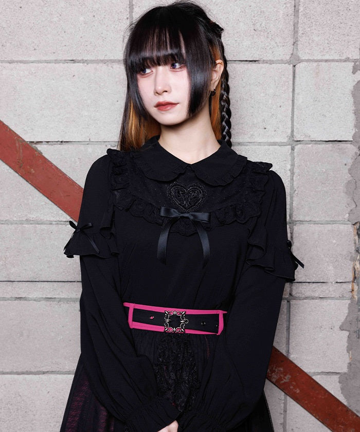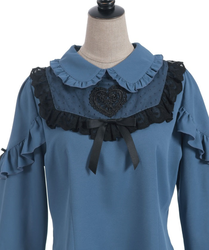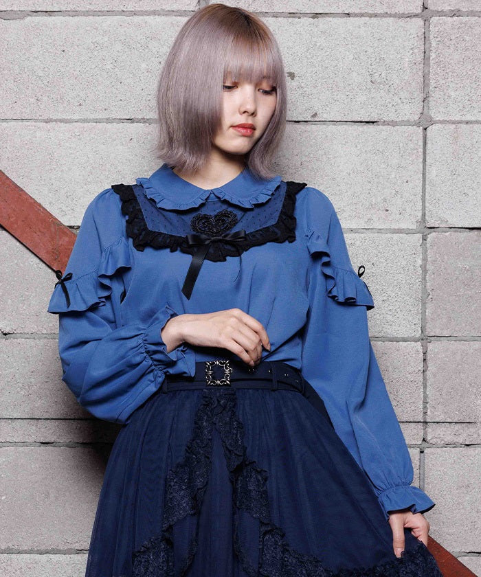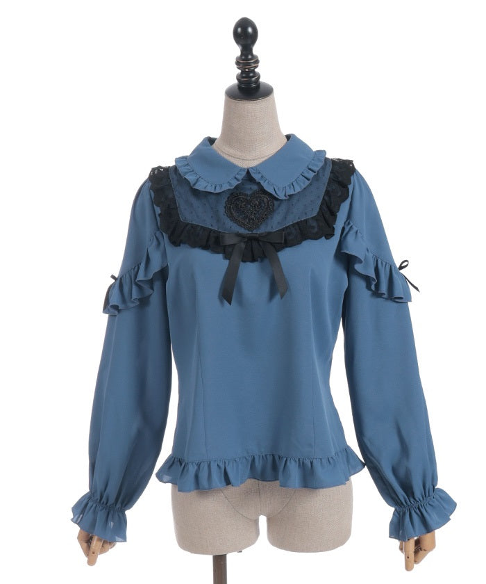 This blouse features eye-catching heart-motif lace at the chest.