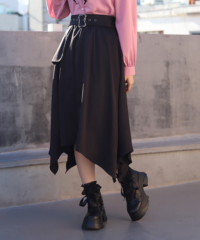 This skirt features an asymmetrical hem that's sure to become a focal point of any outfit.