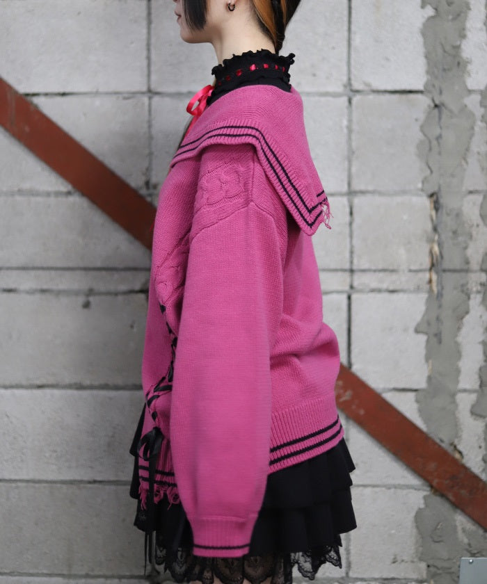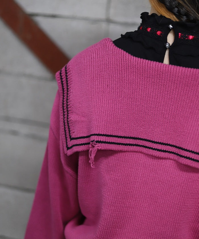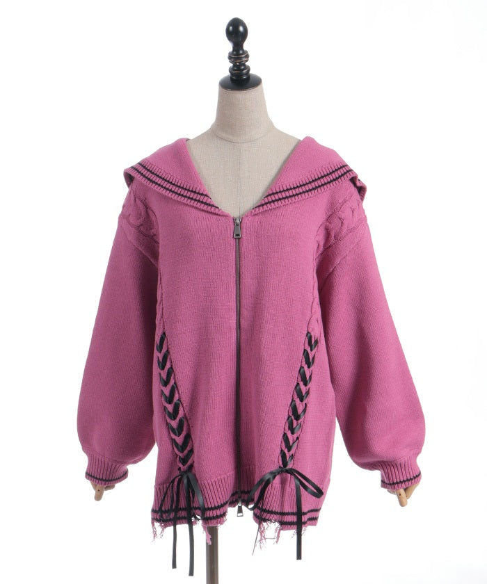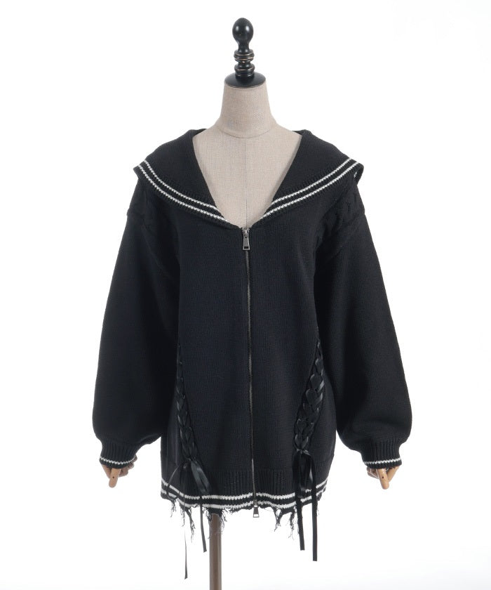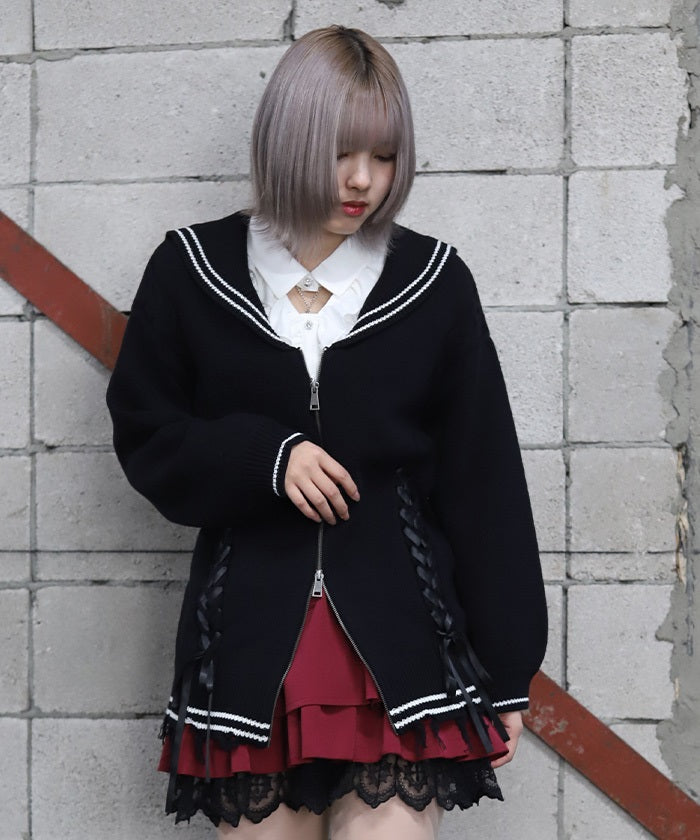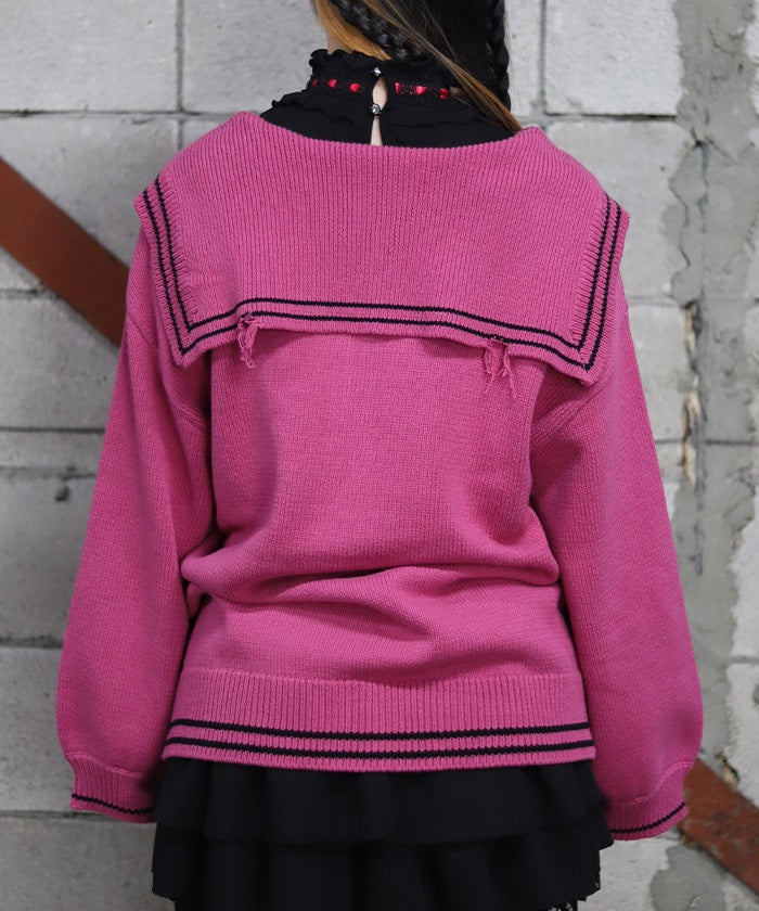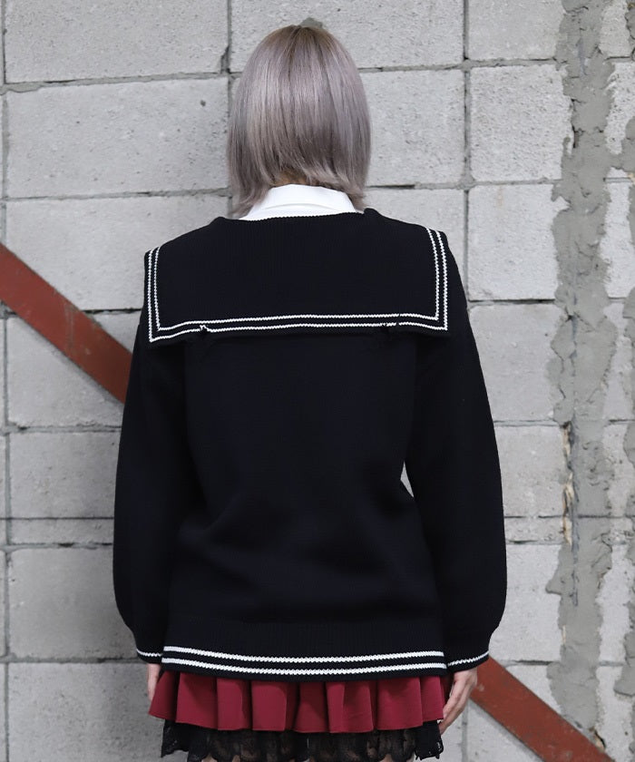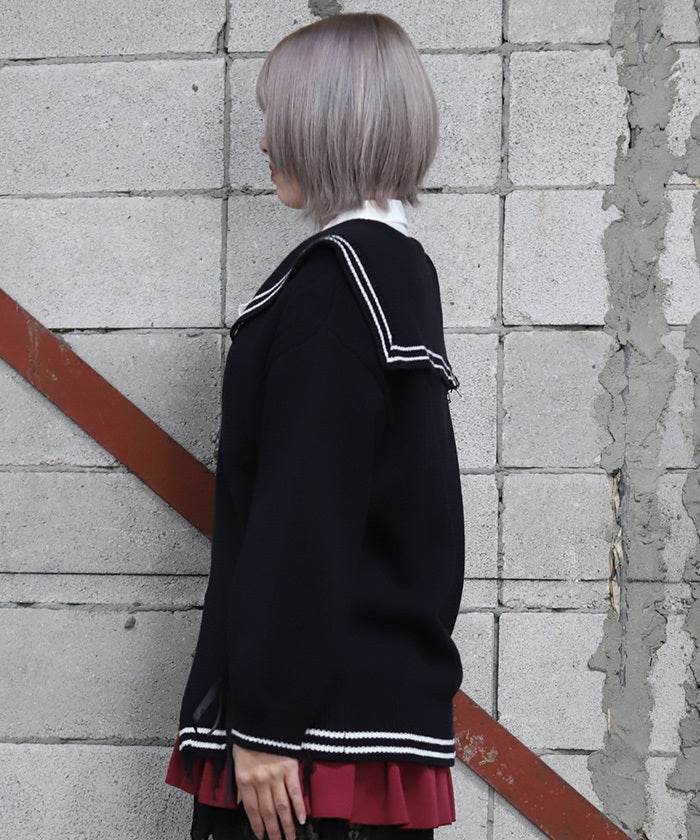 This sailor-collar knit cardigan is perfect for a preppy look.