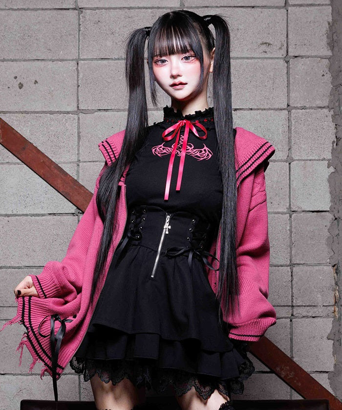 This goes perfectly with mini-length bottoms like the Cross Charm Frill Mini Skirt!